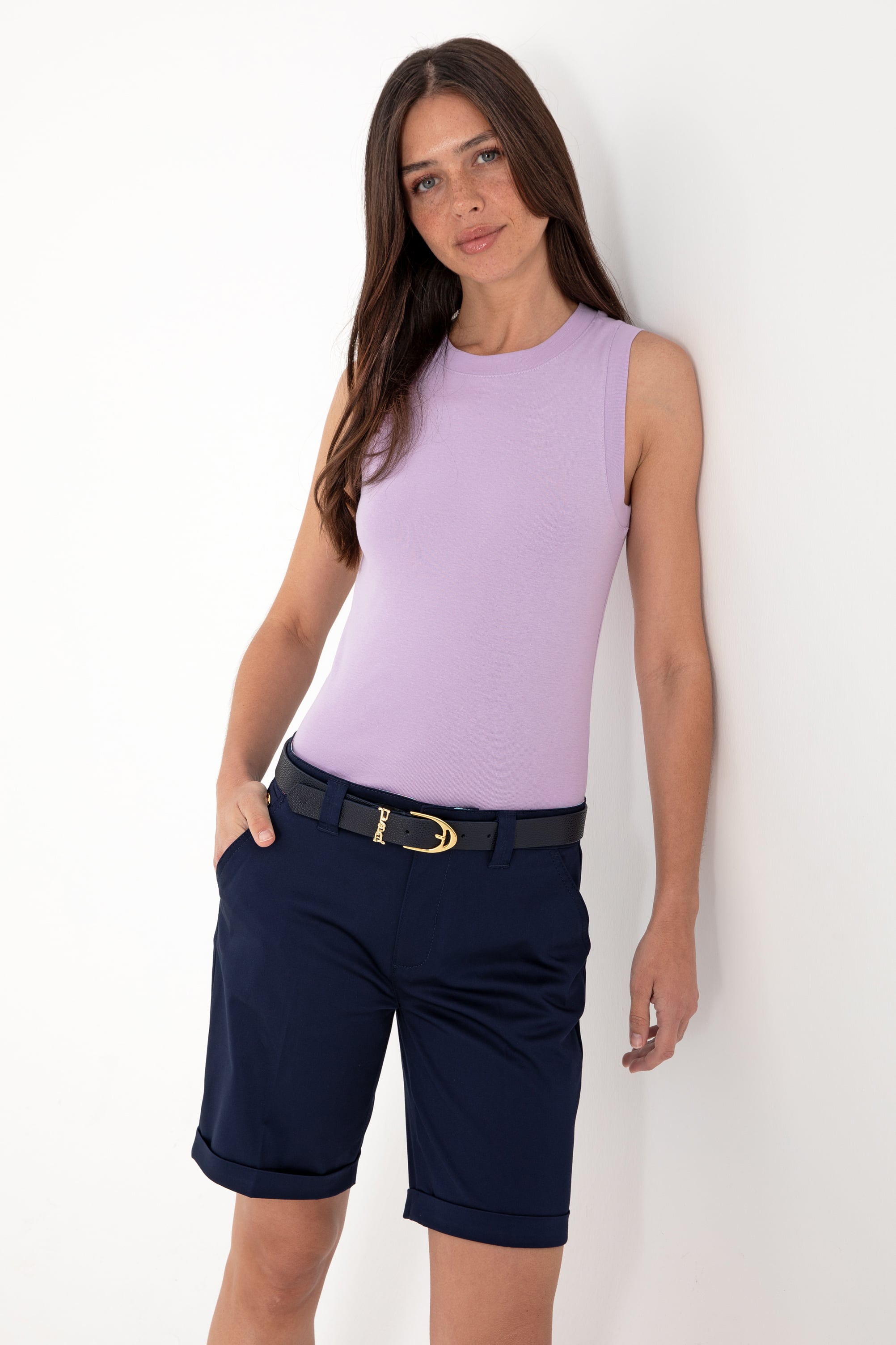 - Kadın Lila Kolsuz Bisiklet Yaka Basic Tişört