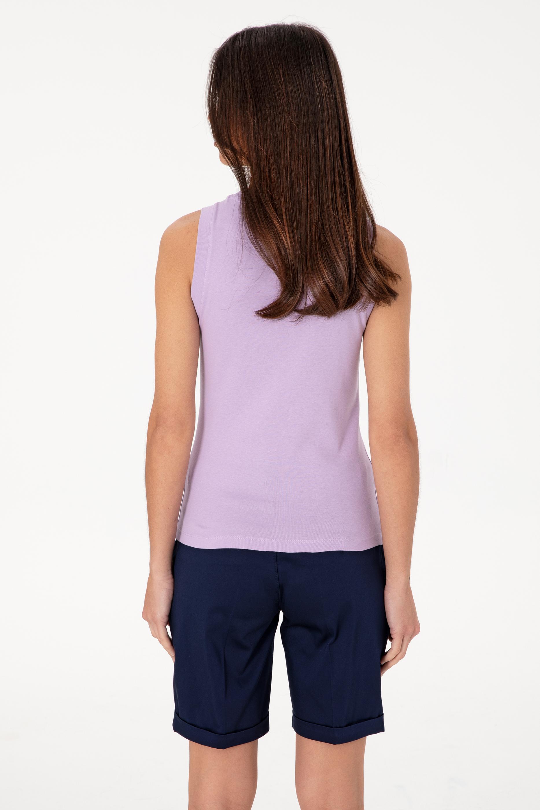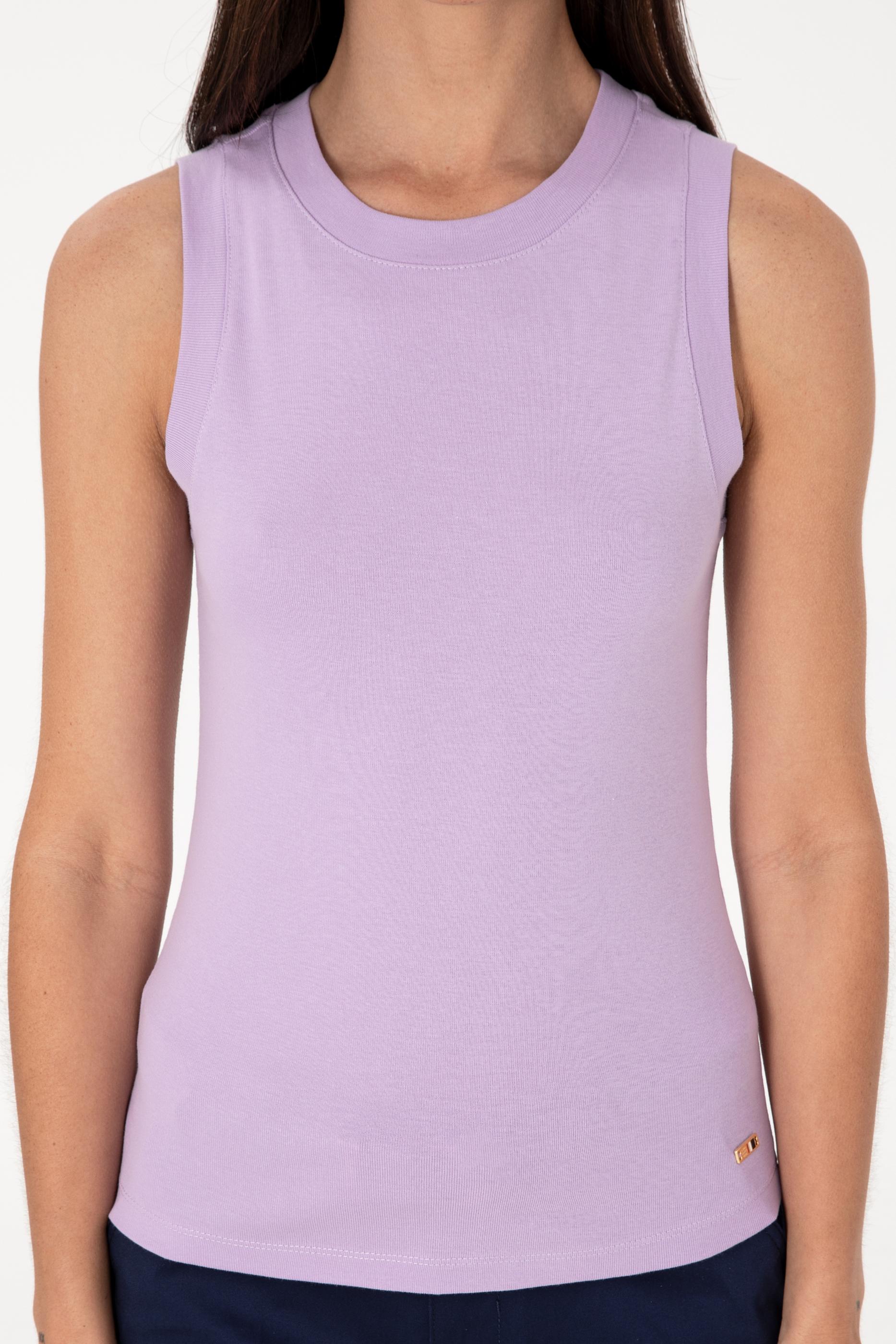 Kadın Lila Kolsuz Bisiklet Yaka Basic Tişört