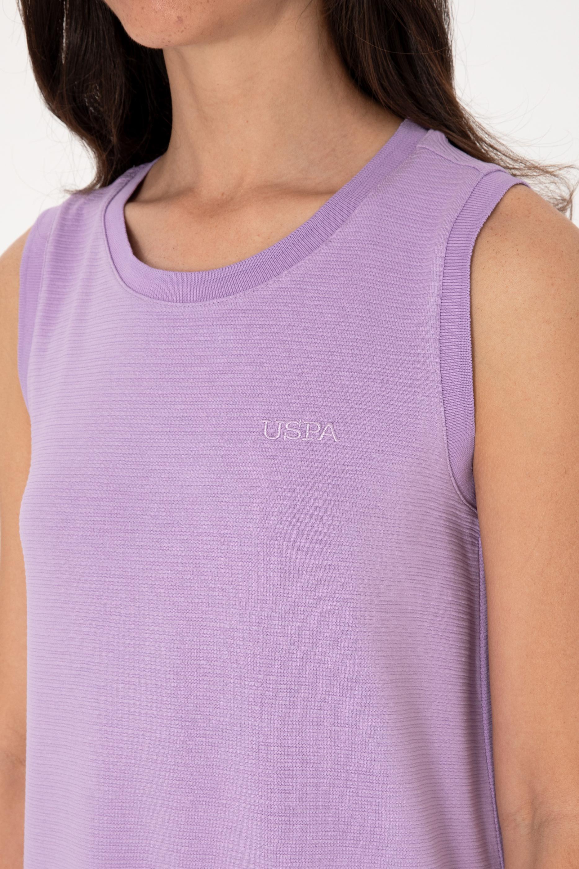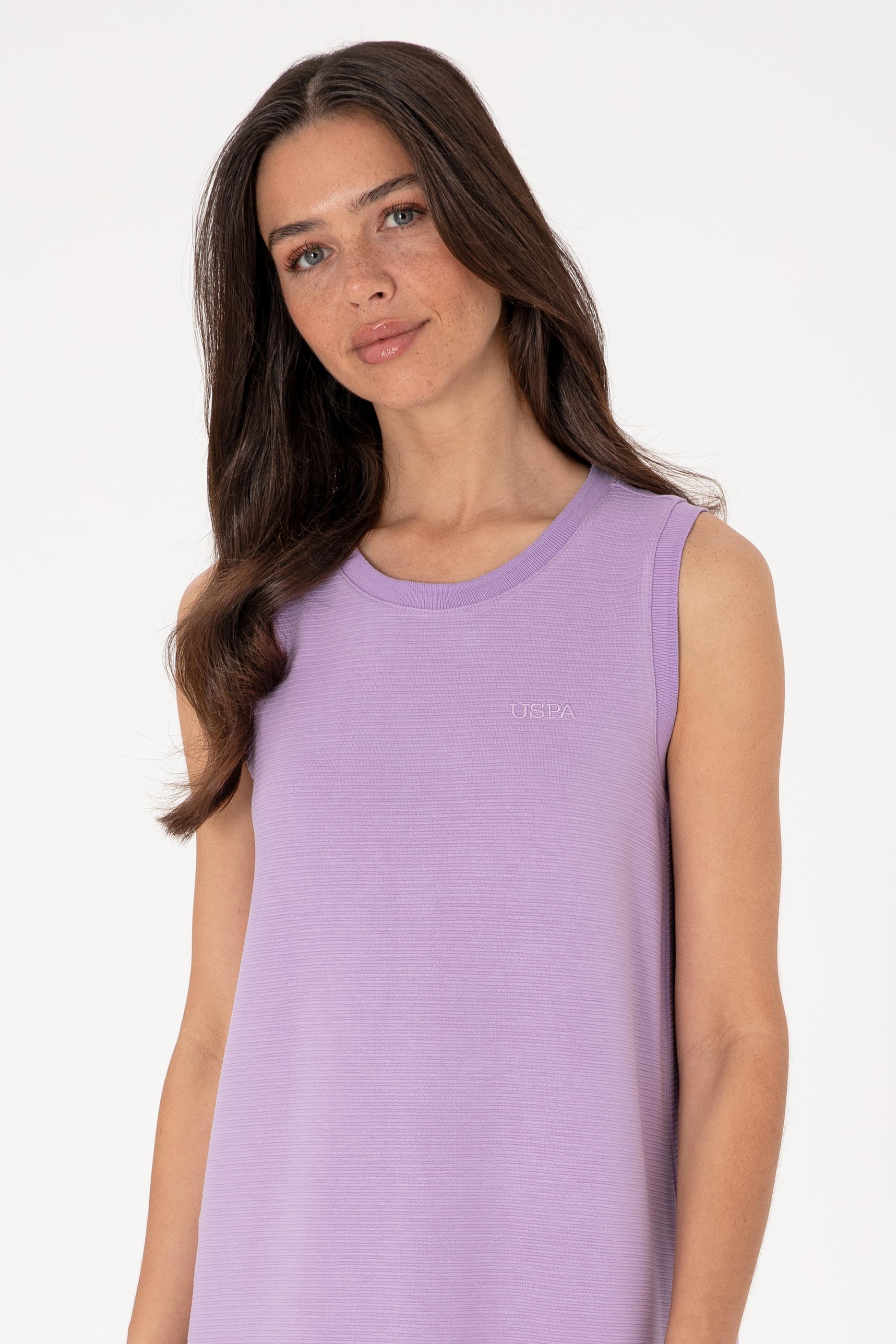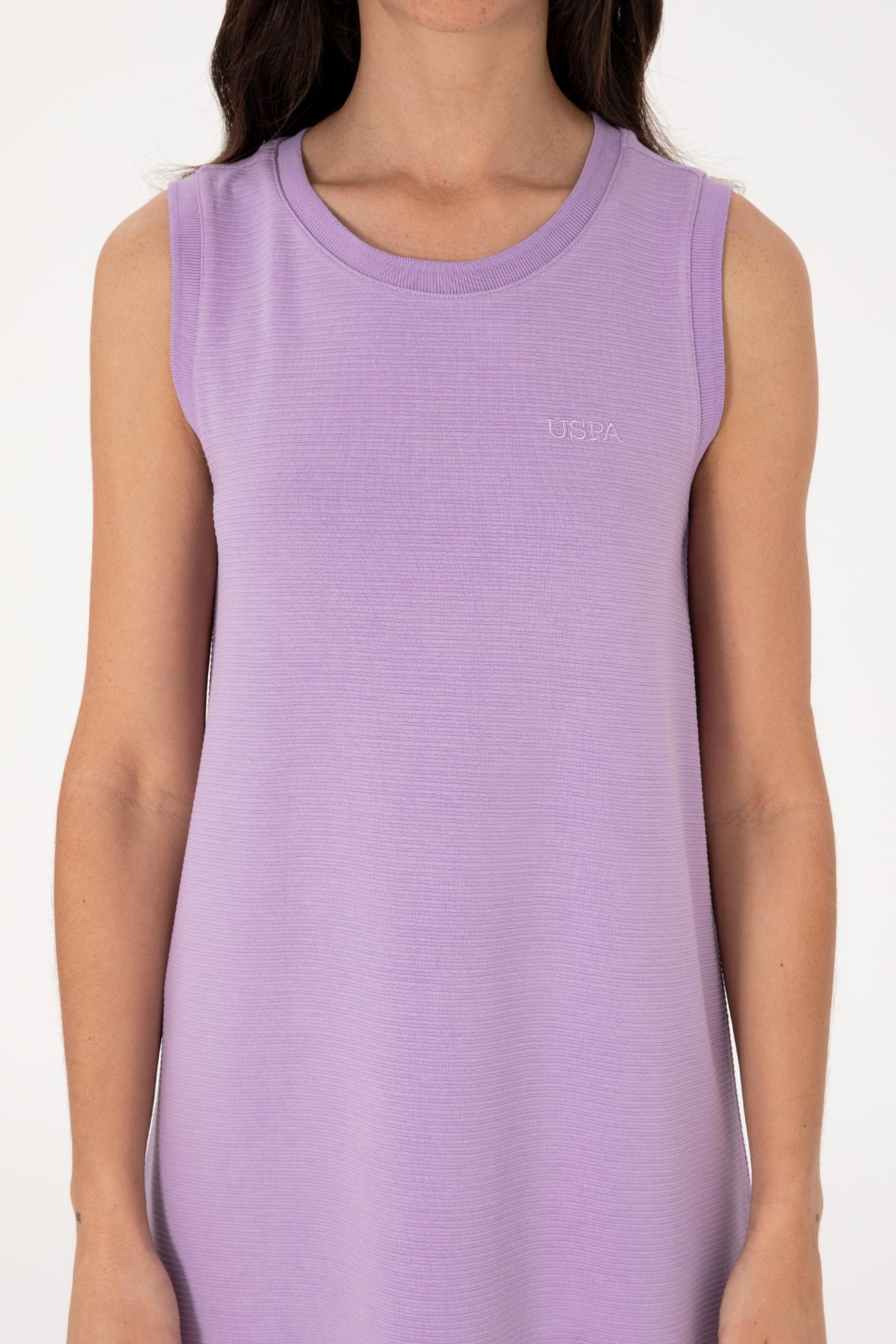 Kadın Lila Kolsuz Bisiklet Yaka Mini Boy Örme Elbise