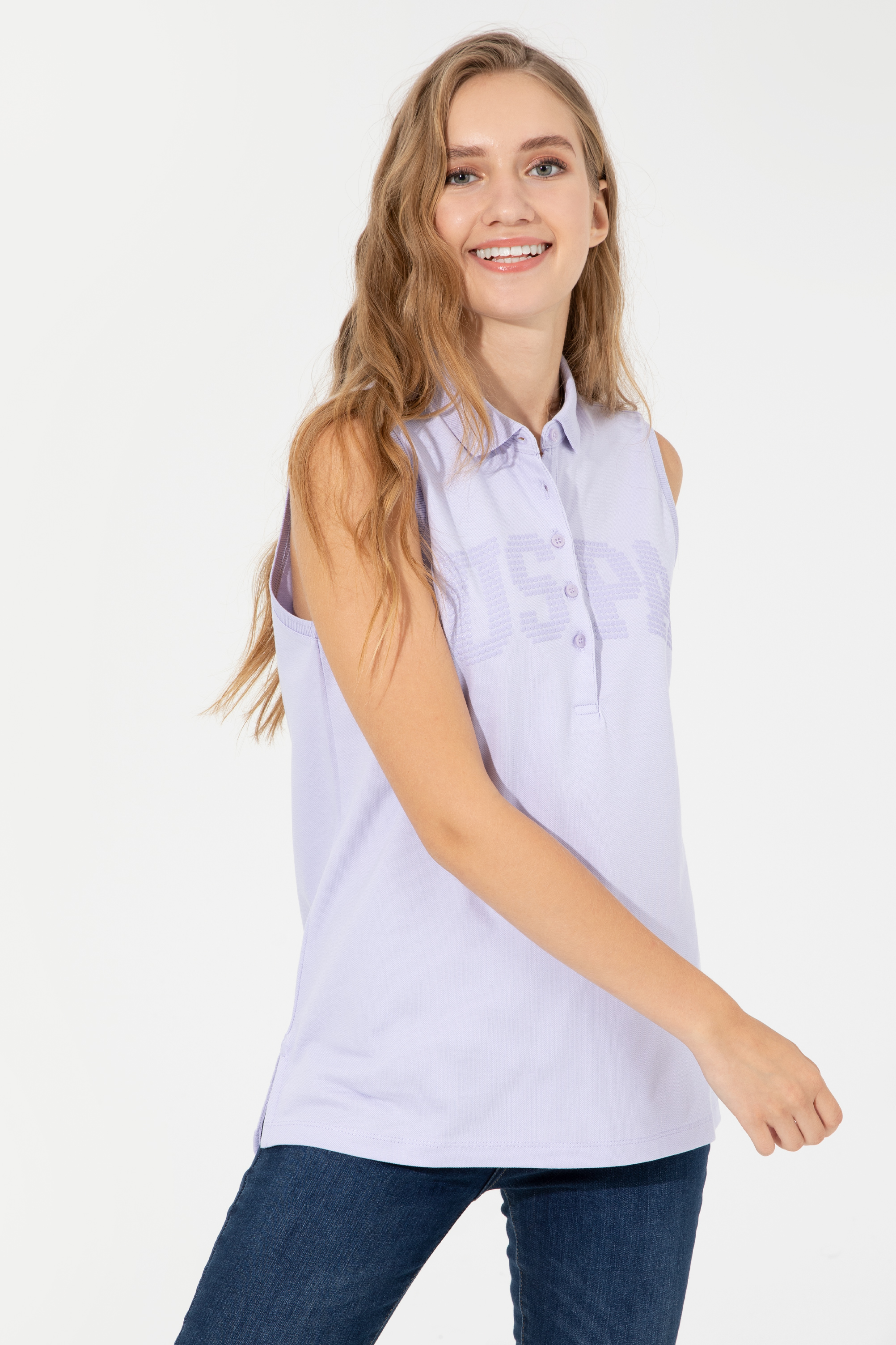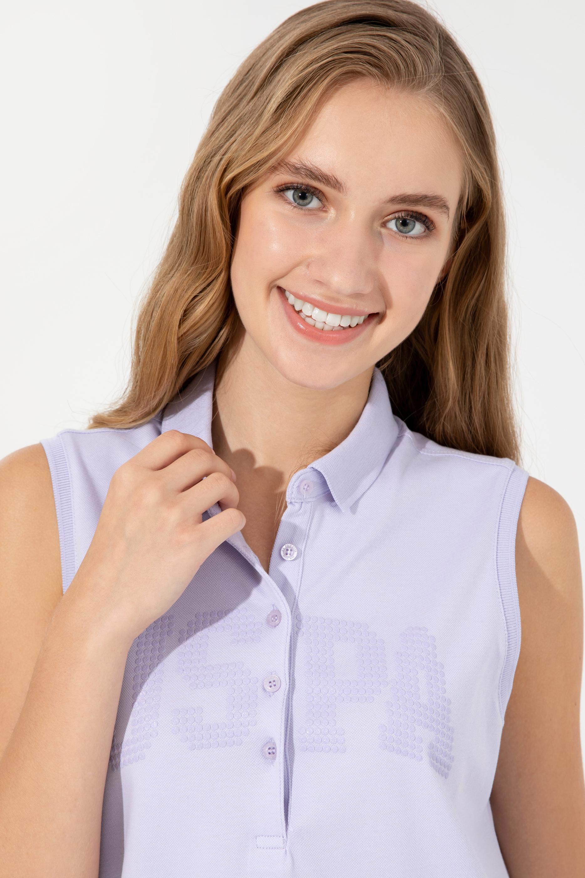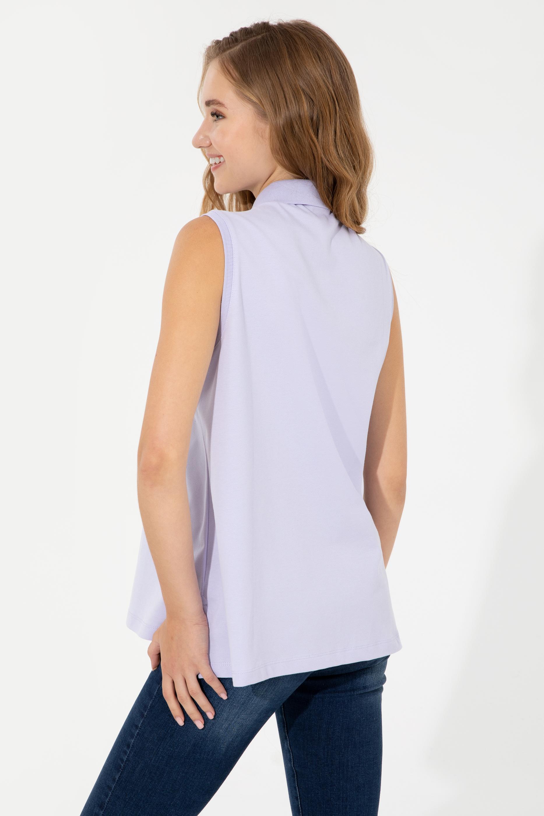 Kadın Lila Kolsuz Polo Yaka Tişört