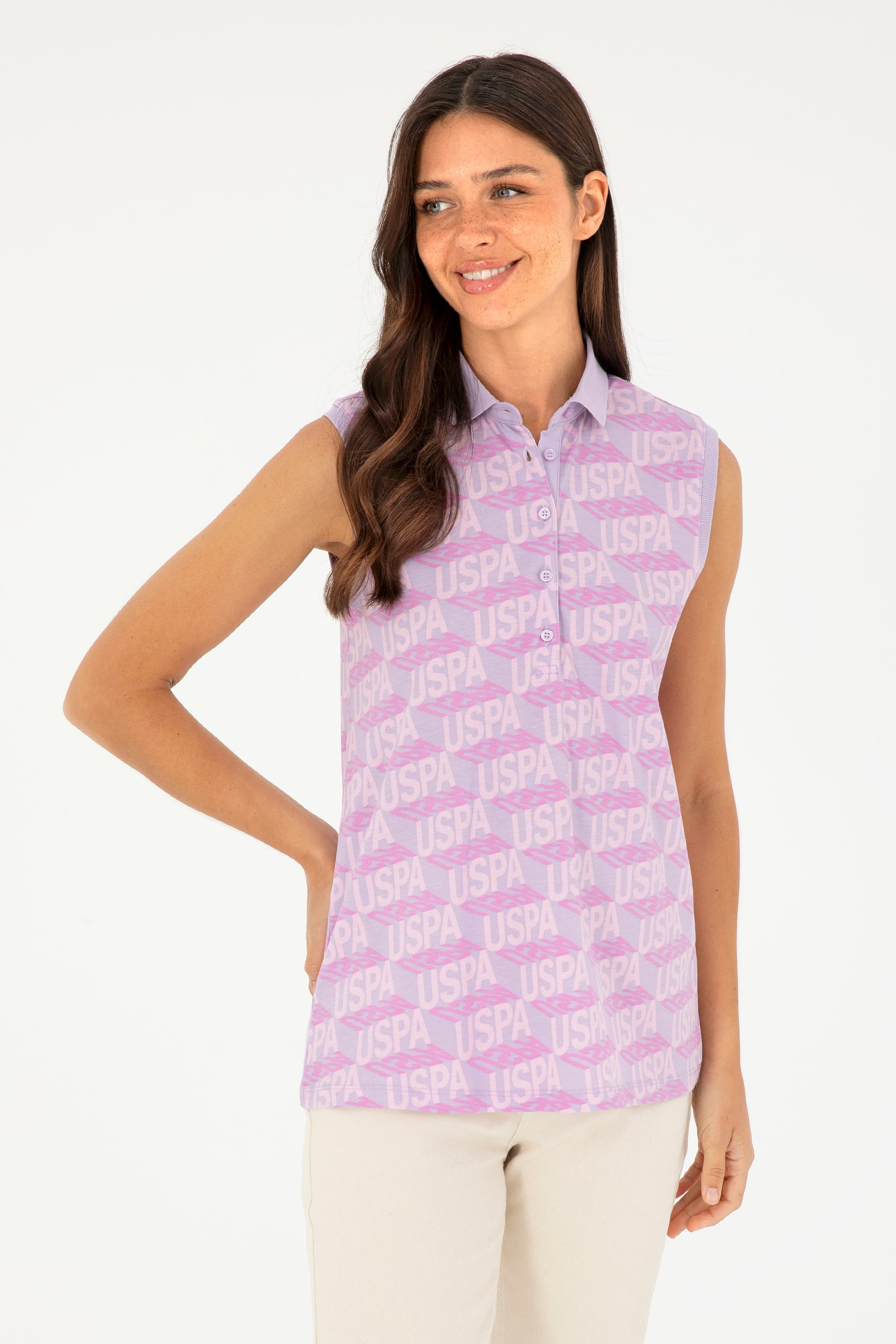 Kadın Lila Kolsuz Polo Yaka Tişört