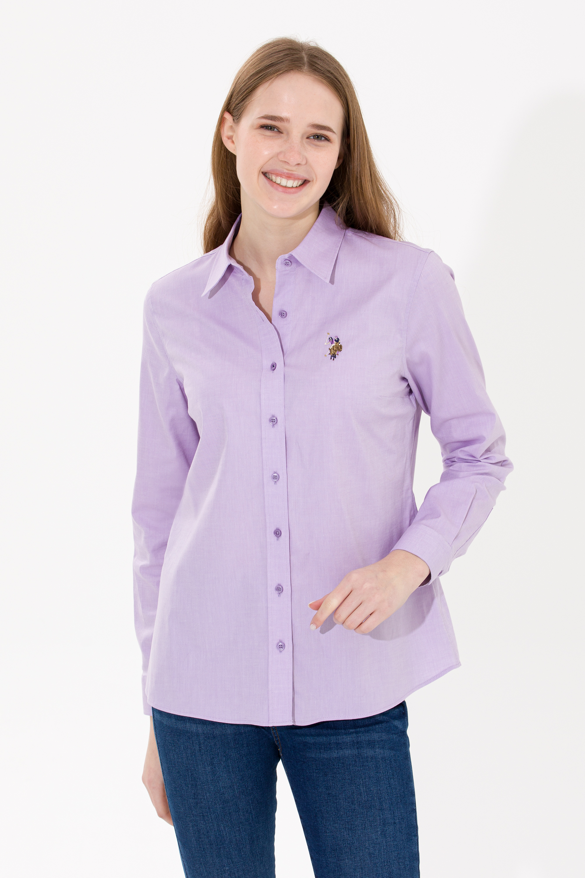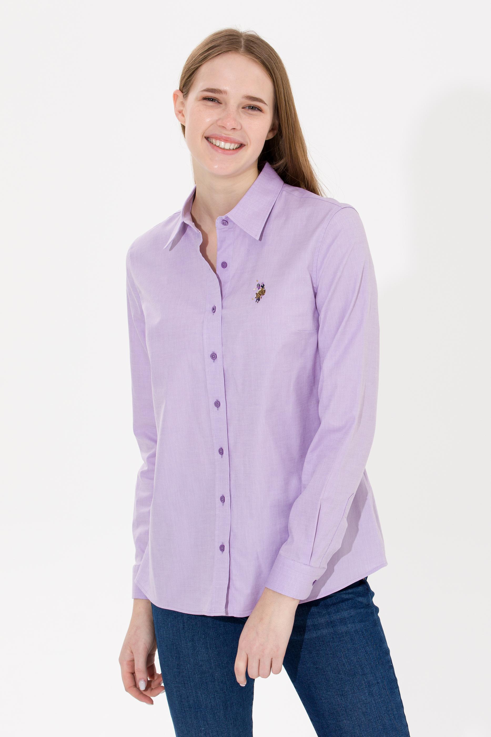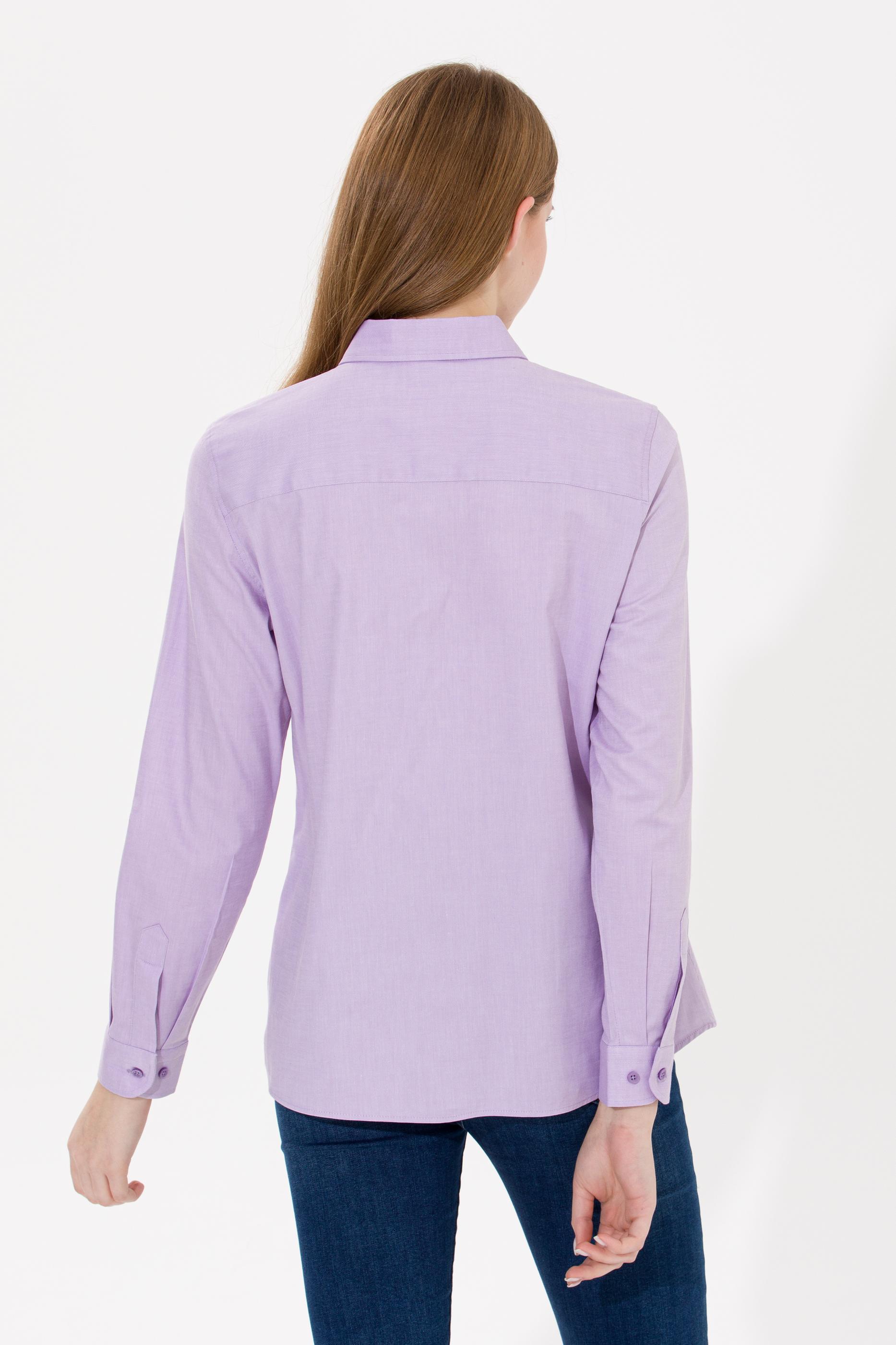 - Kadın Lila Uzun Kollu Basic Gömlek