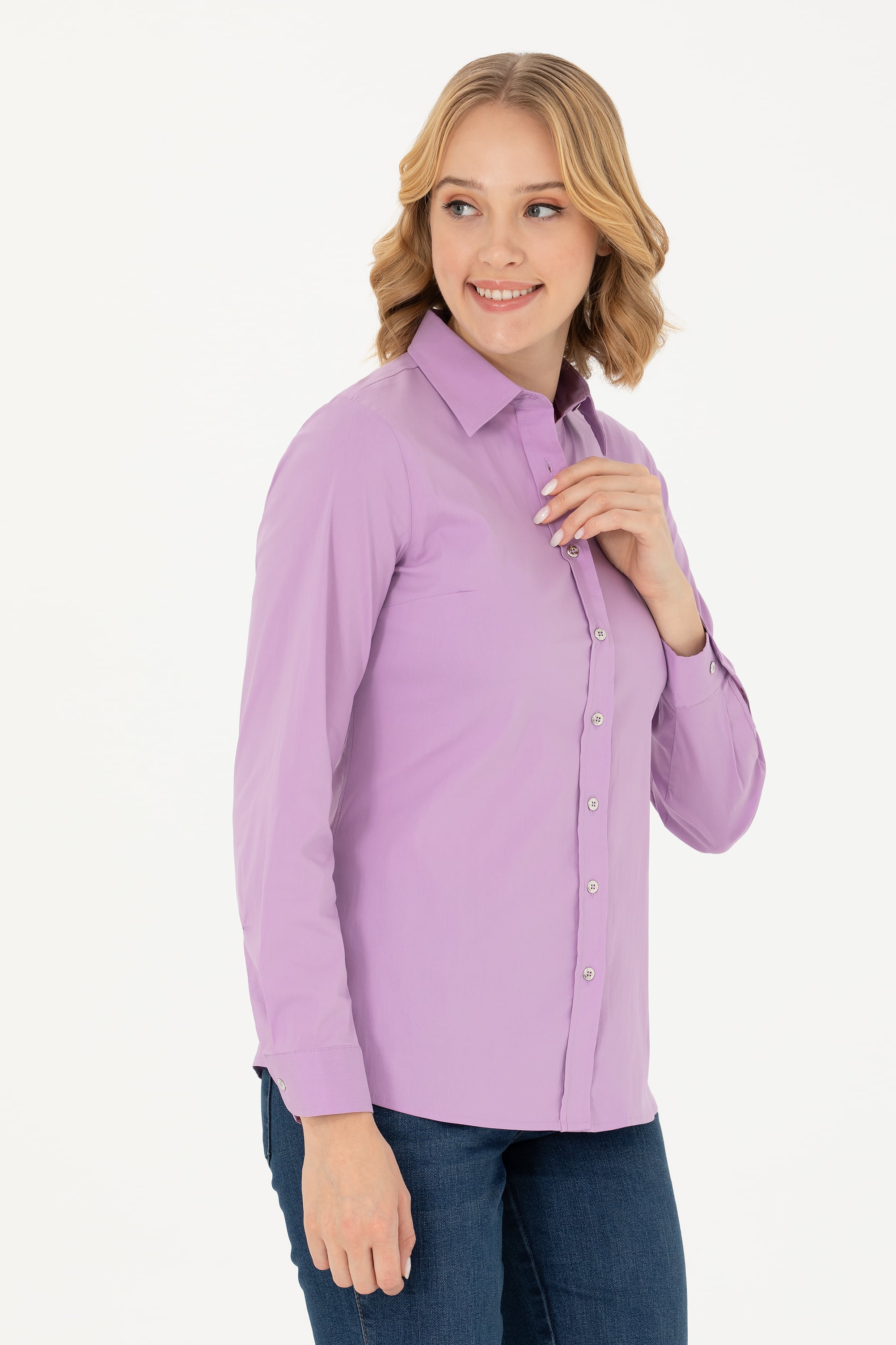 Kadın Lila Uzun Kollu Basic Gömlek