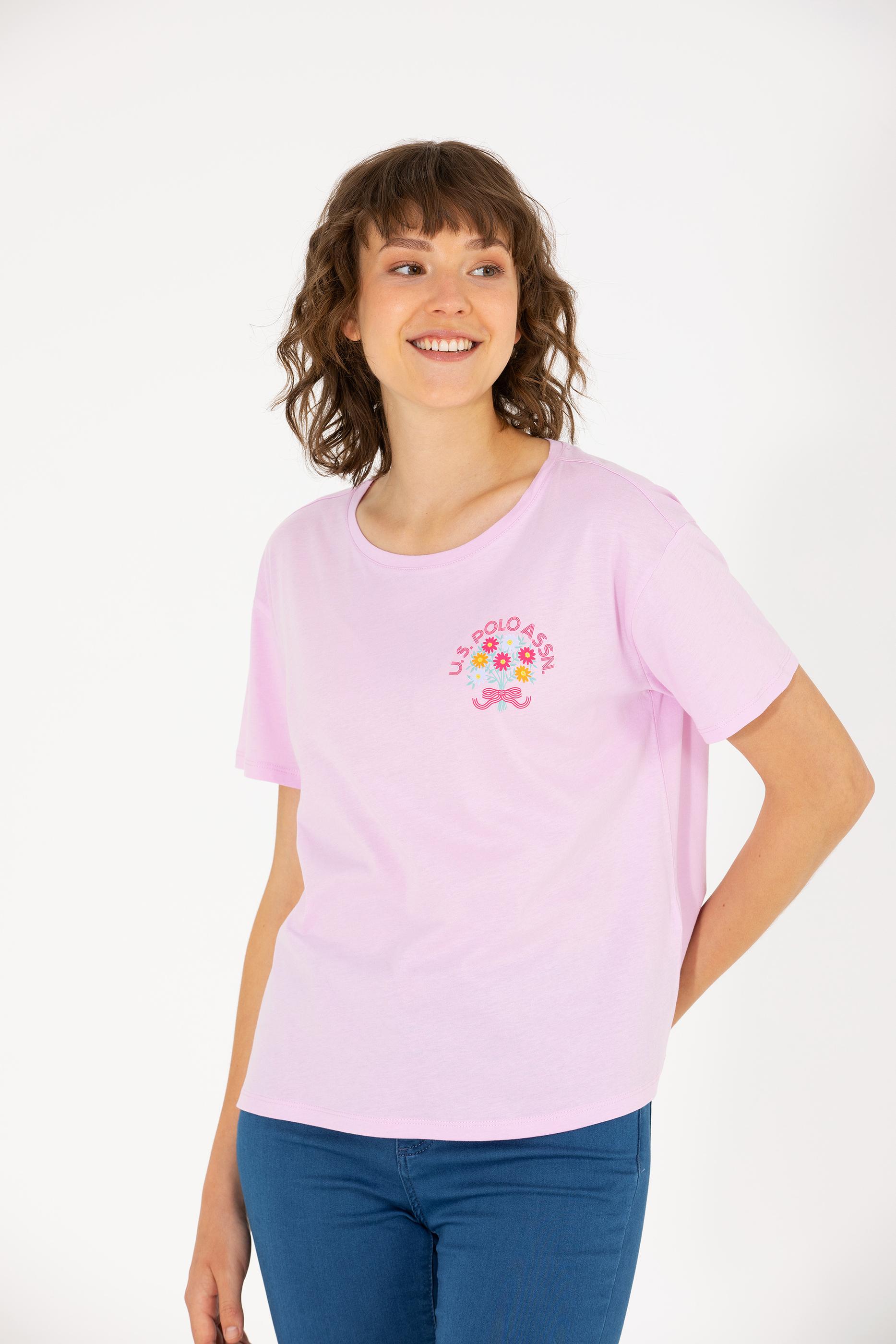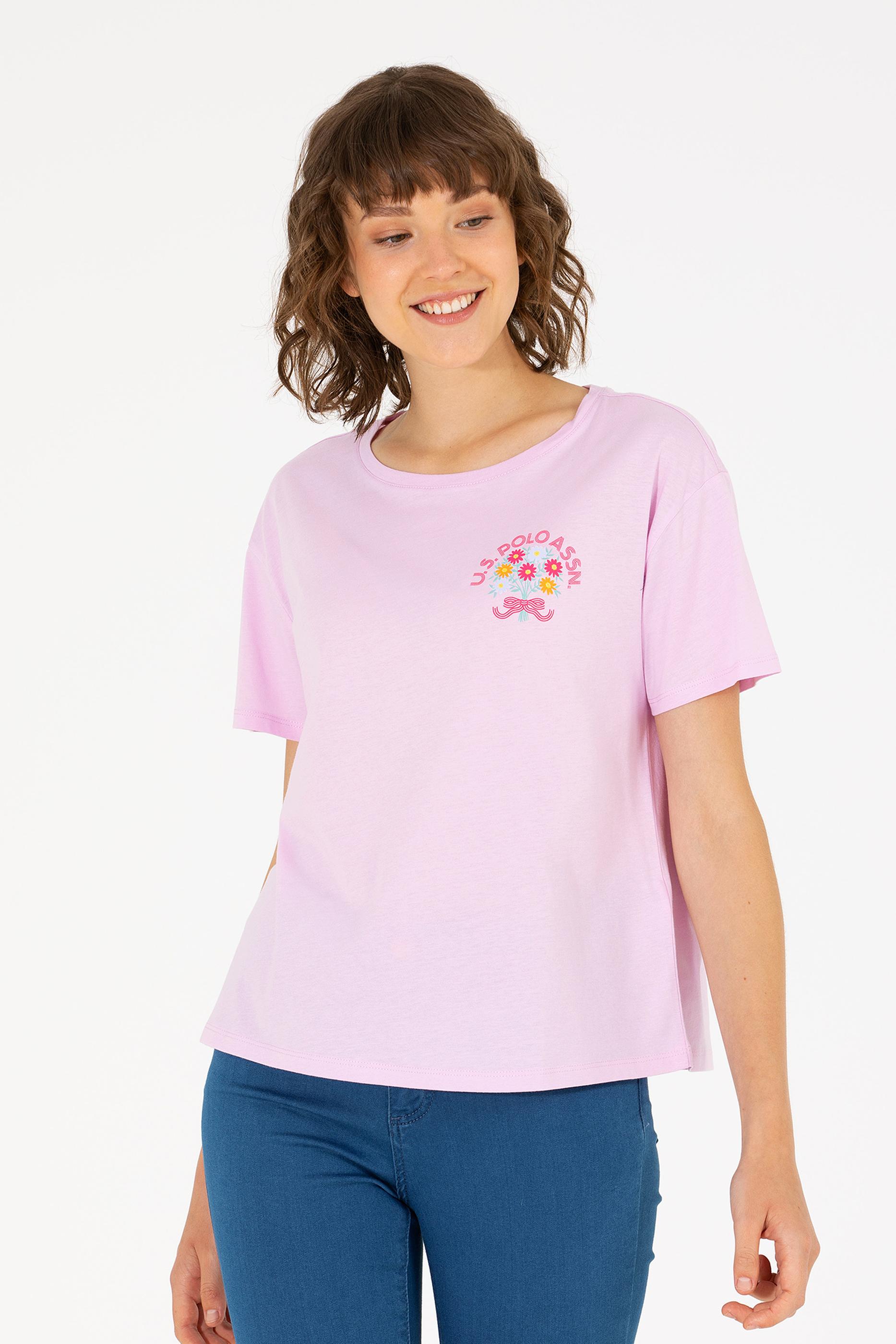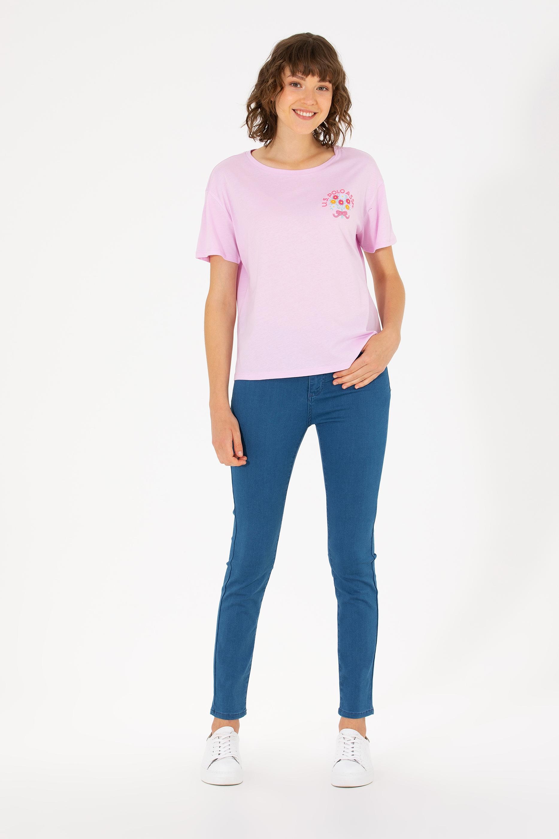 Su yeşili tişört kadınların yaz günlerine enerji katarken, bisiklet yaka tişört tasarımıyla da gün boyu ferah hissettiriyor. Yazlık tişört arayan bayanlar için ideal bir seçenek olup %100 pamuk kullanıldığından dolayı cilt dostudur. Comfort kalıp tişört olması sayesinde vücudu sıkıştırmadan geniş bir hareket özgürlüğü sunuyor. Online alışverişe özel bu kadın tişörtüne hemen sahip olun çiçek desenli USPA baskısıyla farkınızı yansıtın.