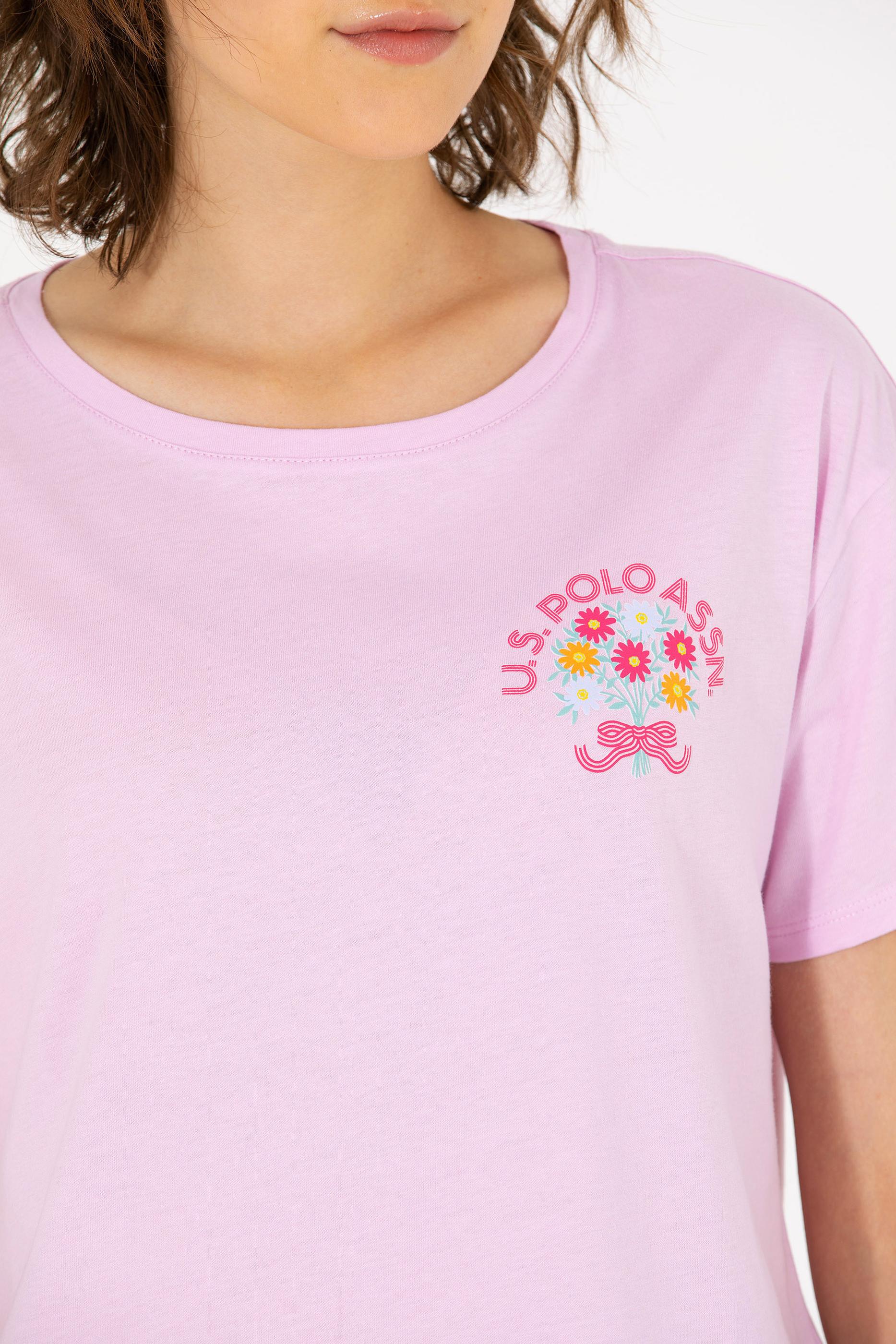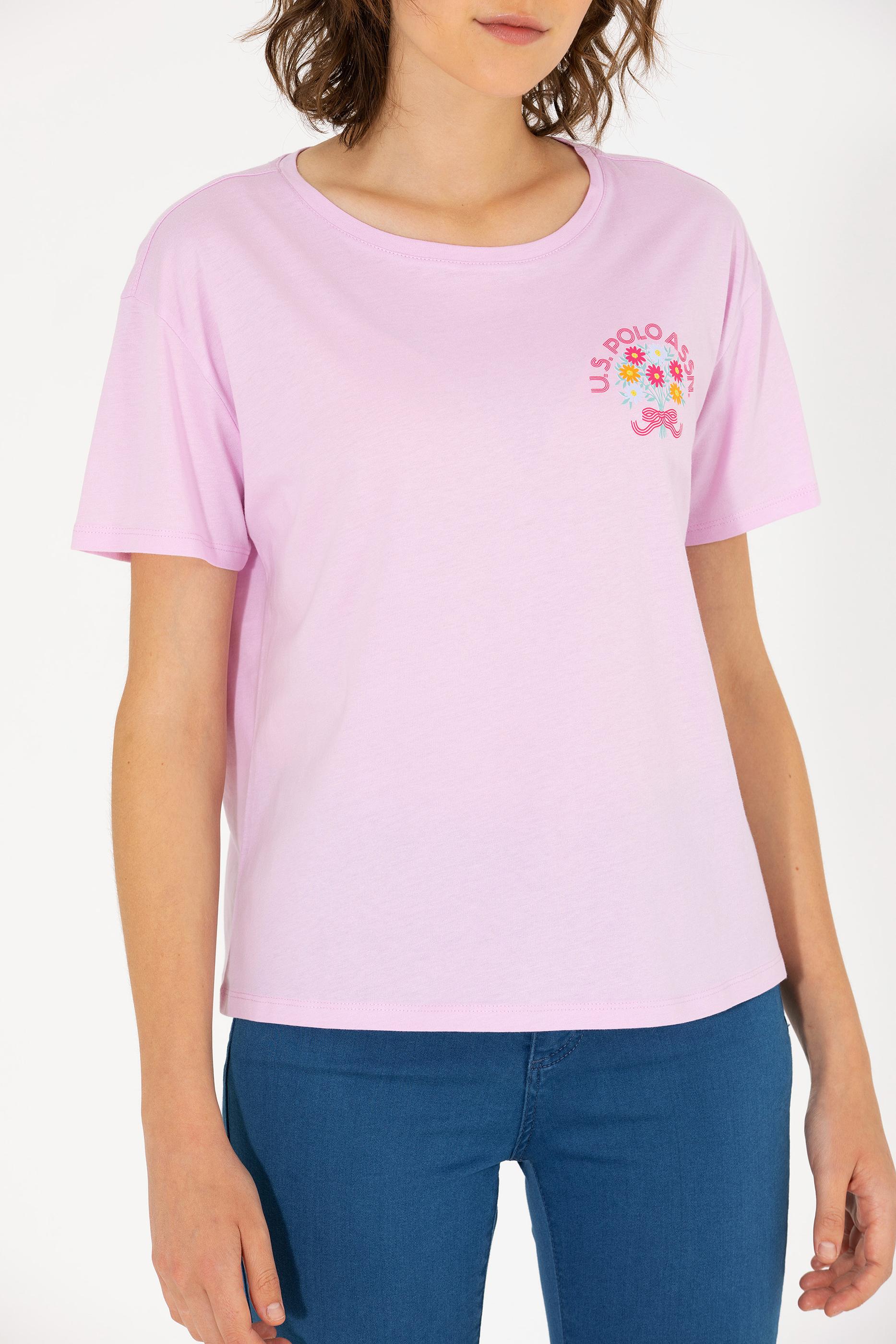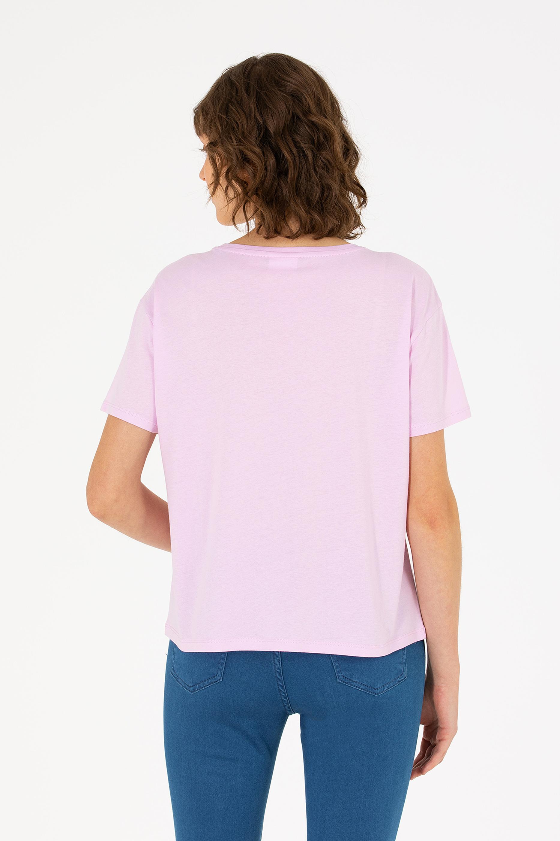 Su yeşili tişört kadınların yaz günlerine enerji katarken, bisiklet yaka tişört tasarımıyla da gün boyu ferah hissettiriyor. Yazlık tişört arayan bayanlar için ideal bir seçenek olup %100 pamuk kullanıldığından dolayı cilt dostudur. Comfort kalıp tişört olması sayesinde vücudu sıkıştırmadan geniş bir hareket özgürlüğü sunuyor. Online alışverişe özel bu kadın tişörtüne hemen sahip olun çiçek desenli USPA baskısıyla farkınızı yansıtın.