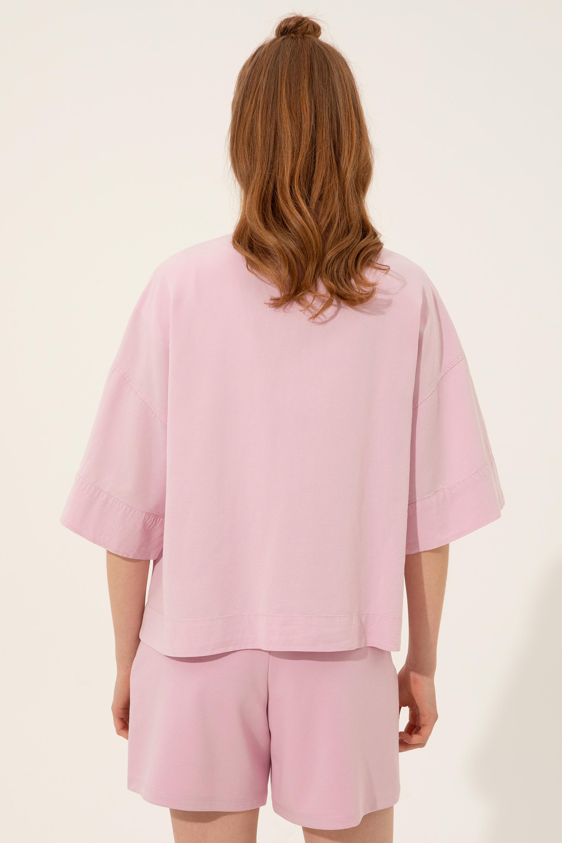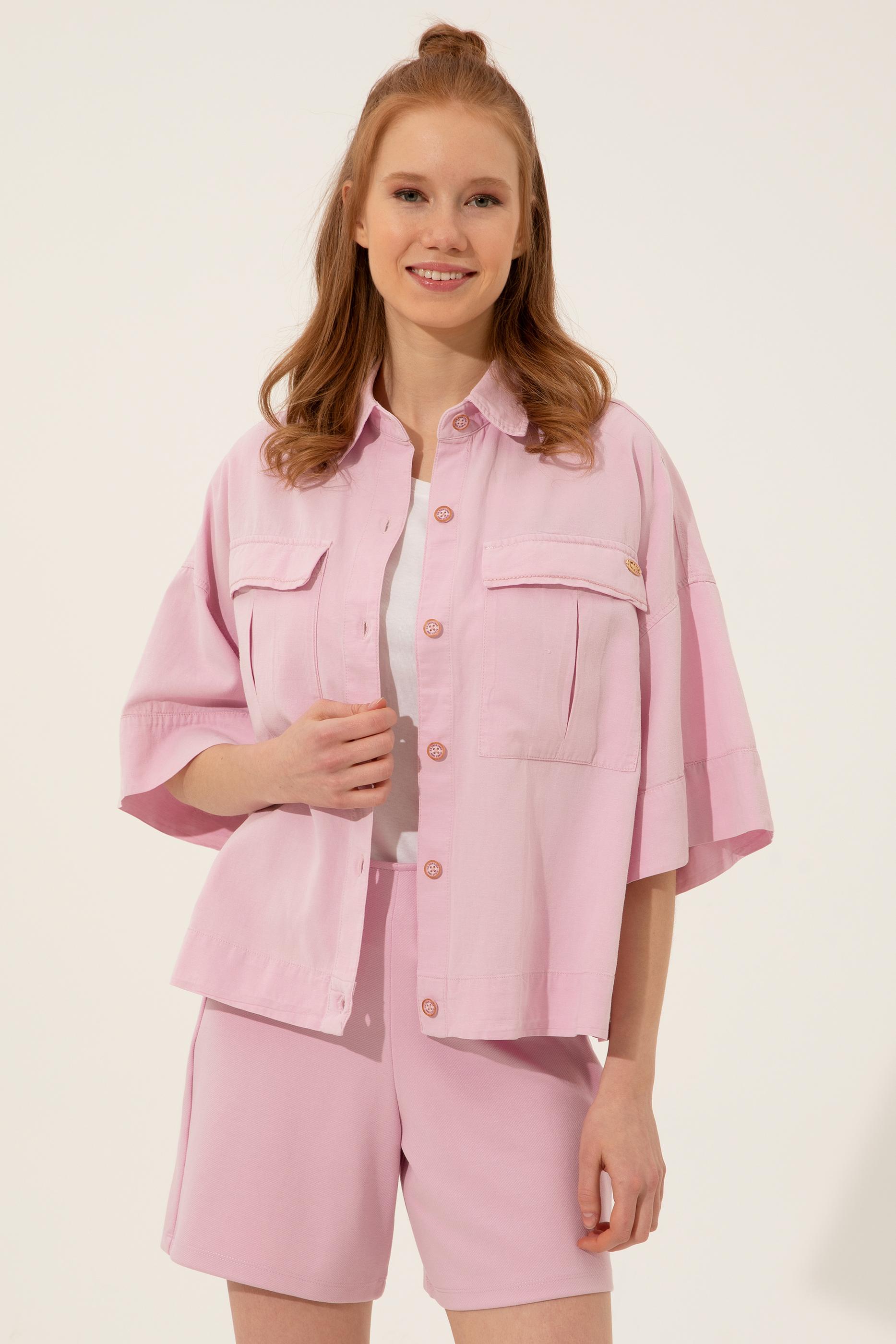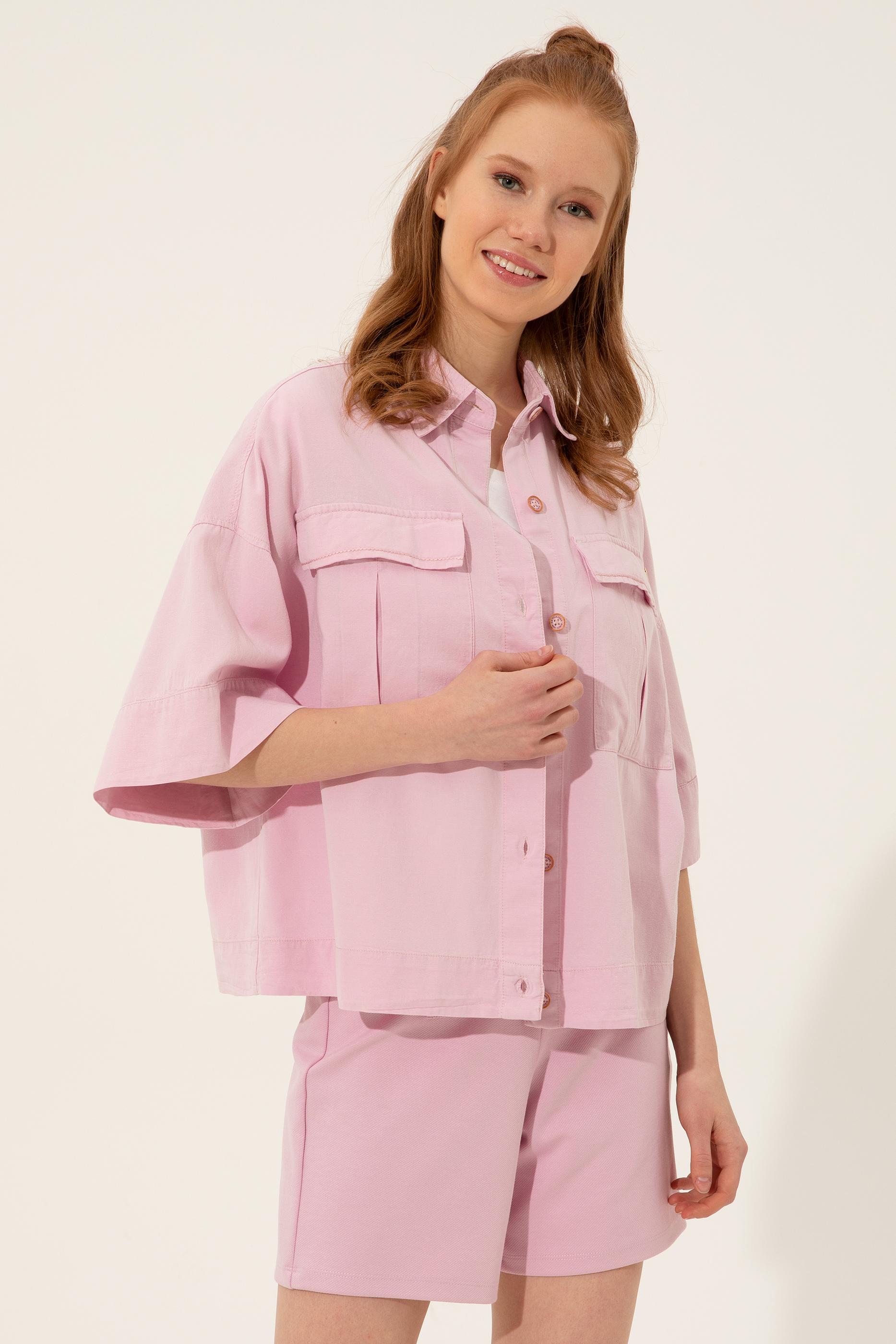 - Kadın Manolya Keten Görünümlü Uzun Kollu Gömlek