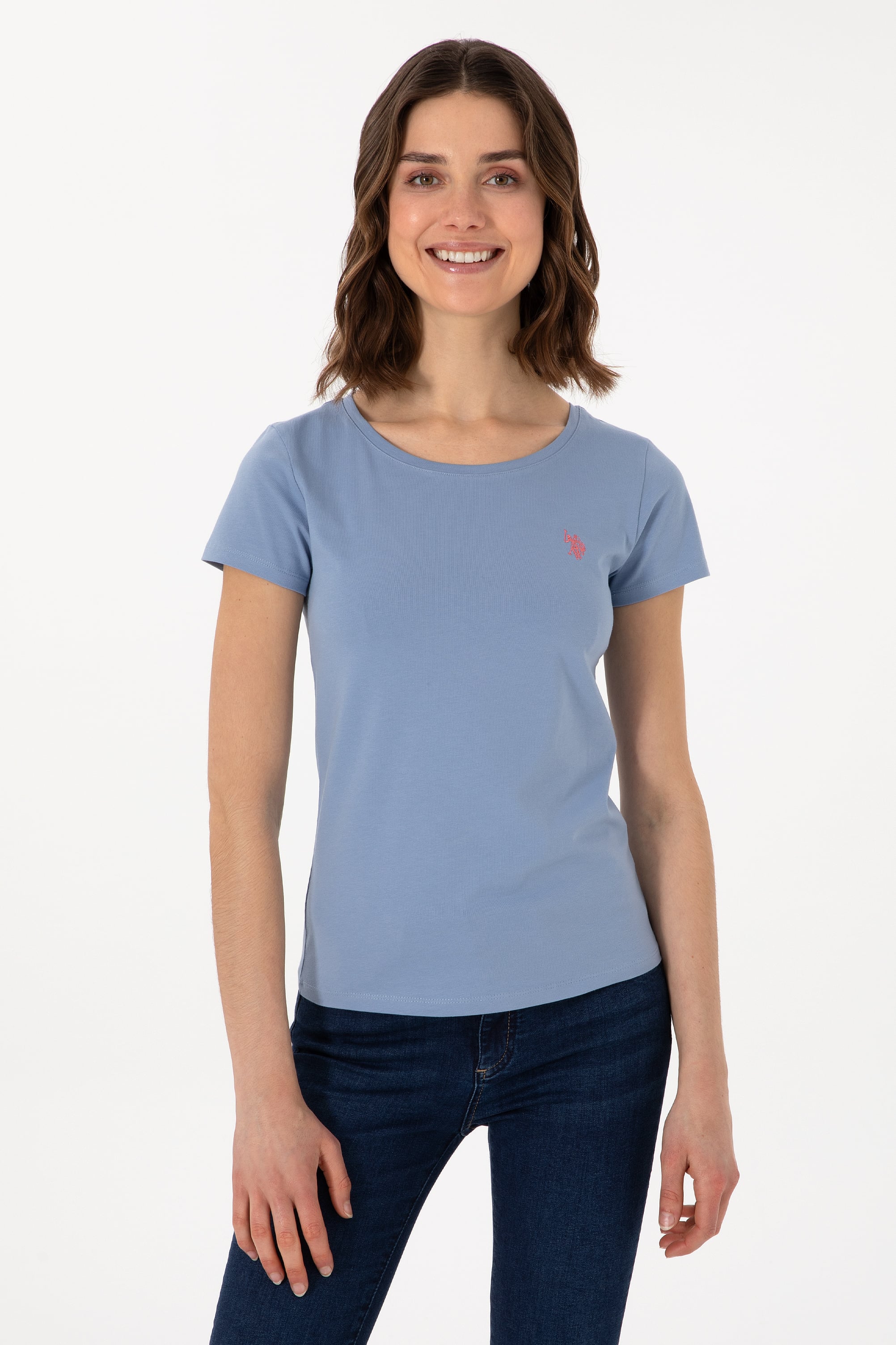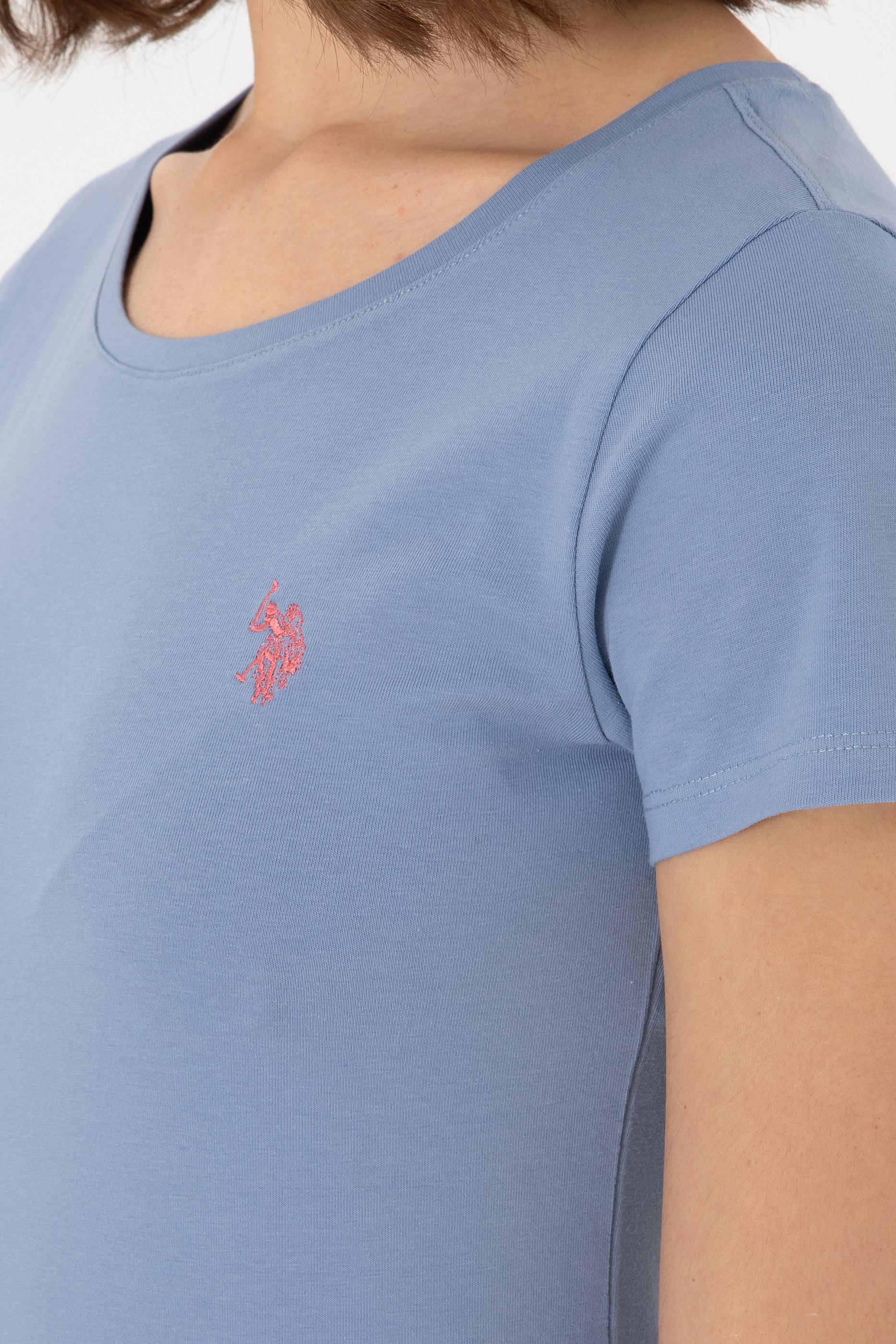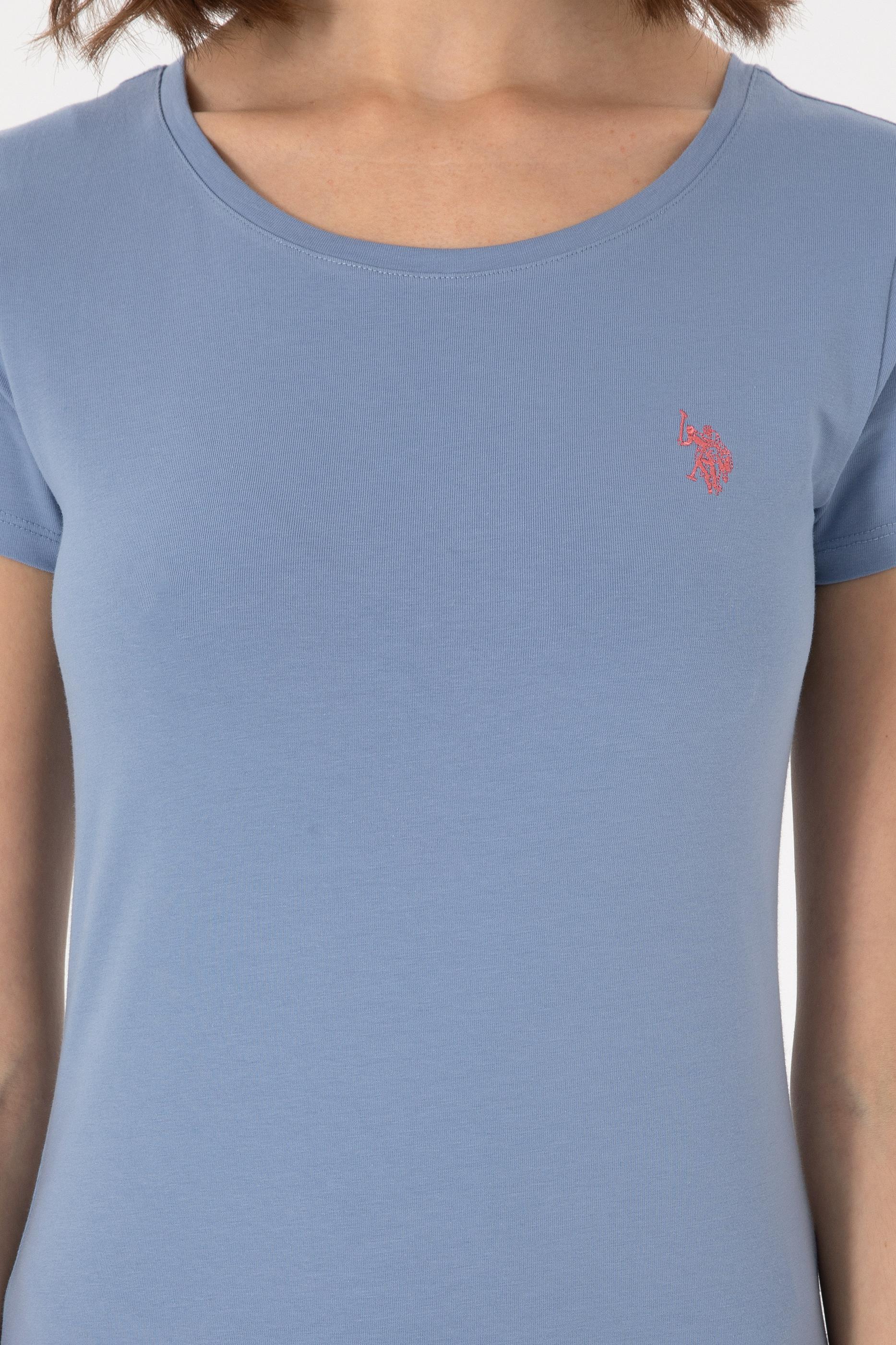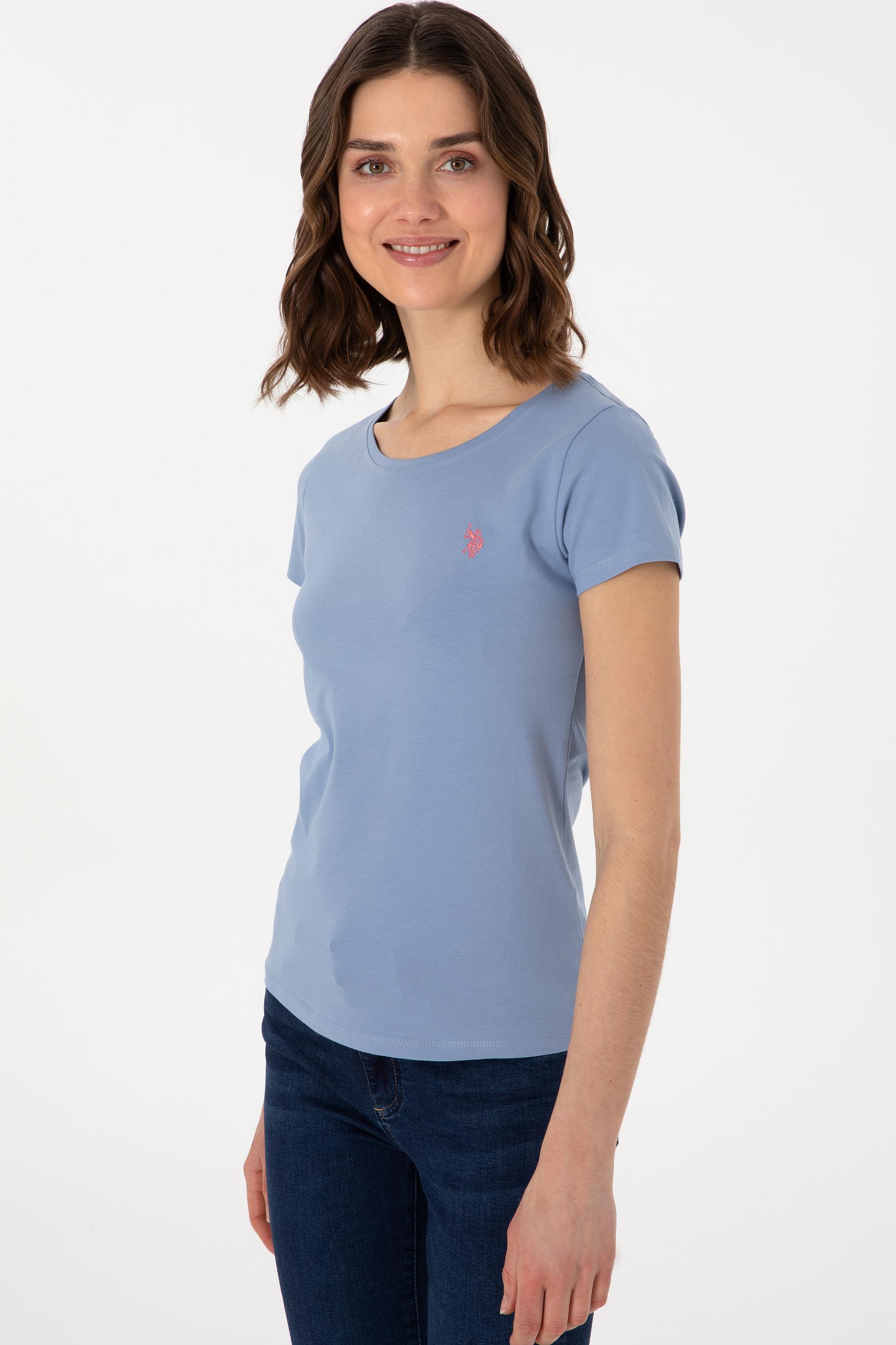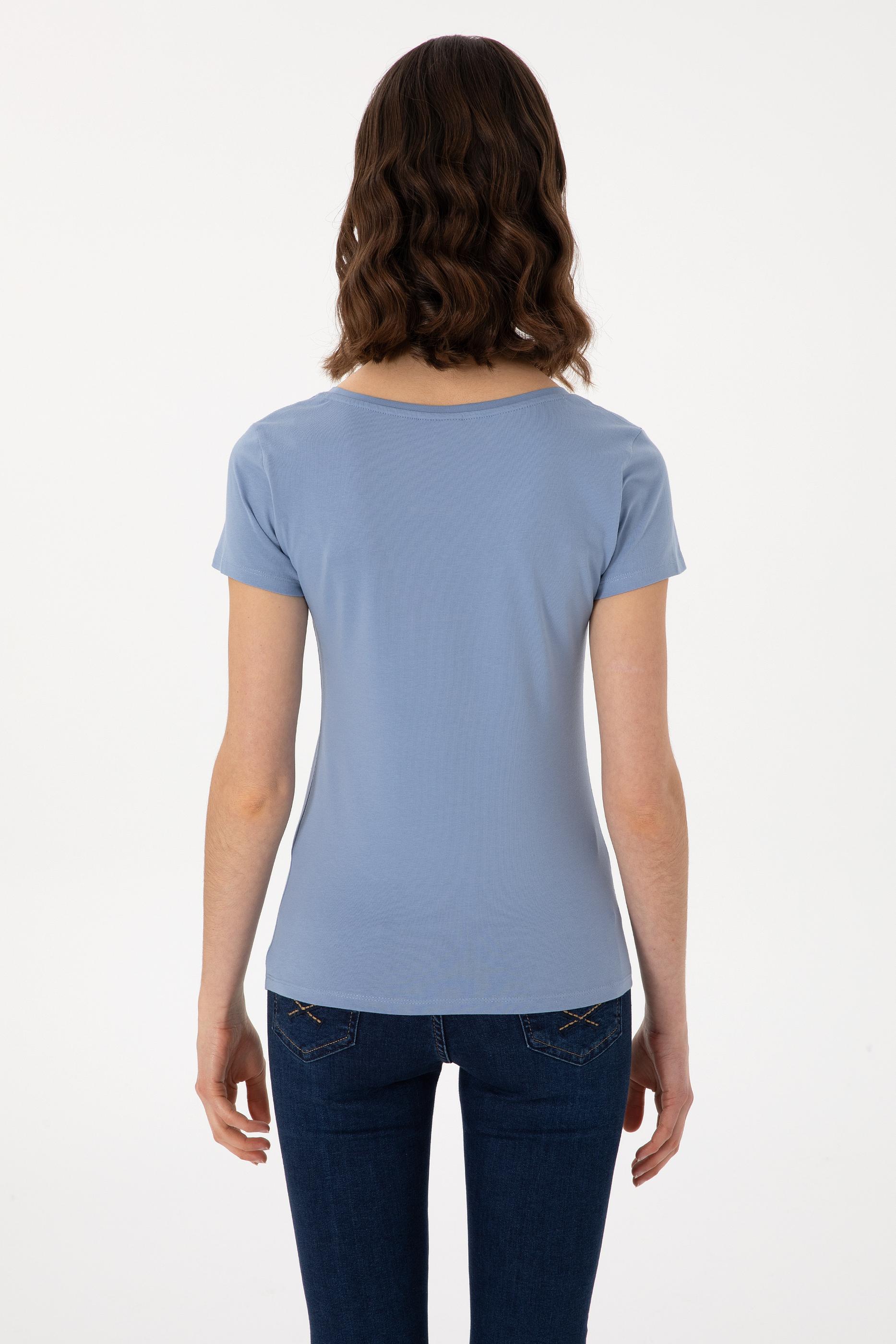 Kadın Mavi Bisiklet Yaka Tişört - 50300894031