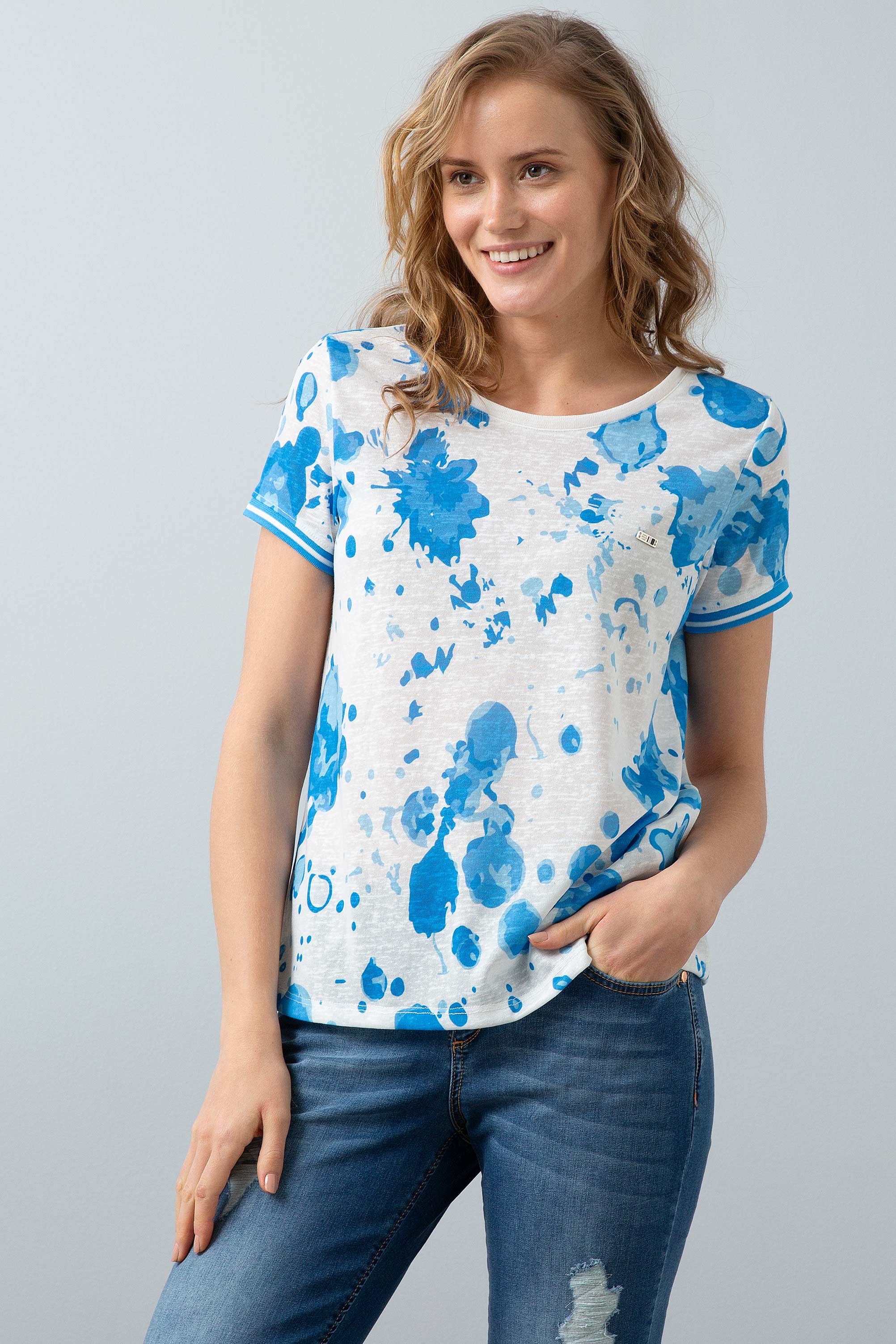 Kadın Mavi Bisiklet Yaka T-Shirt