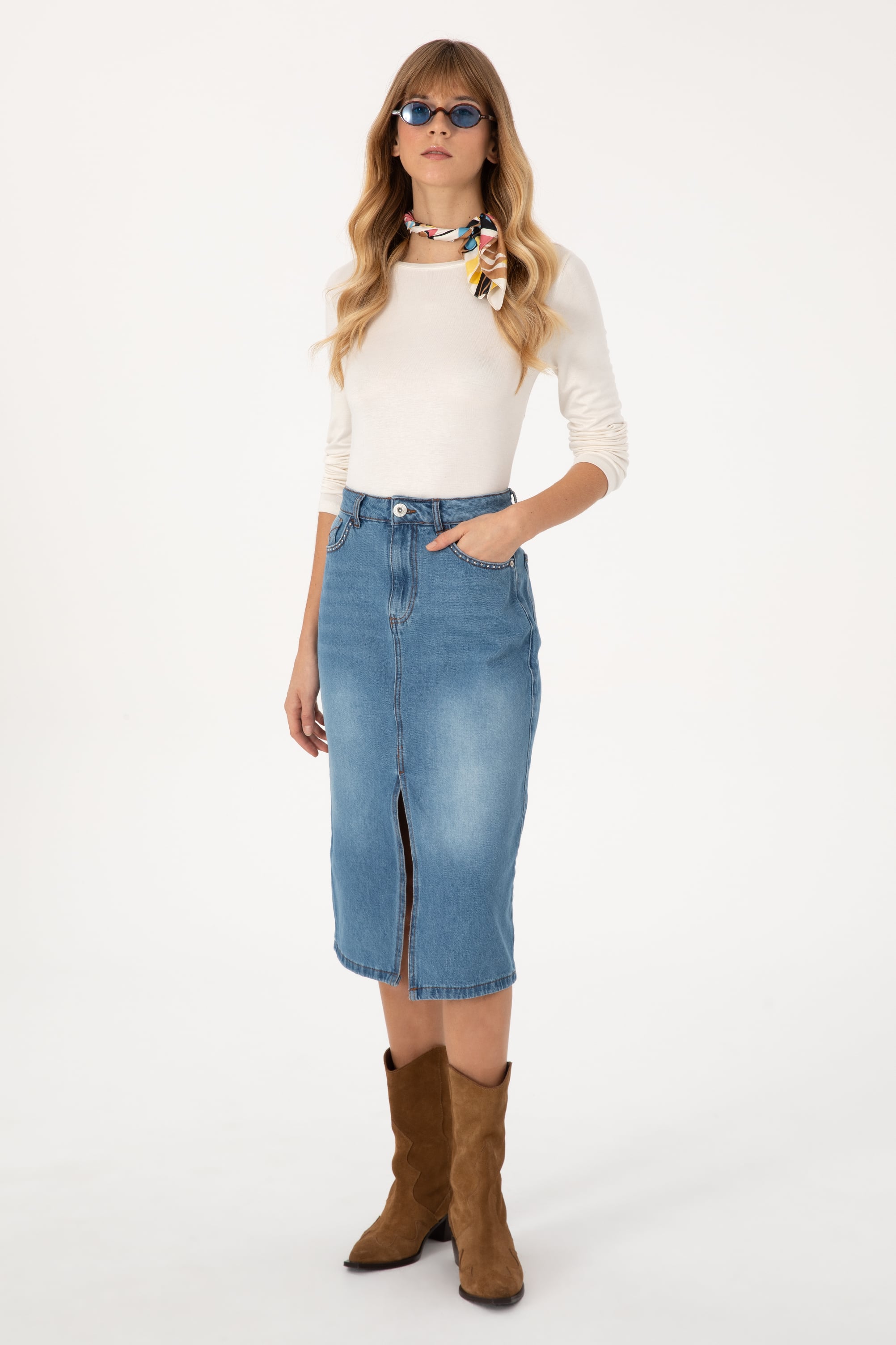 Kadın Mavi Jean Etek