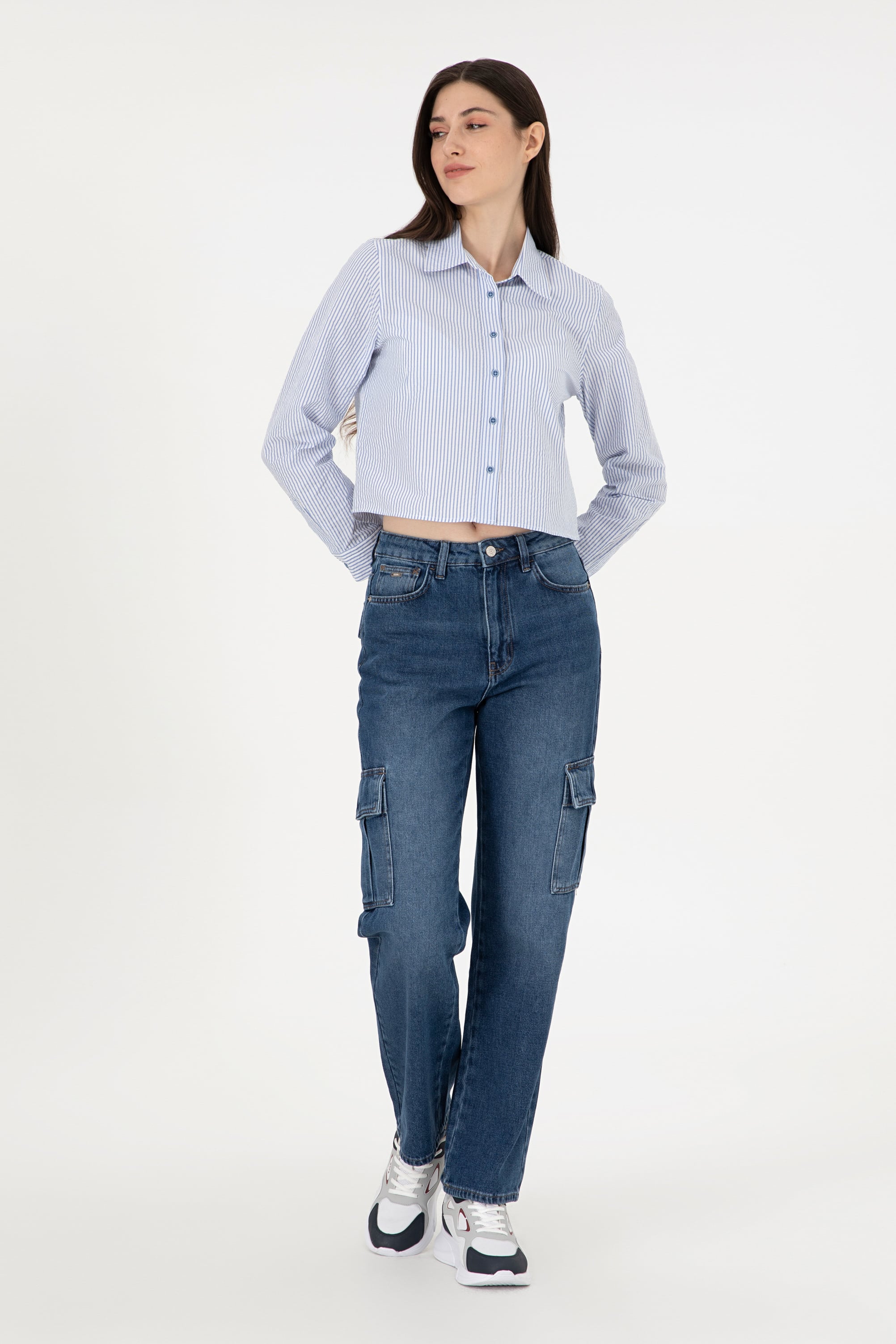 - Kadın Mavi Cargofit Jean Pantolon