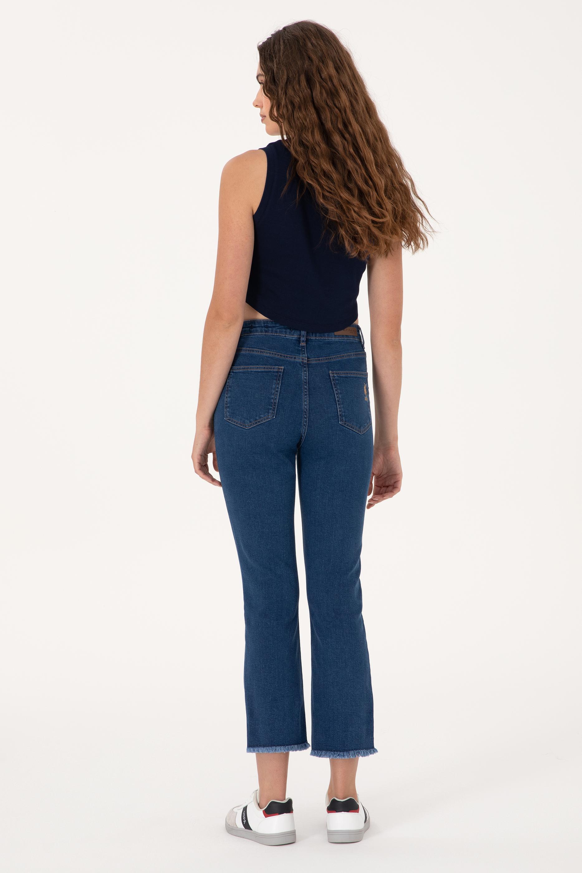- Kadın Mavi Slim Flare Cropped Fit Jean Pantolon