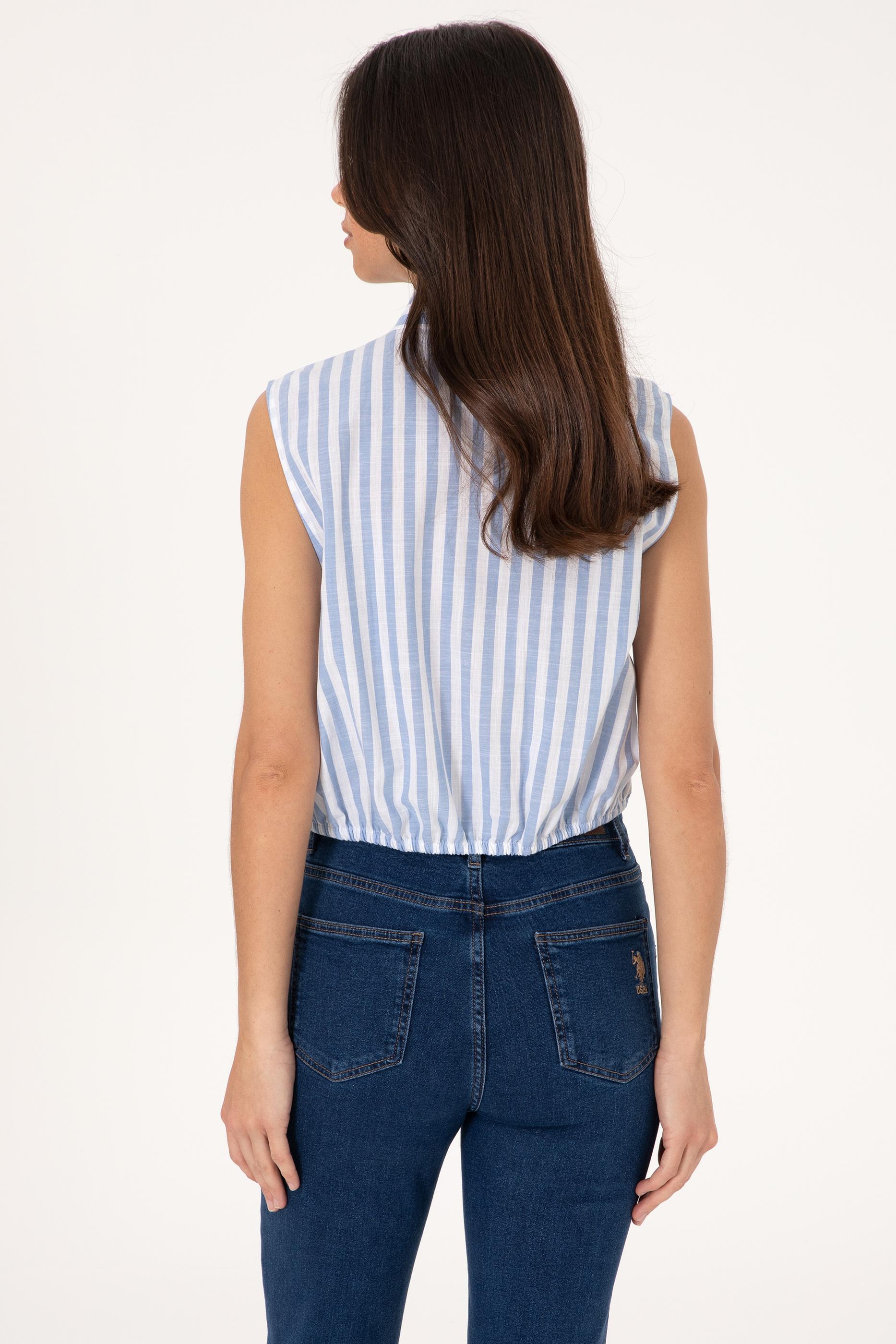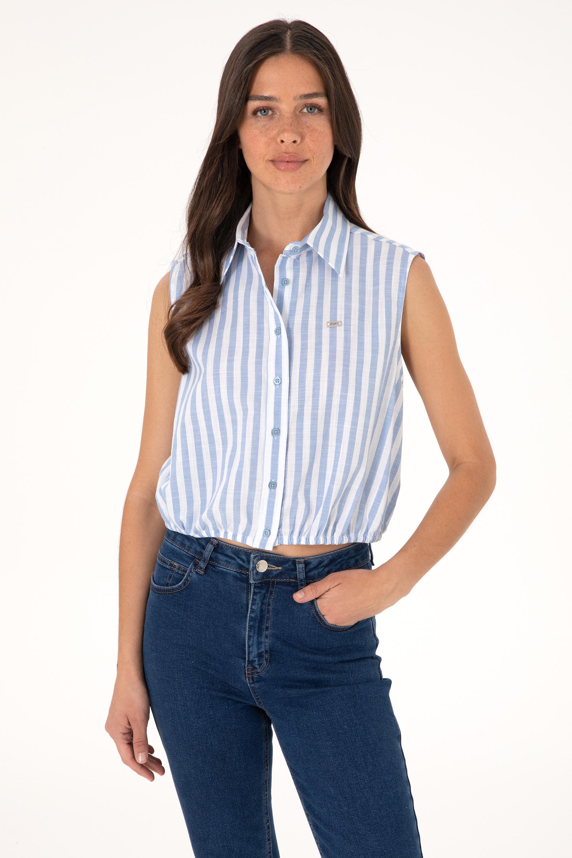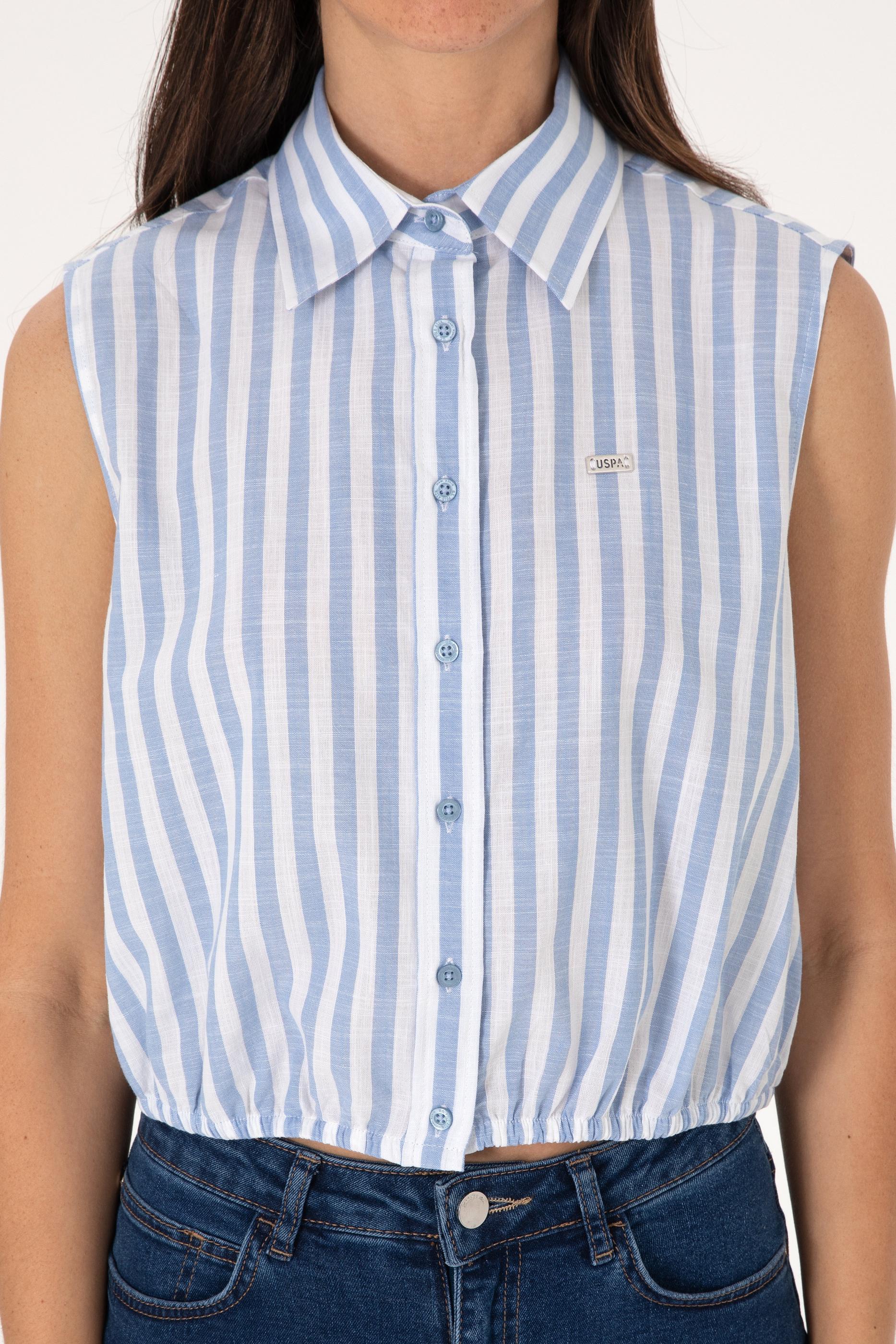 - Kadın Mavi Çizgili Kısa Kollu Gömlek