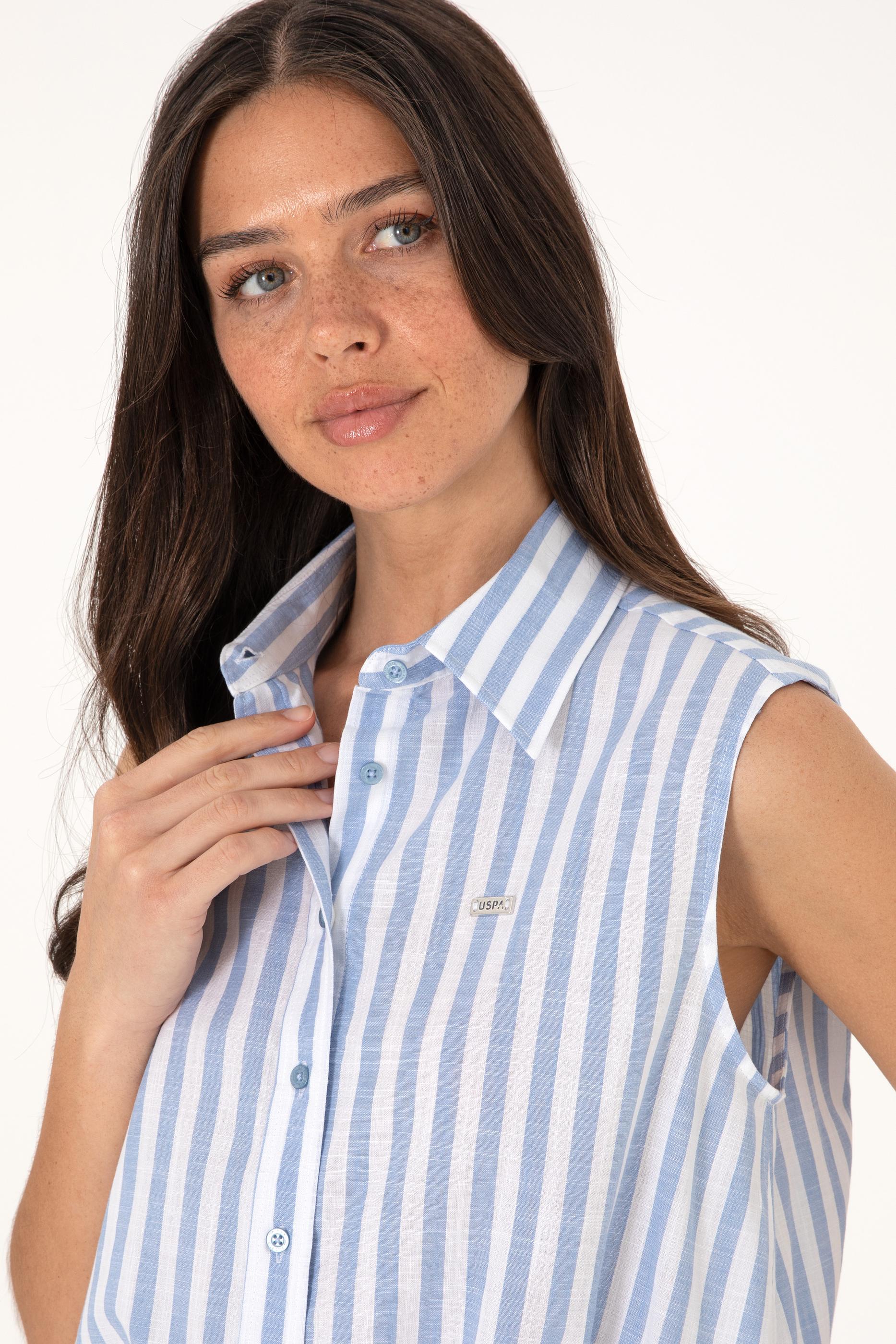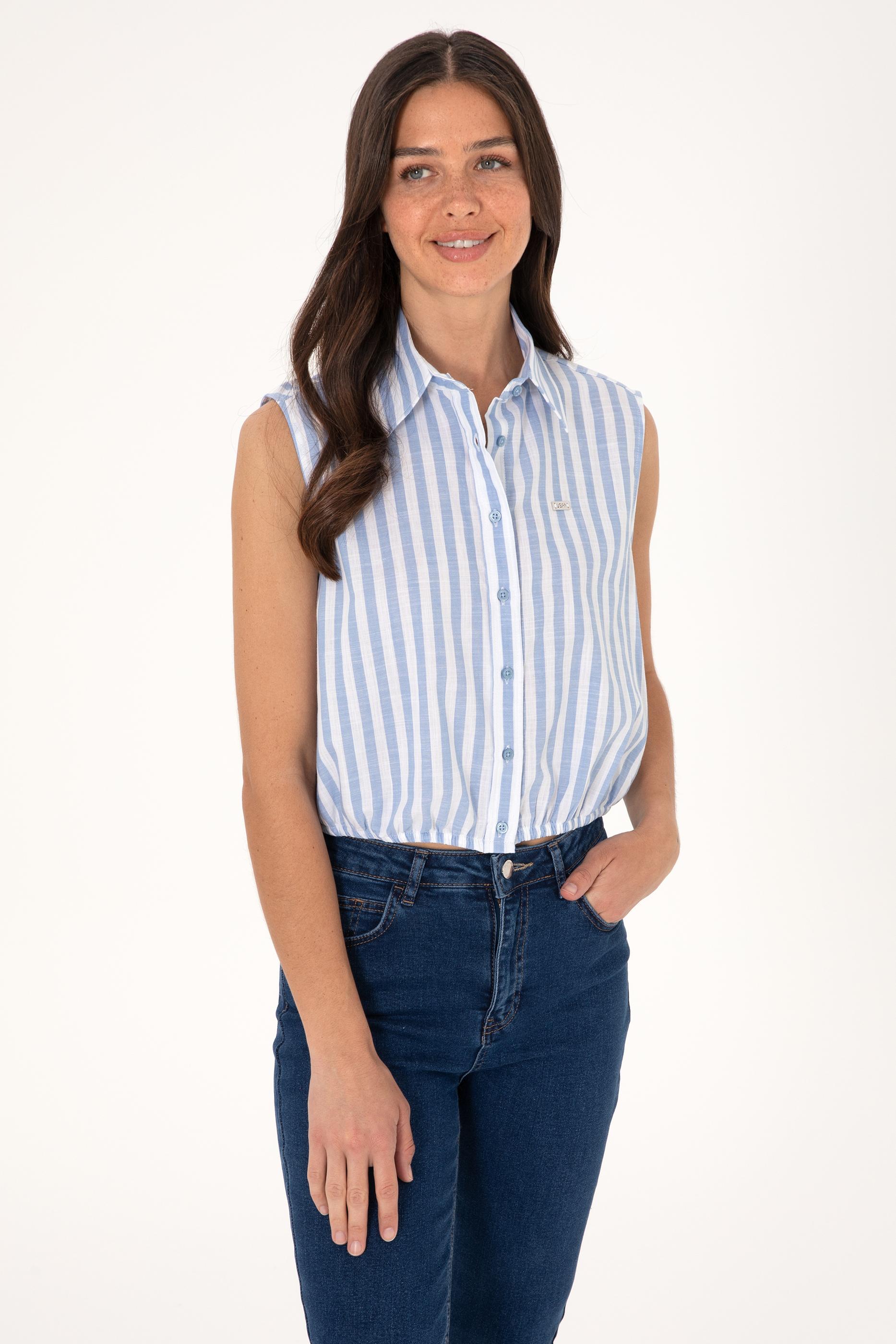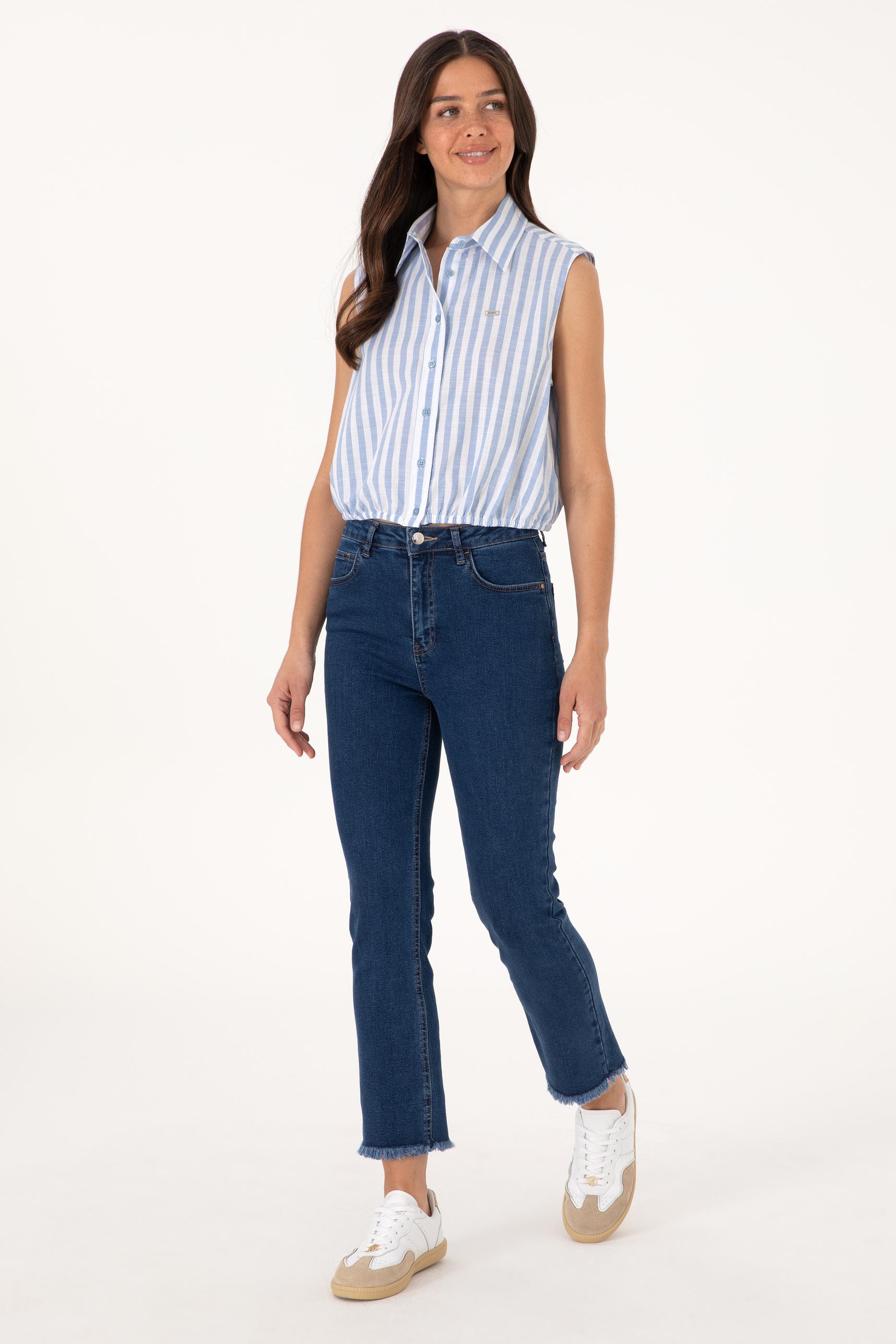 - Kadın Mavi Çizgili Kısa Kollu Gömlek