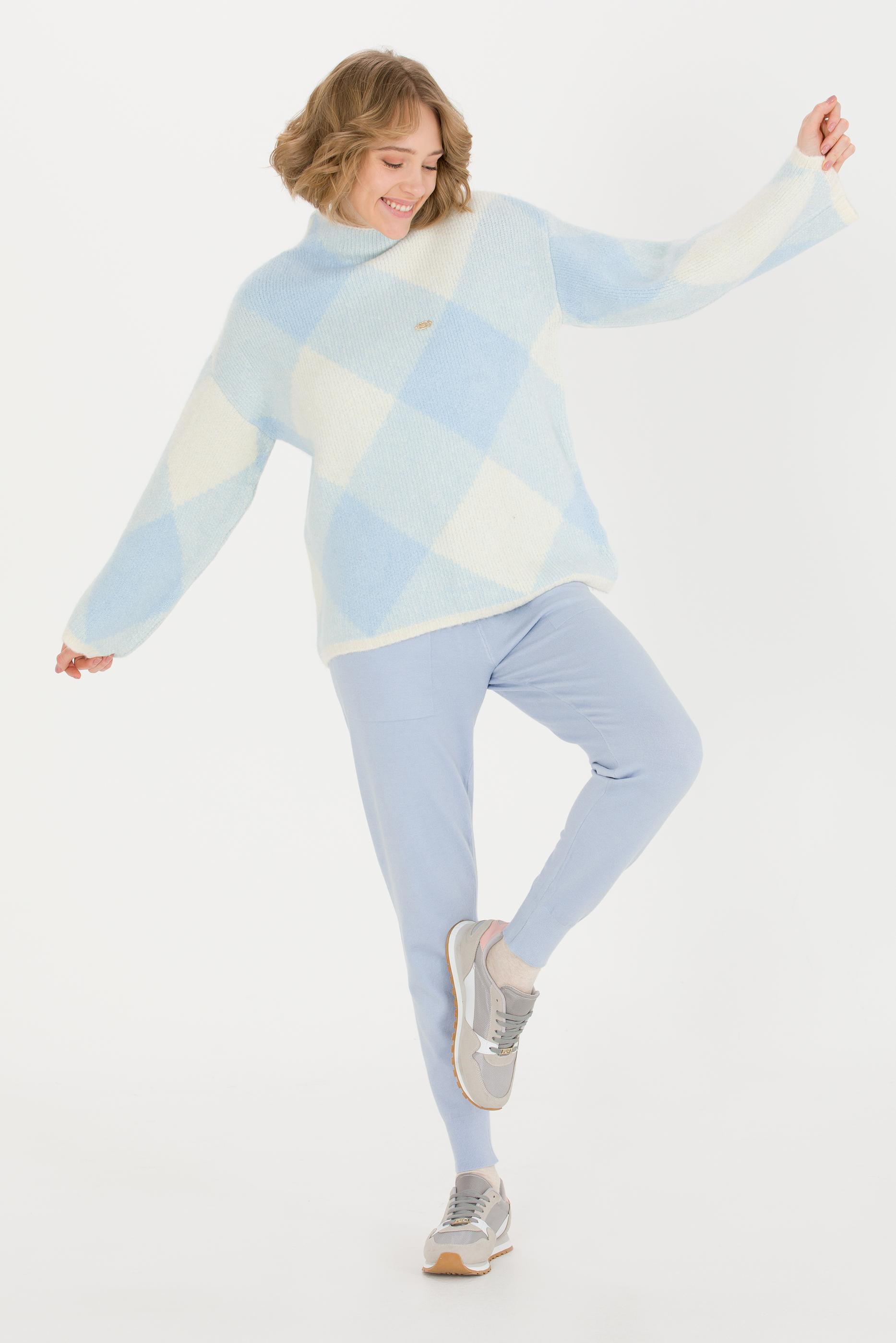 Kadın Mavi Triko Pantolon