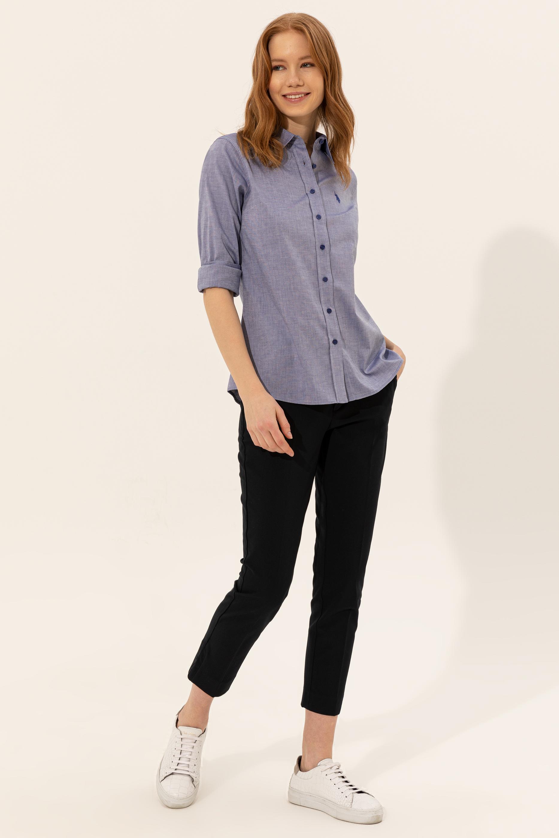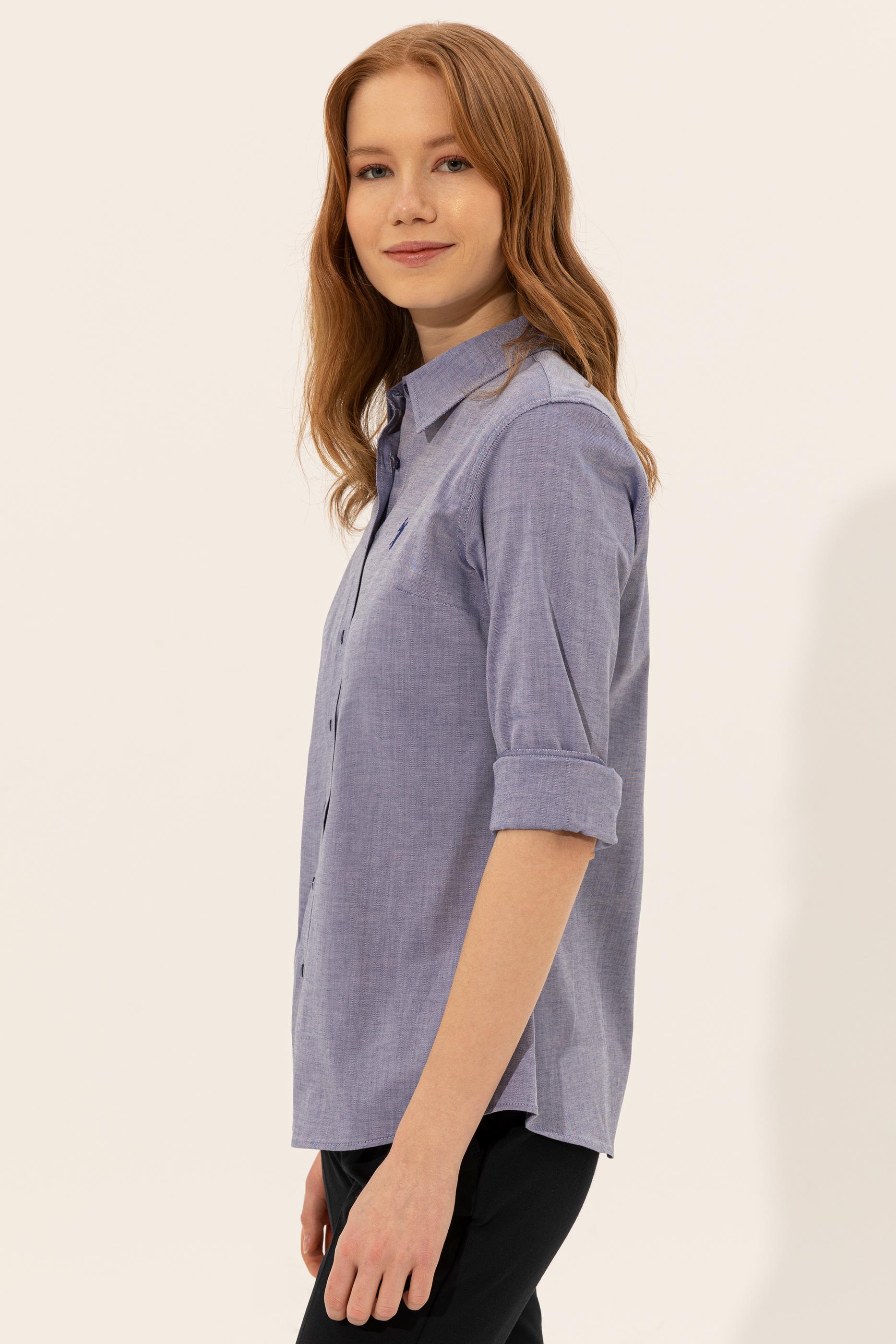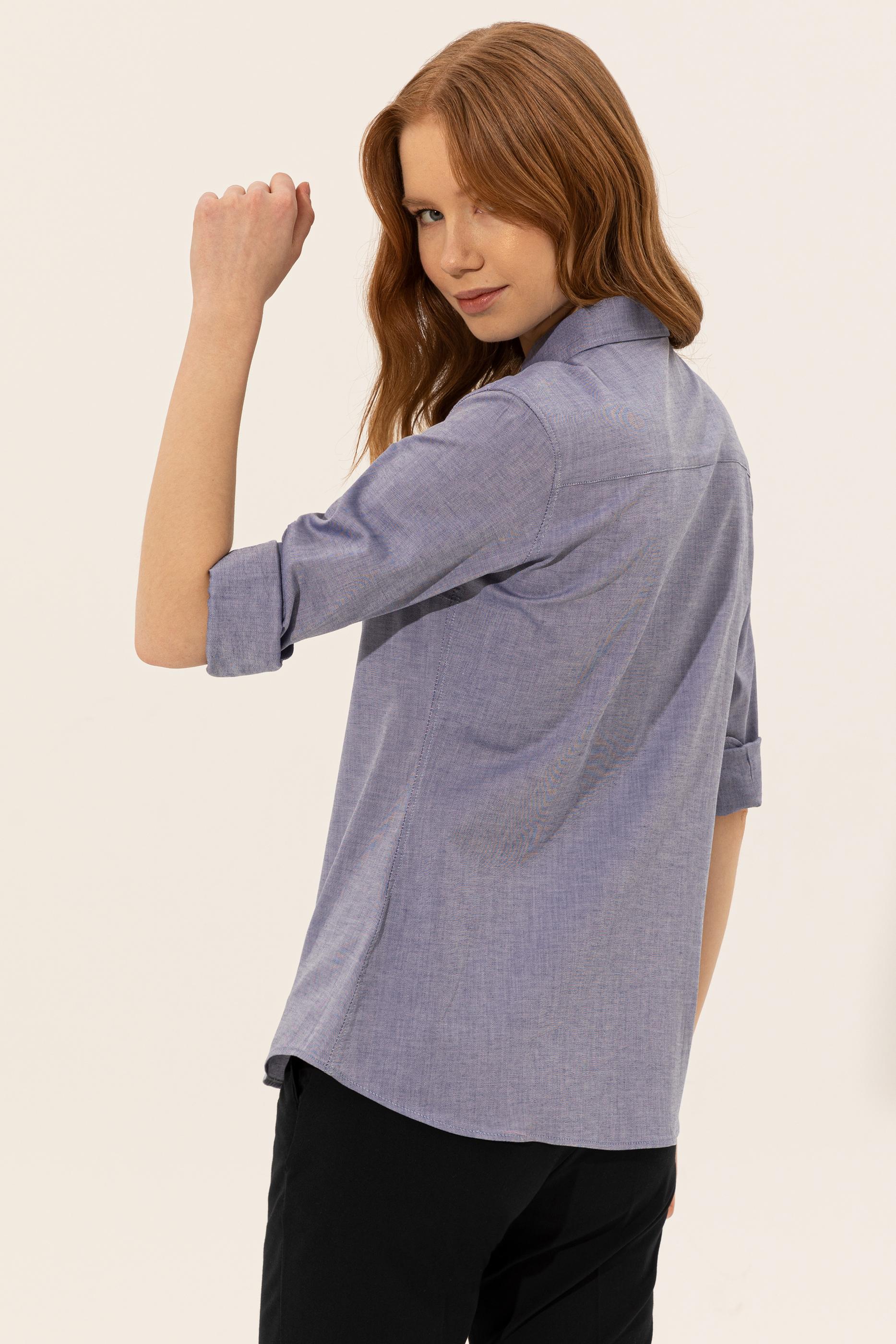 - Kadın Mavi Uzun Kollu Basic Gömlek