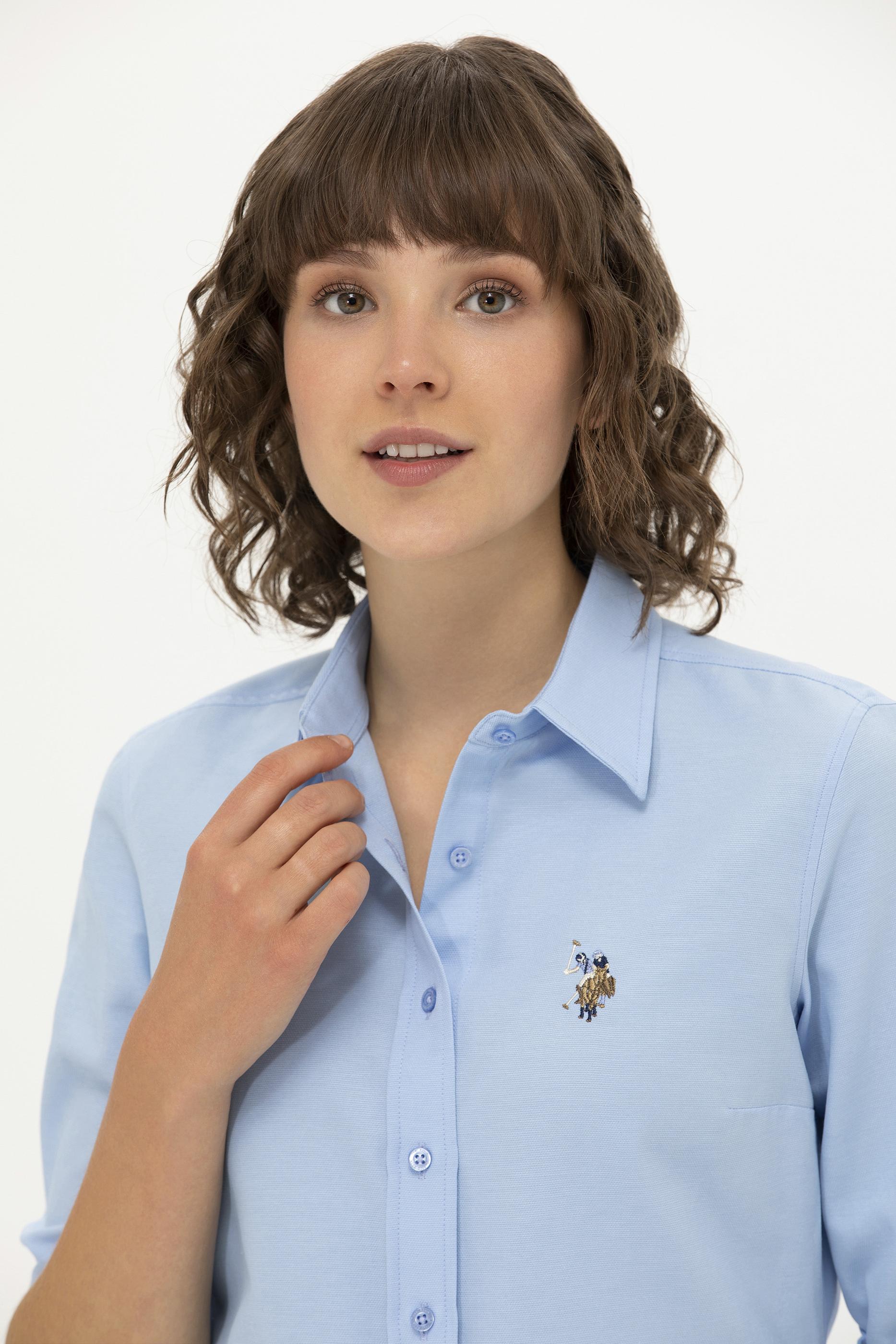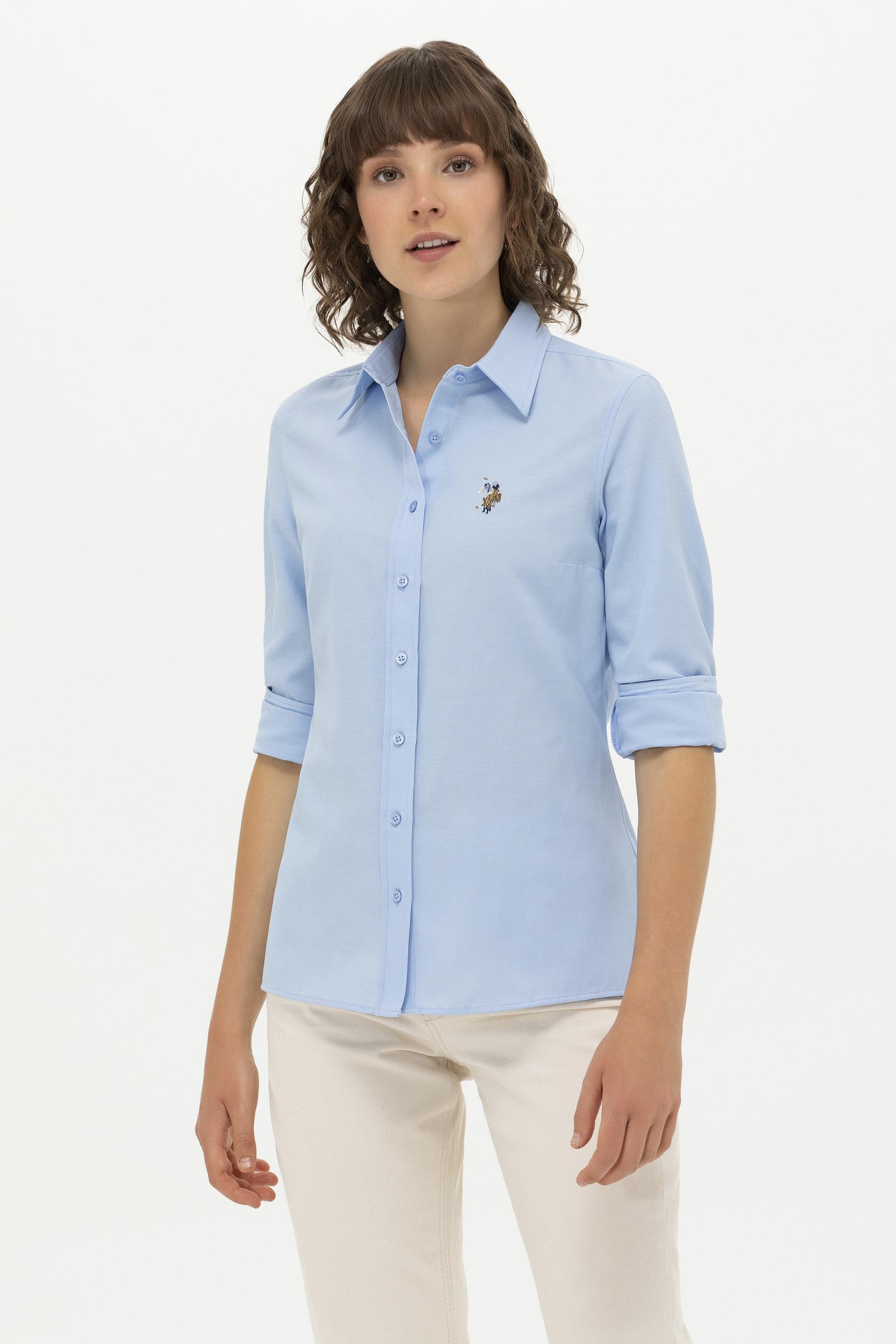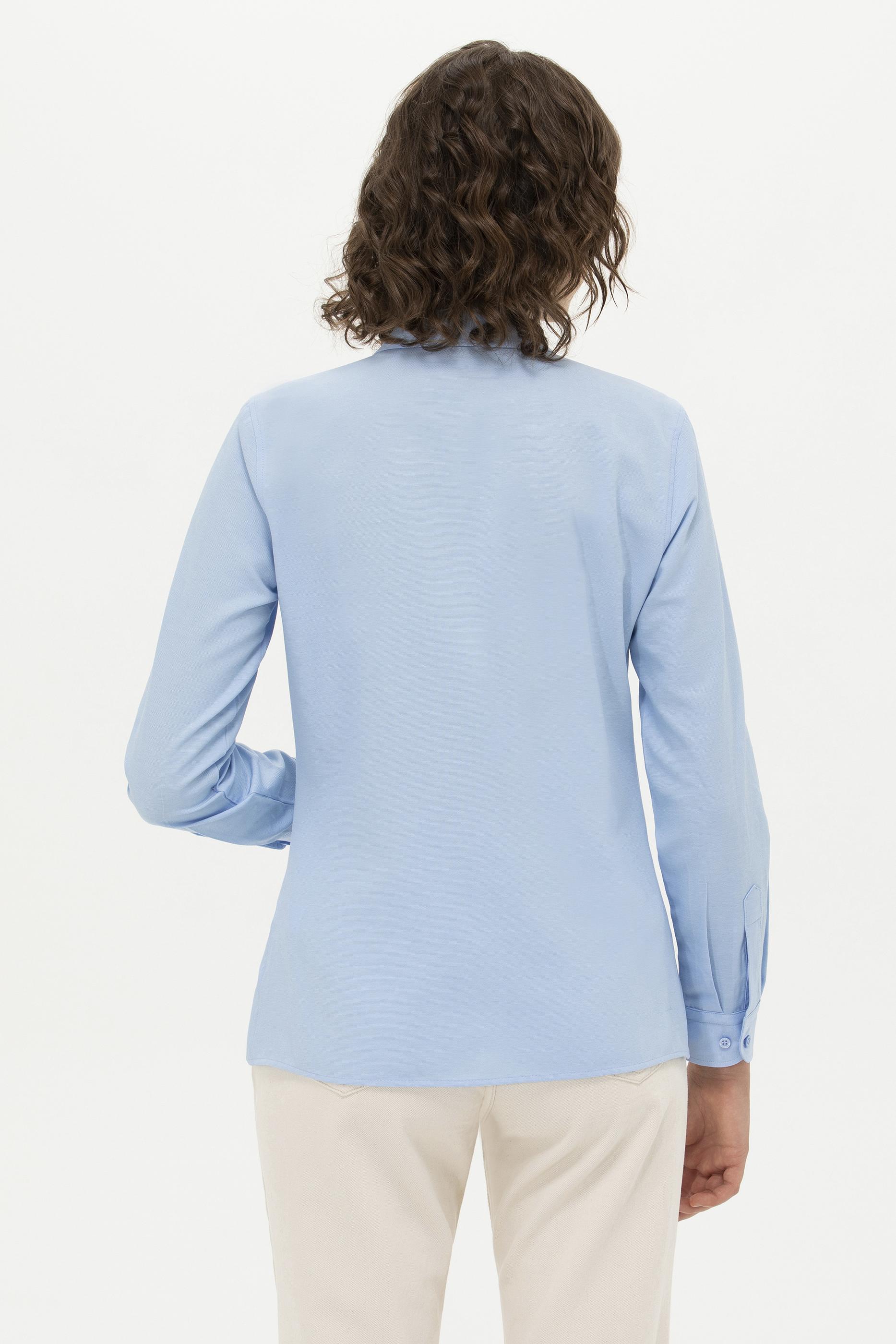 Kadın Mavi Uzun Kollu Basic Gömlek