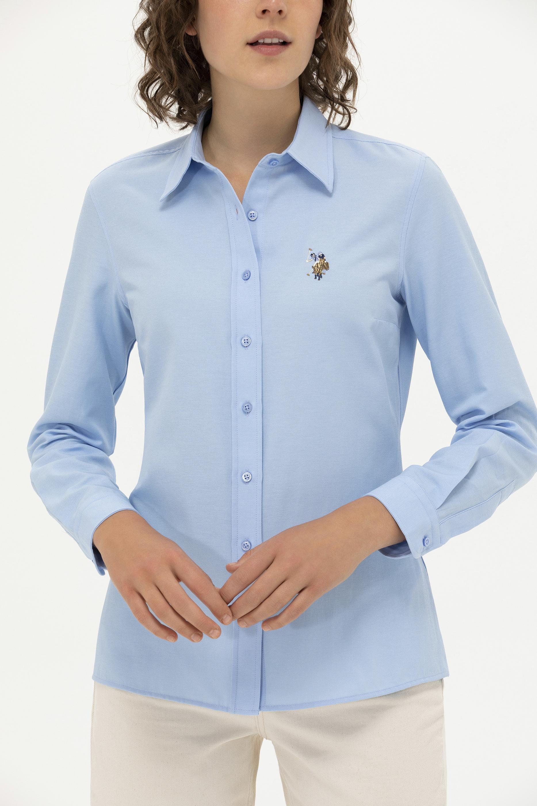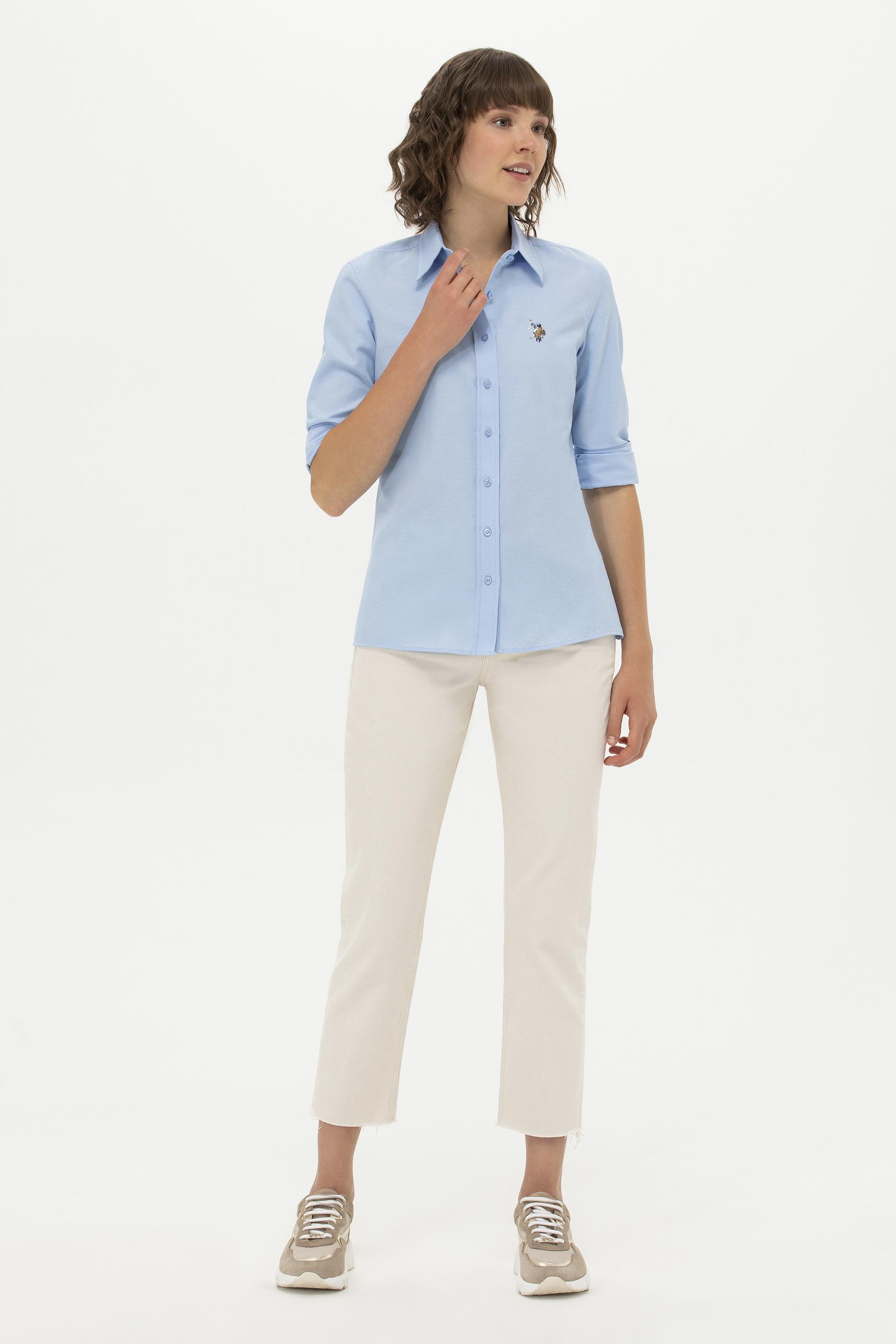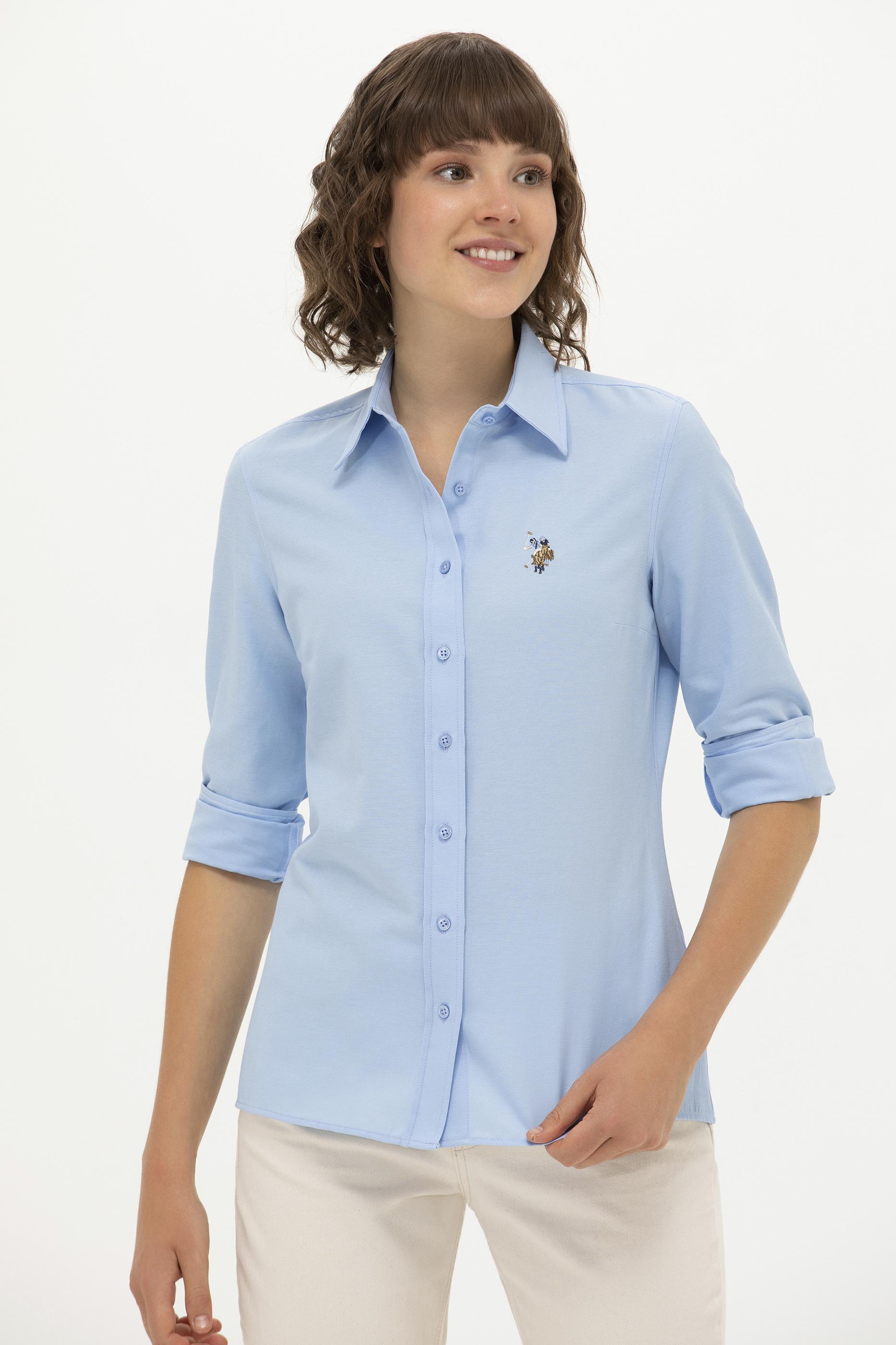 Kadın Mavi Uzun Kollu Basic Gömlek