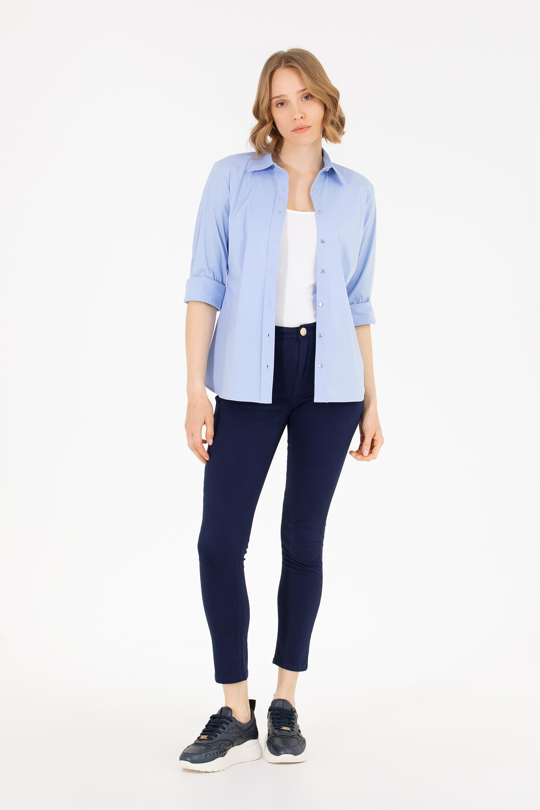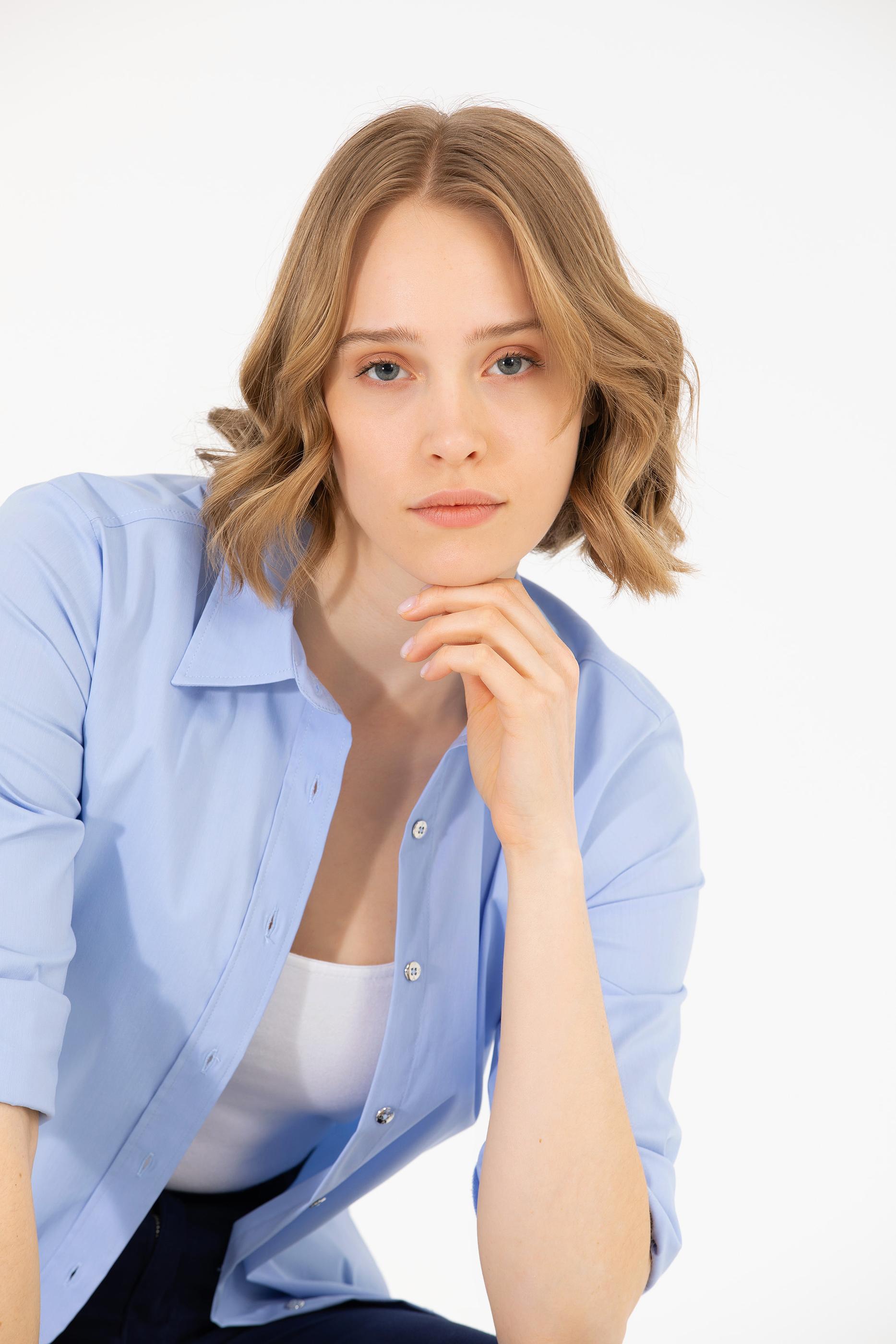 - Kadın Mavi Uzun Kollu Basic Gömlek