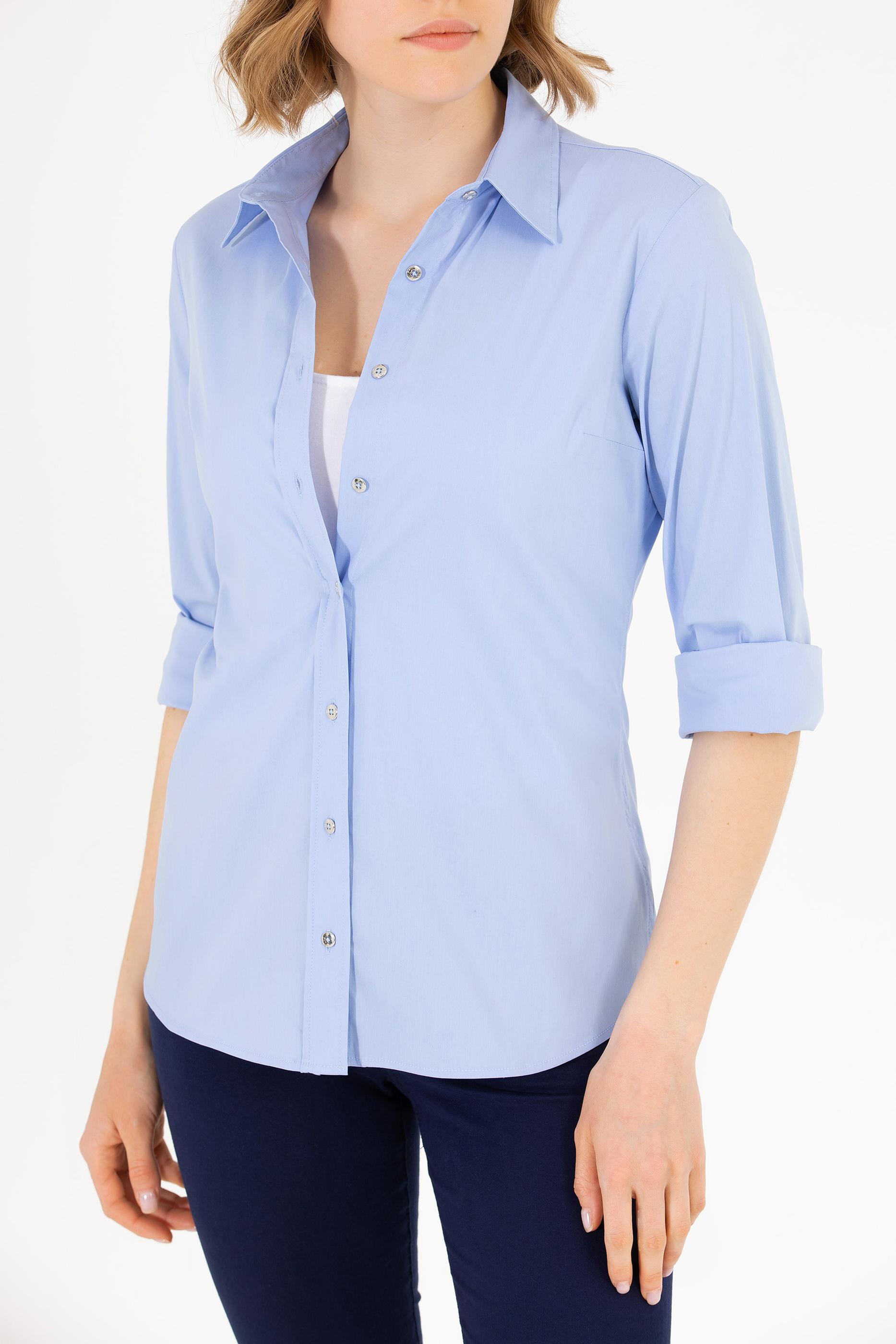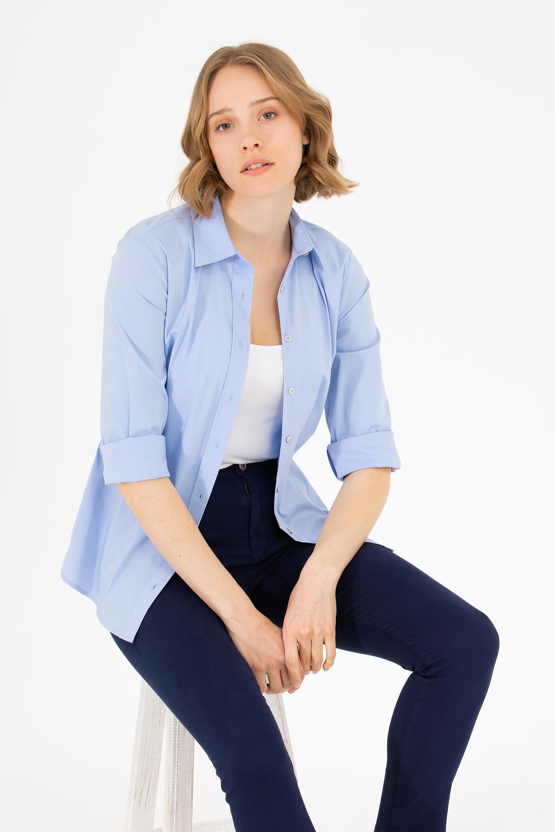 Kadın Mavi Uzun Kollu Basic Gömlek