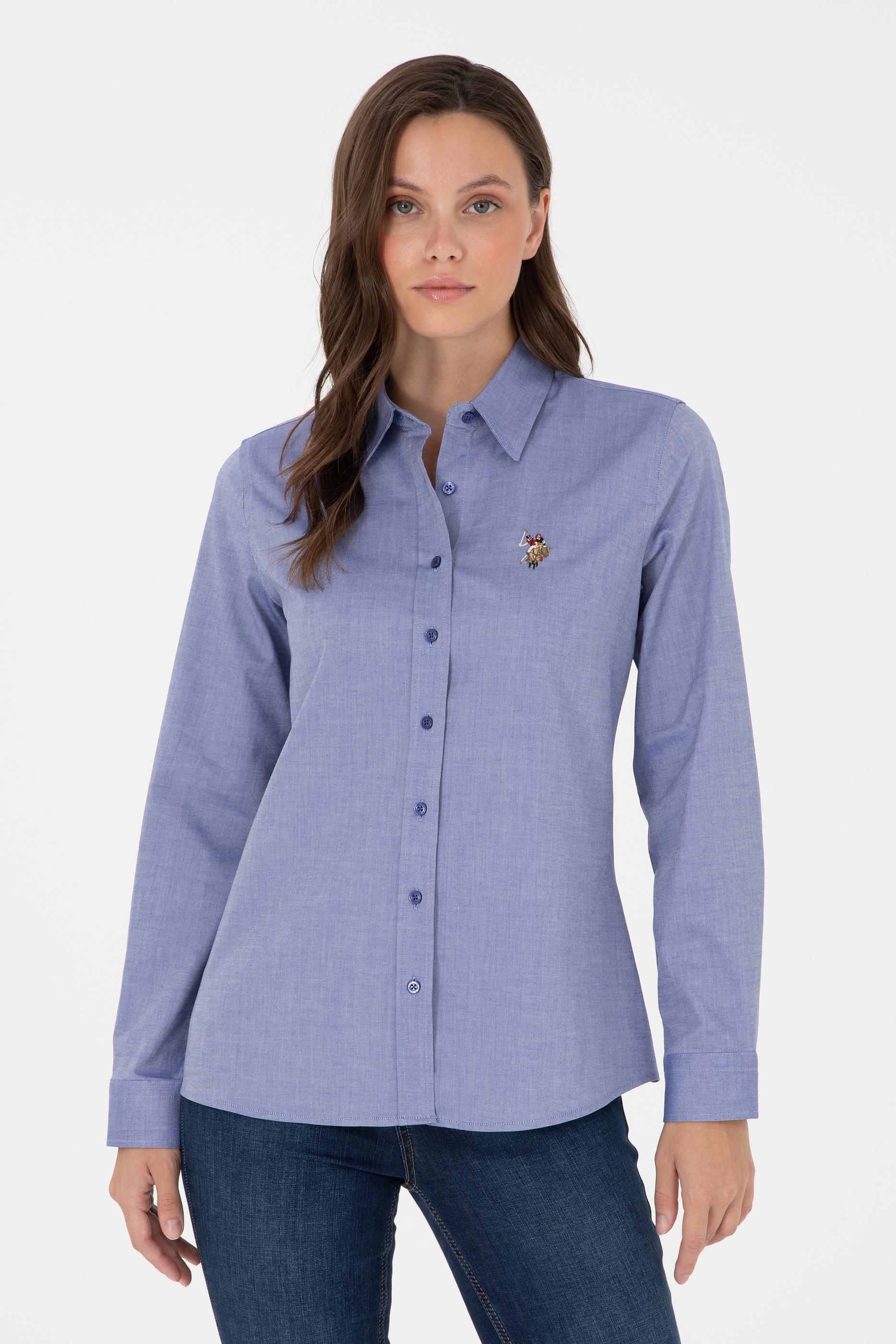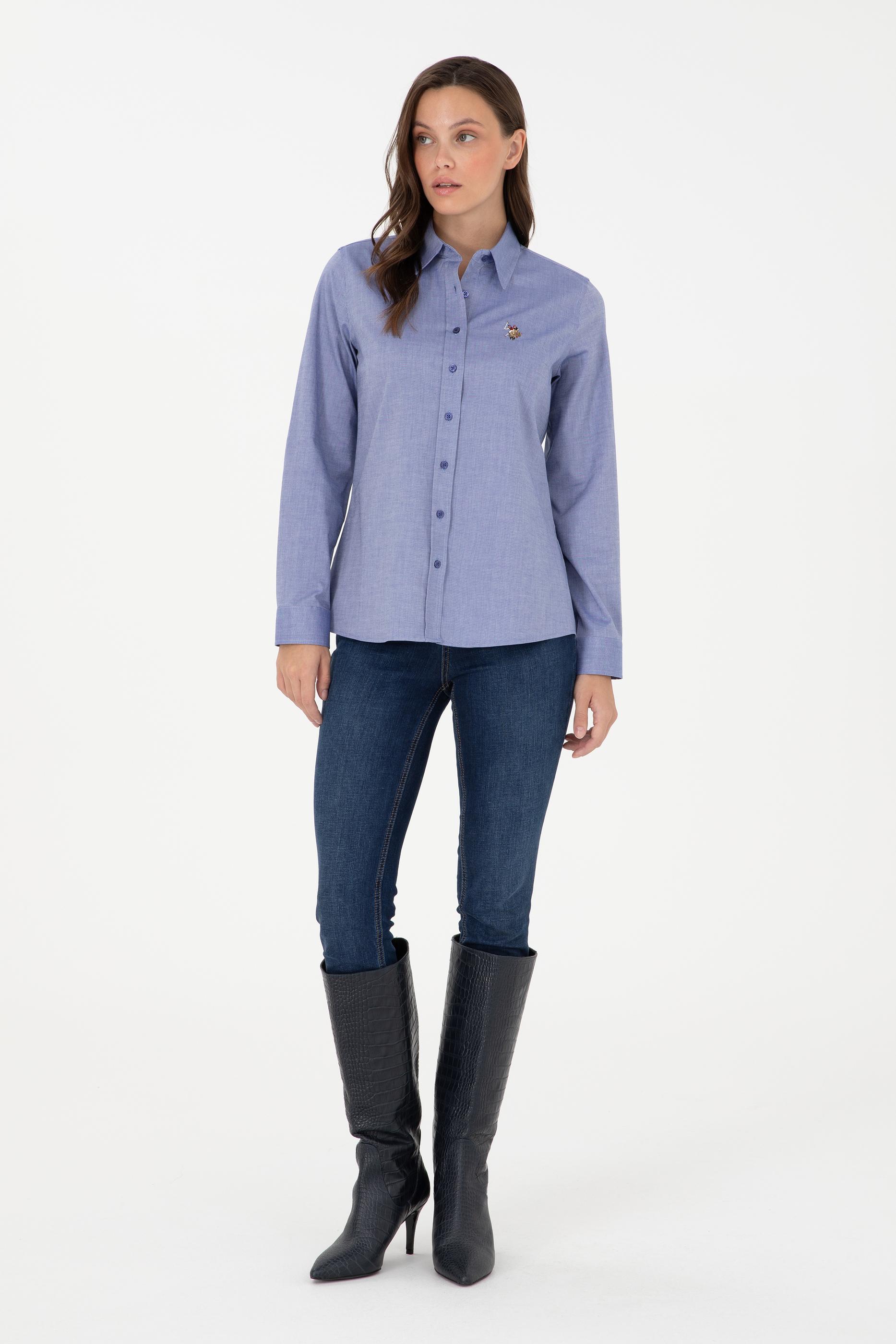 - Kadın Mavi Uzun Kollu Basic Gömlek
