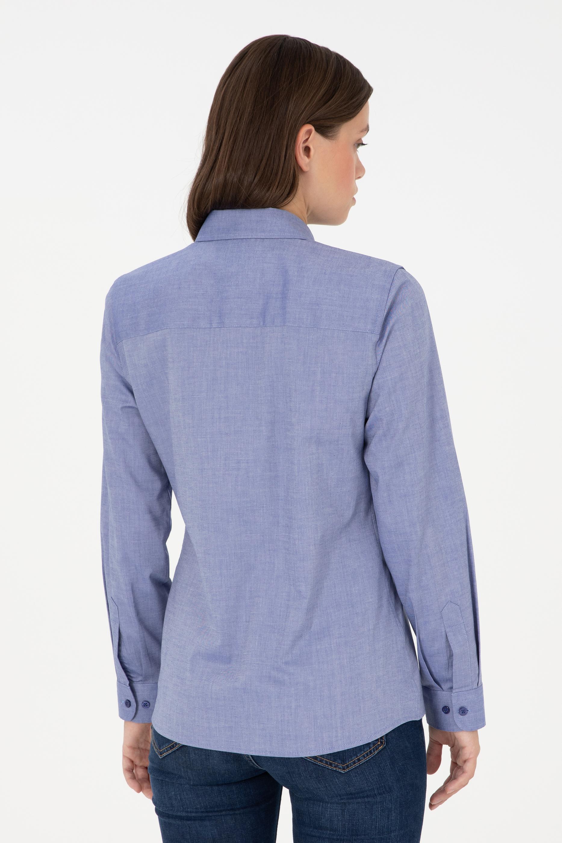Kadın Mavi Uzun Kollu Basic Gömlek