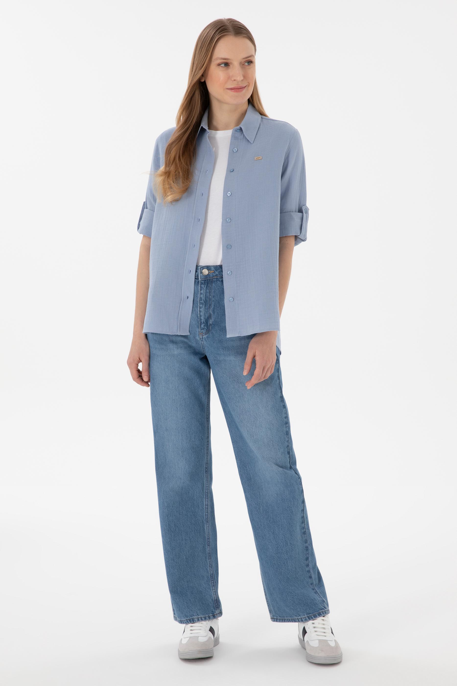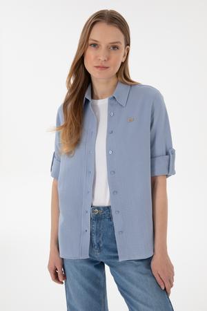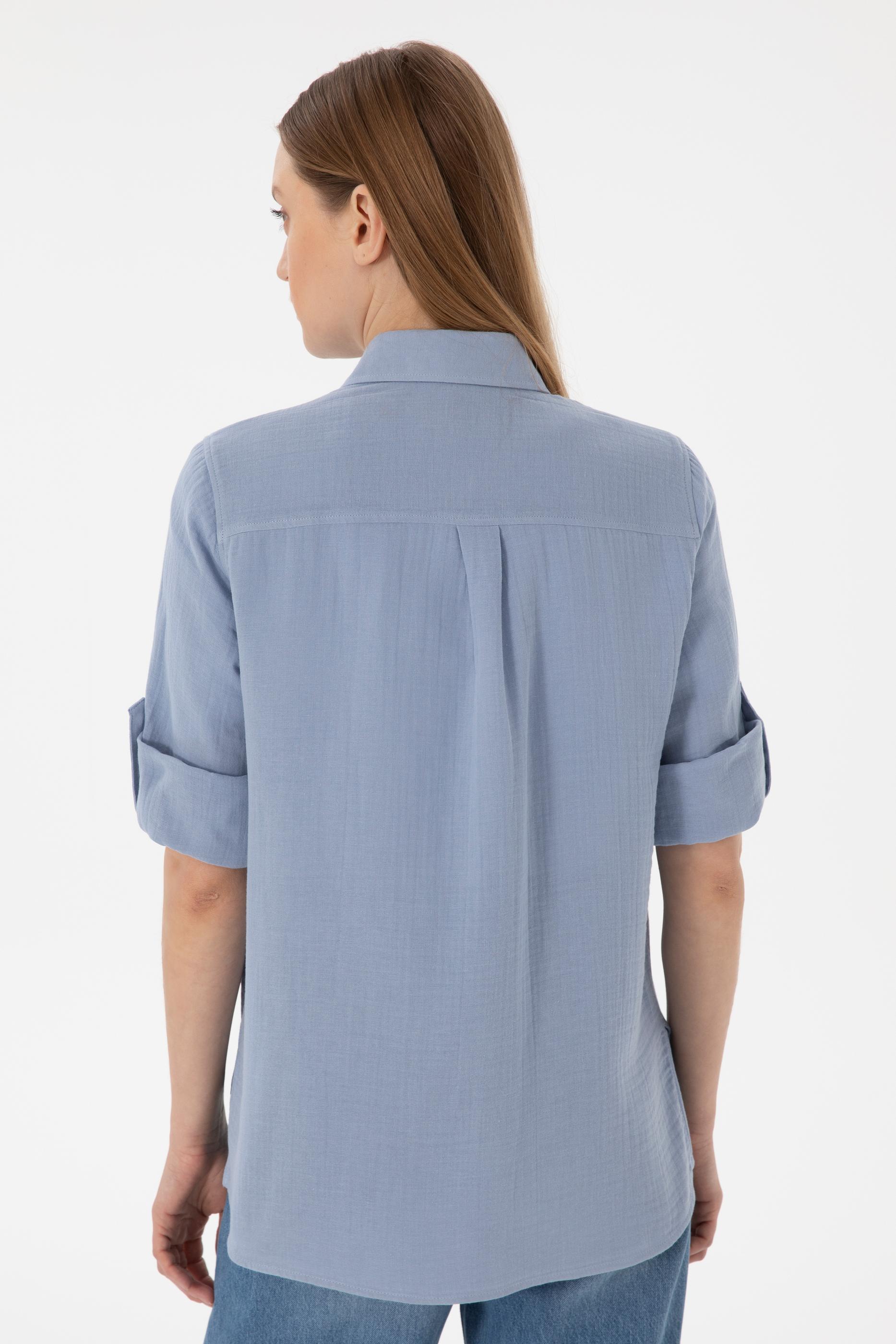 - Kadın Mavi Uzun Kollu Tunik Gömlek