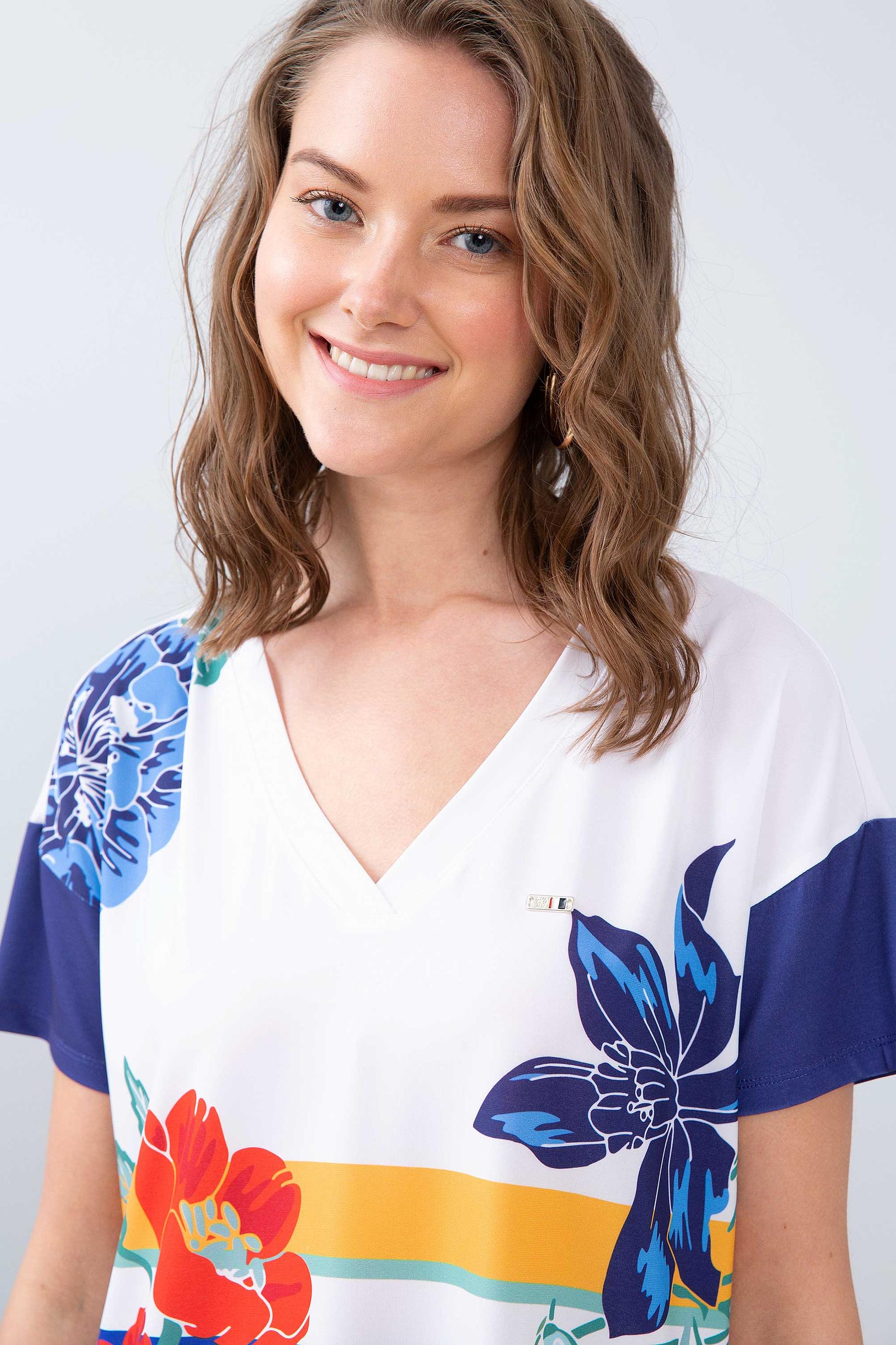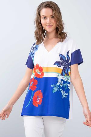 Kadın Mavi V - Yaka T-Shirt - 50202521014