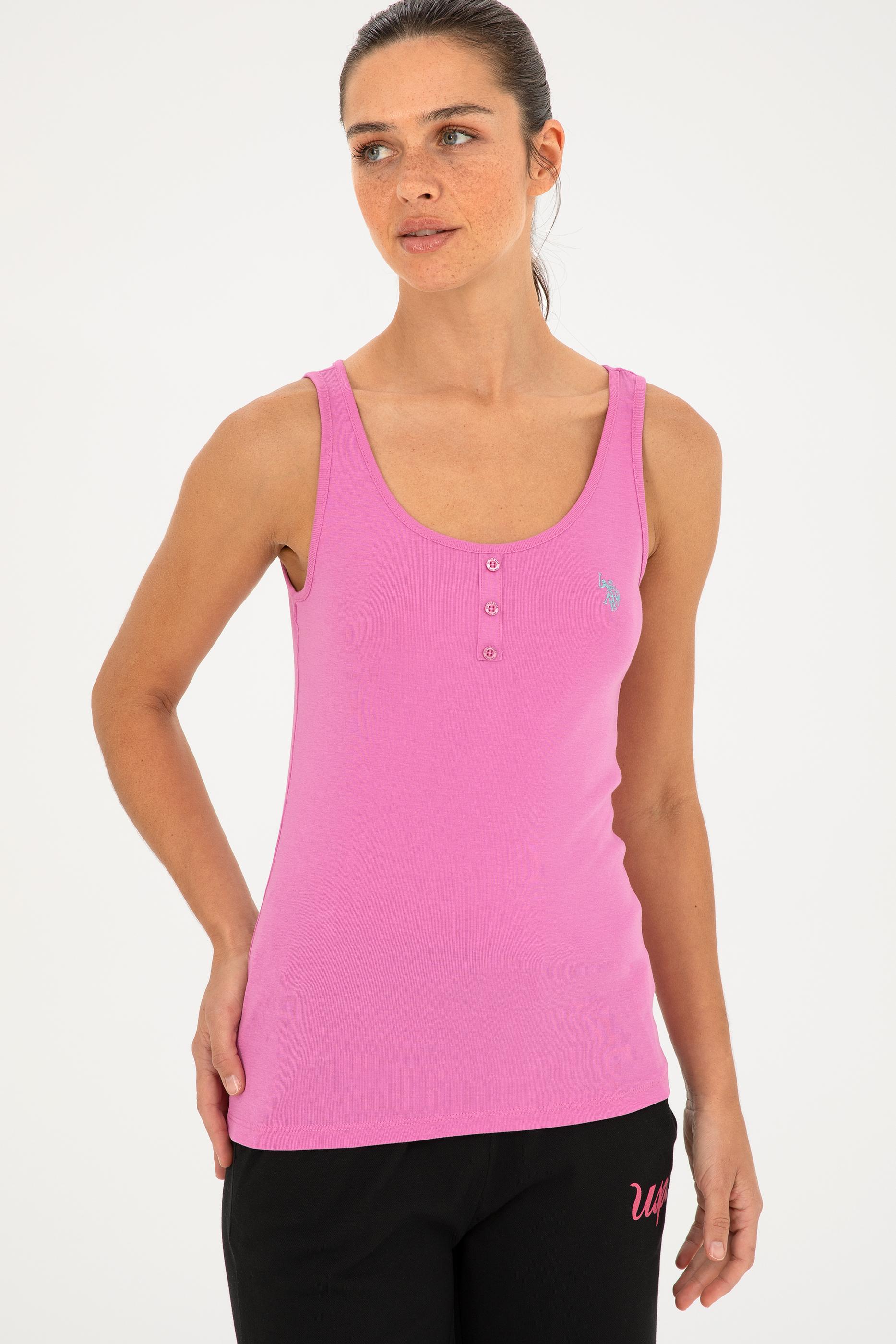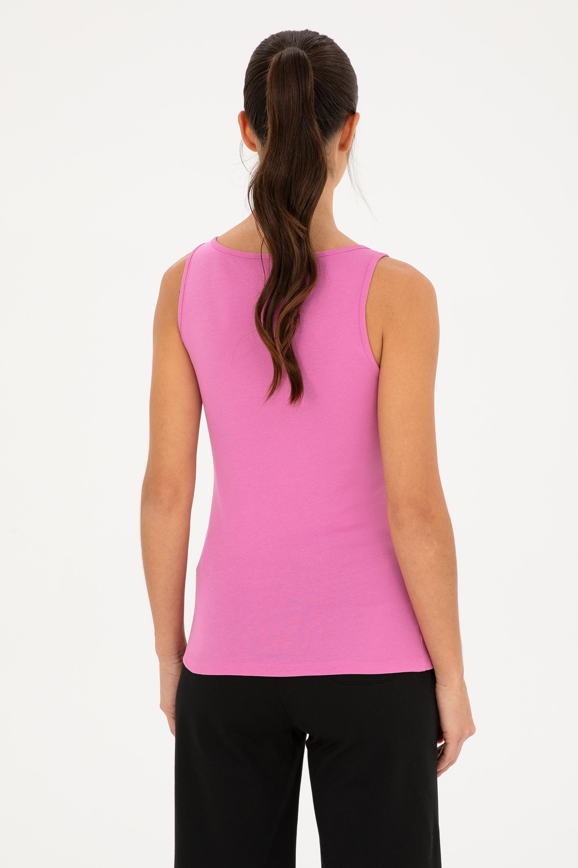 - Kadın Menekşe Bisiklet Yaka Kolsuz Basic Tişört