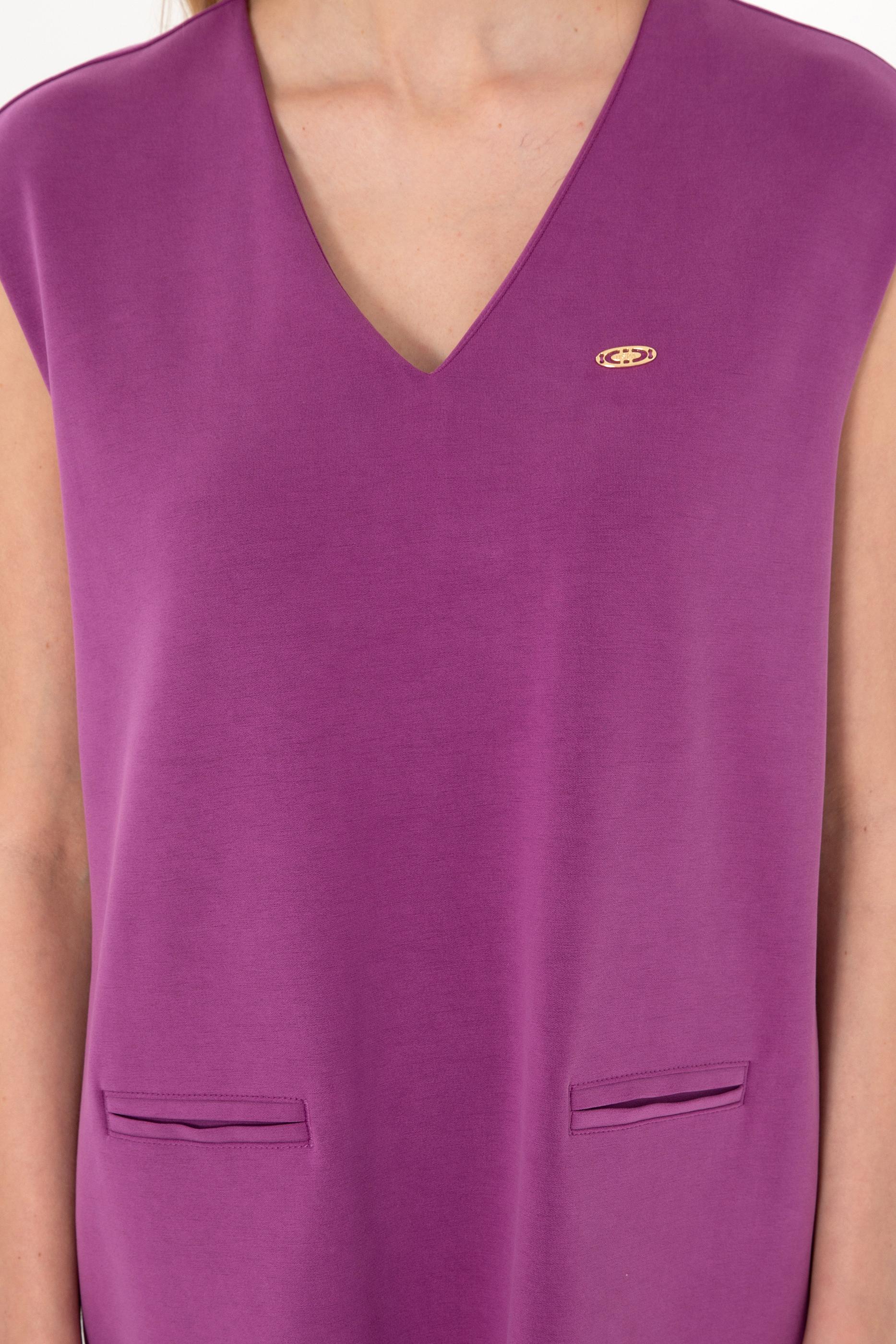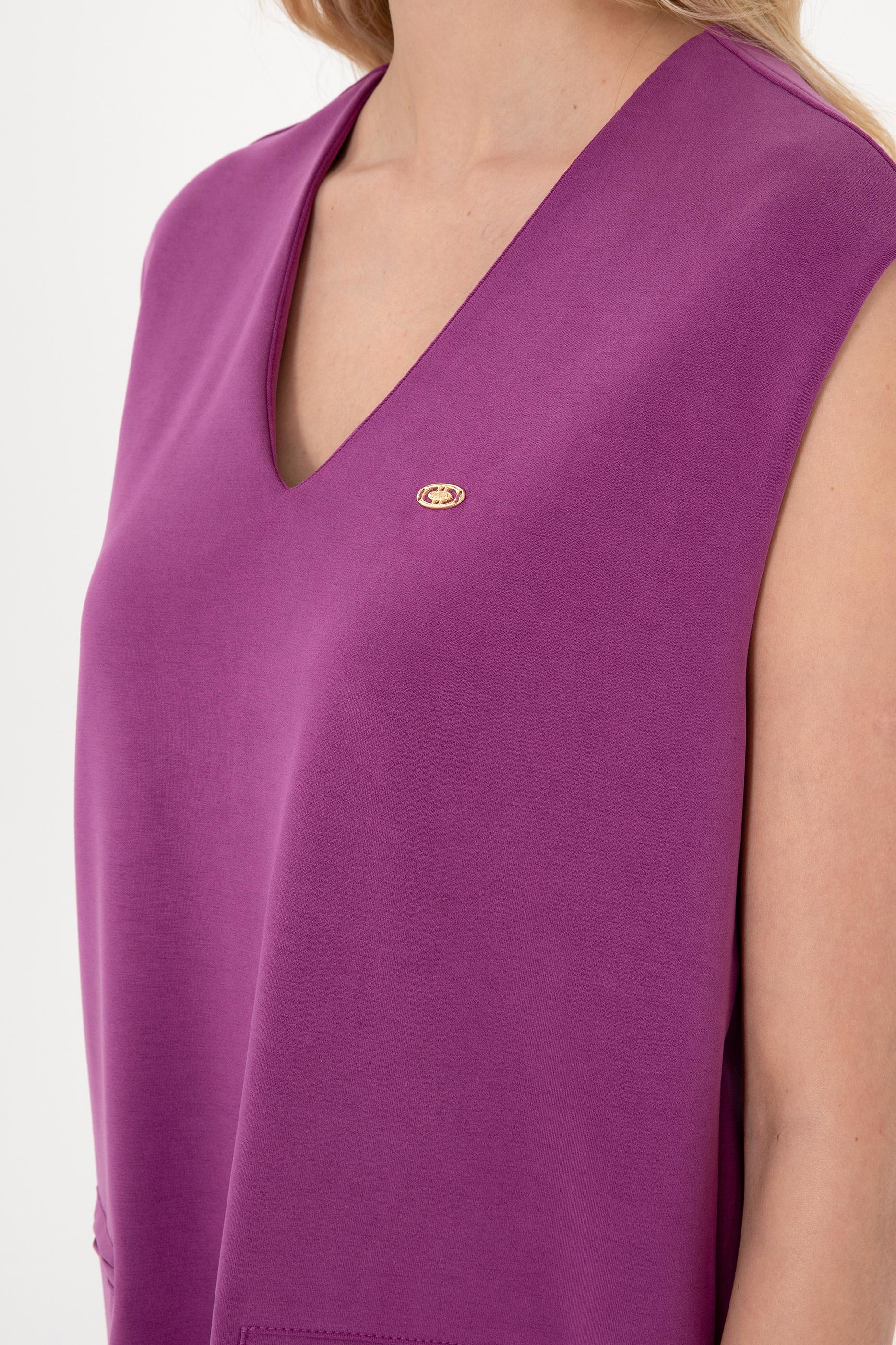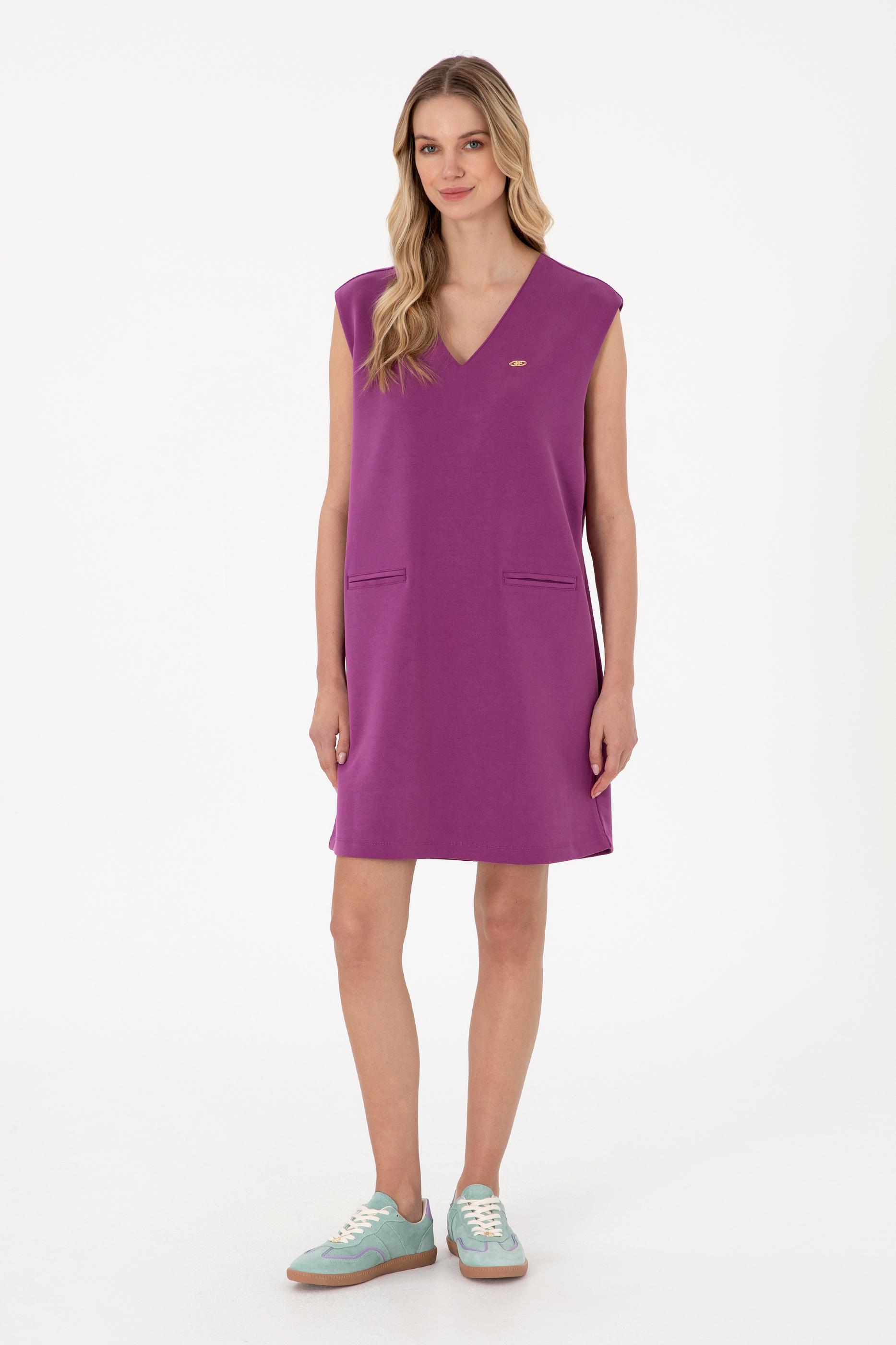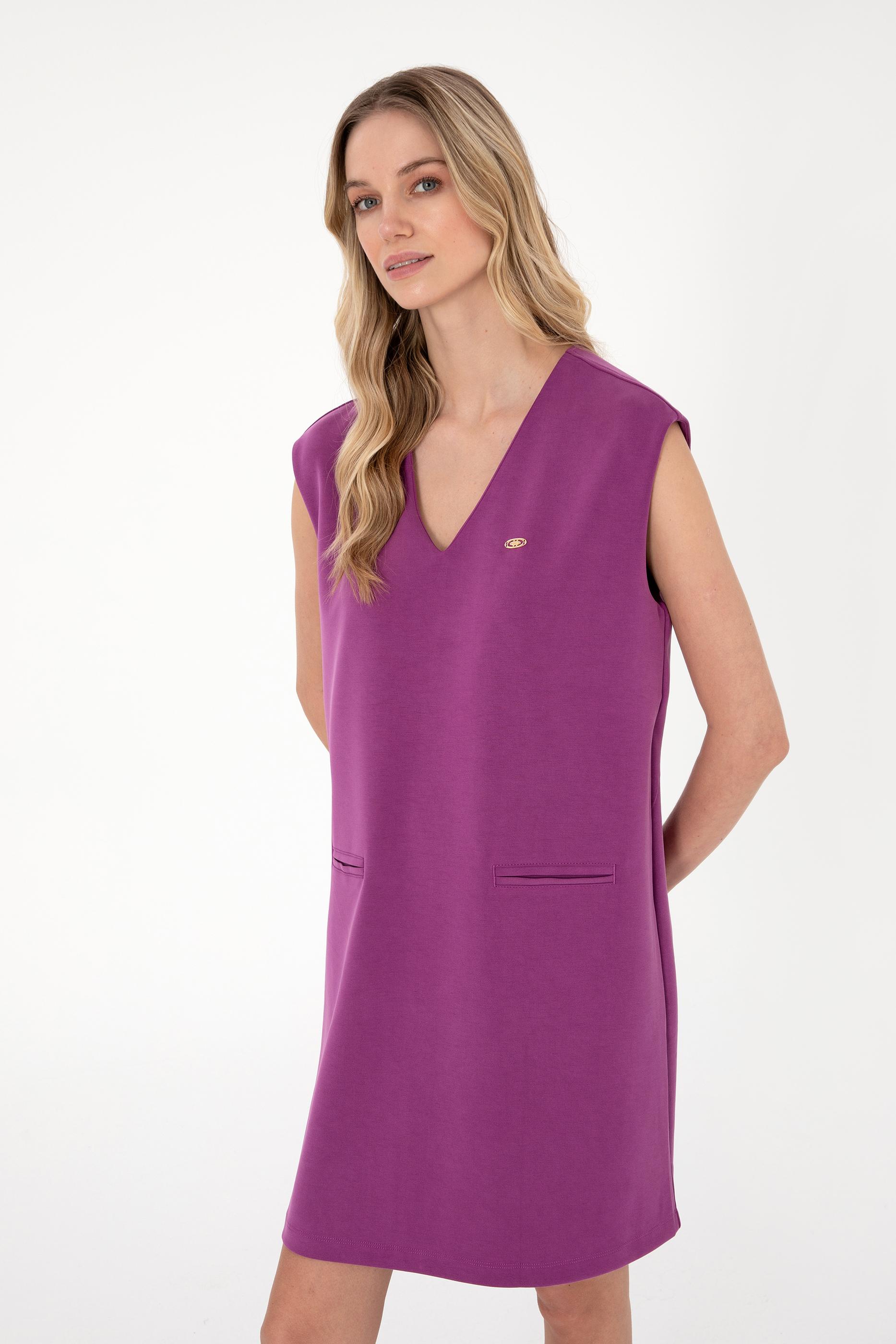 Kadın Menekşe Modal Karışımlı V Yaka Mini Boy Örme Elbise