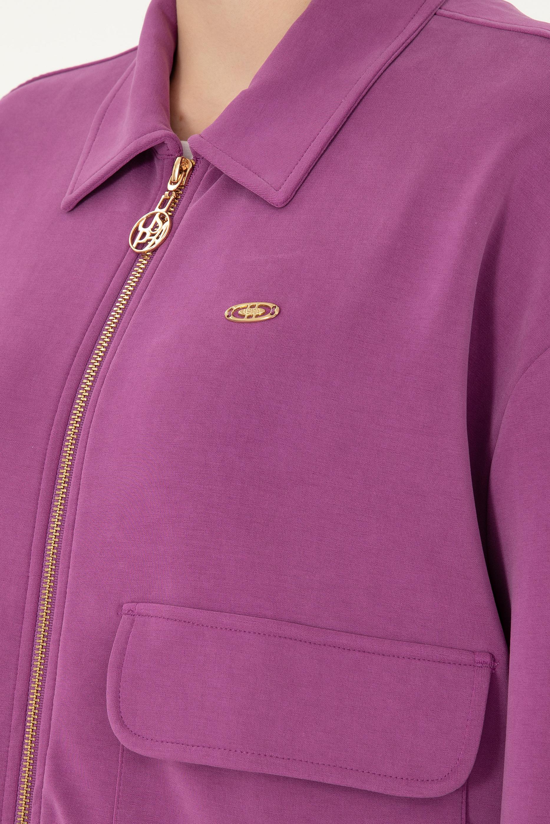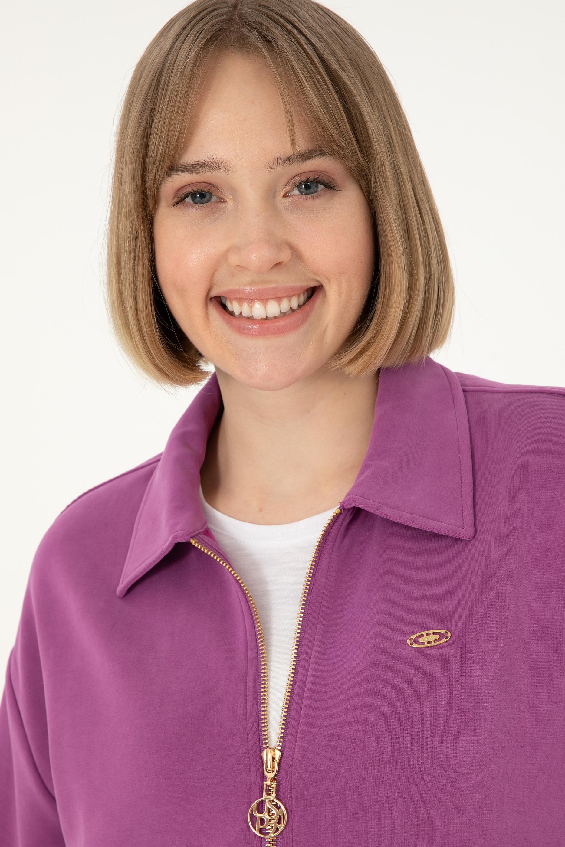 Kadın Menekşe Modal Karışımlı Fermuarlı Polo Yaka Sweatshirt