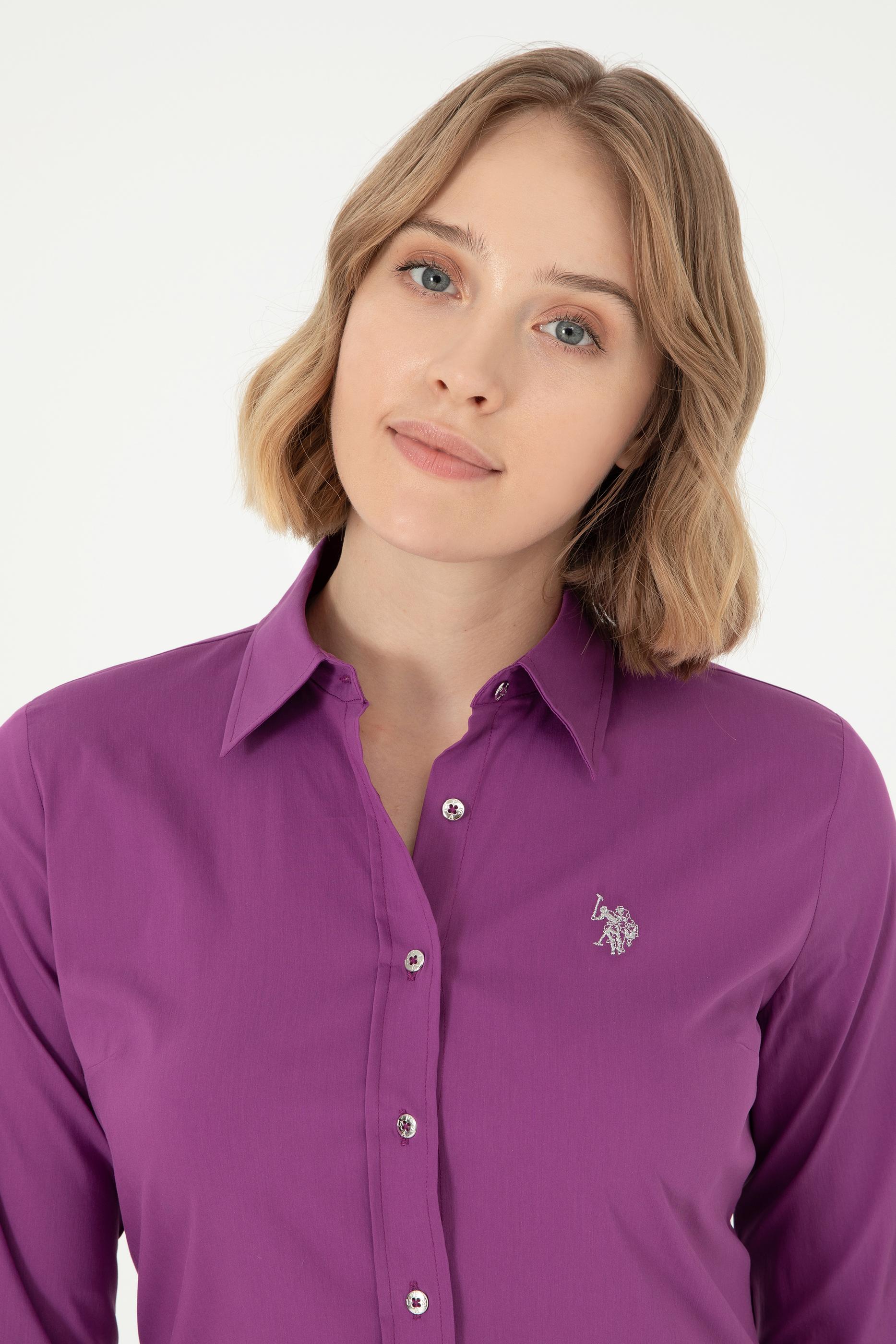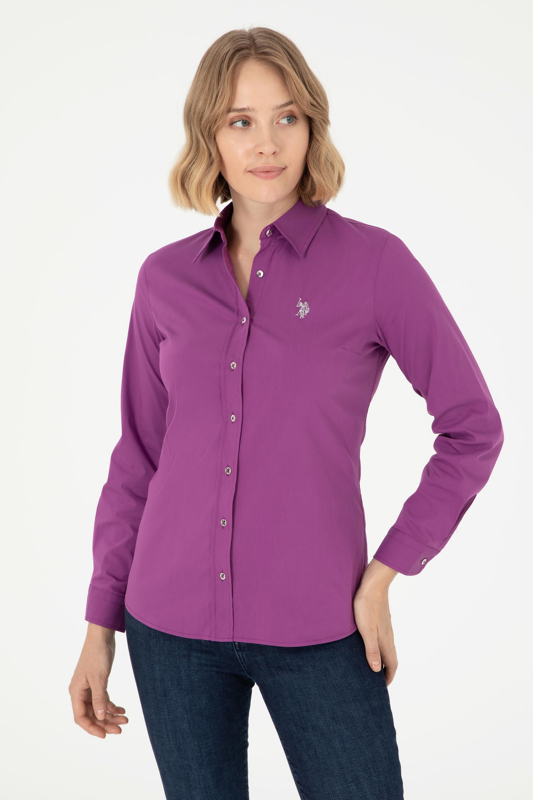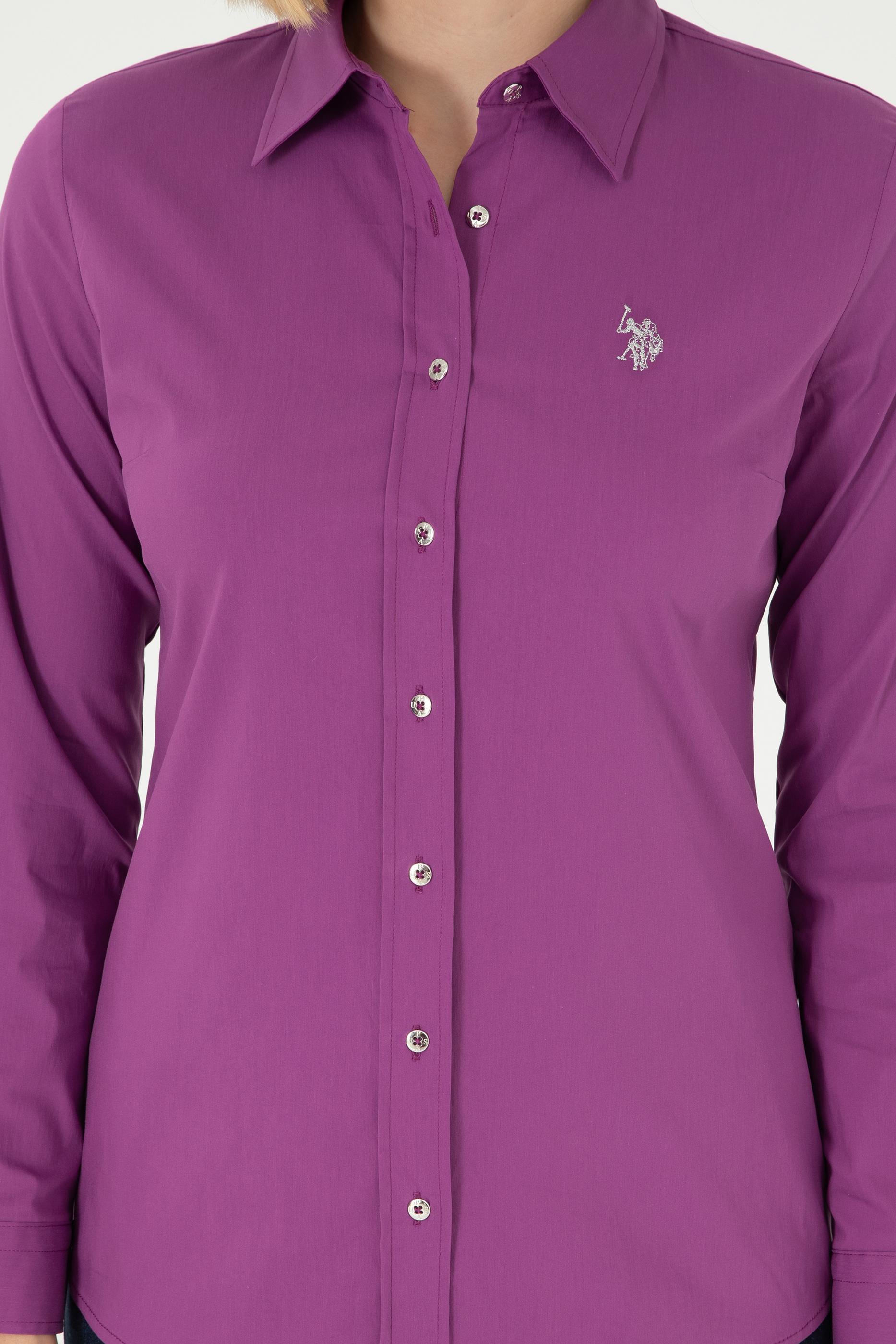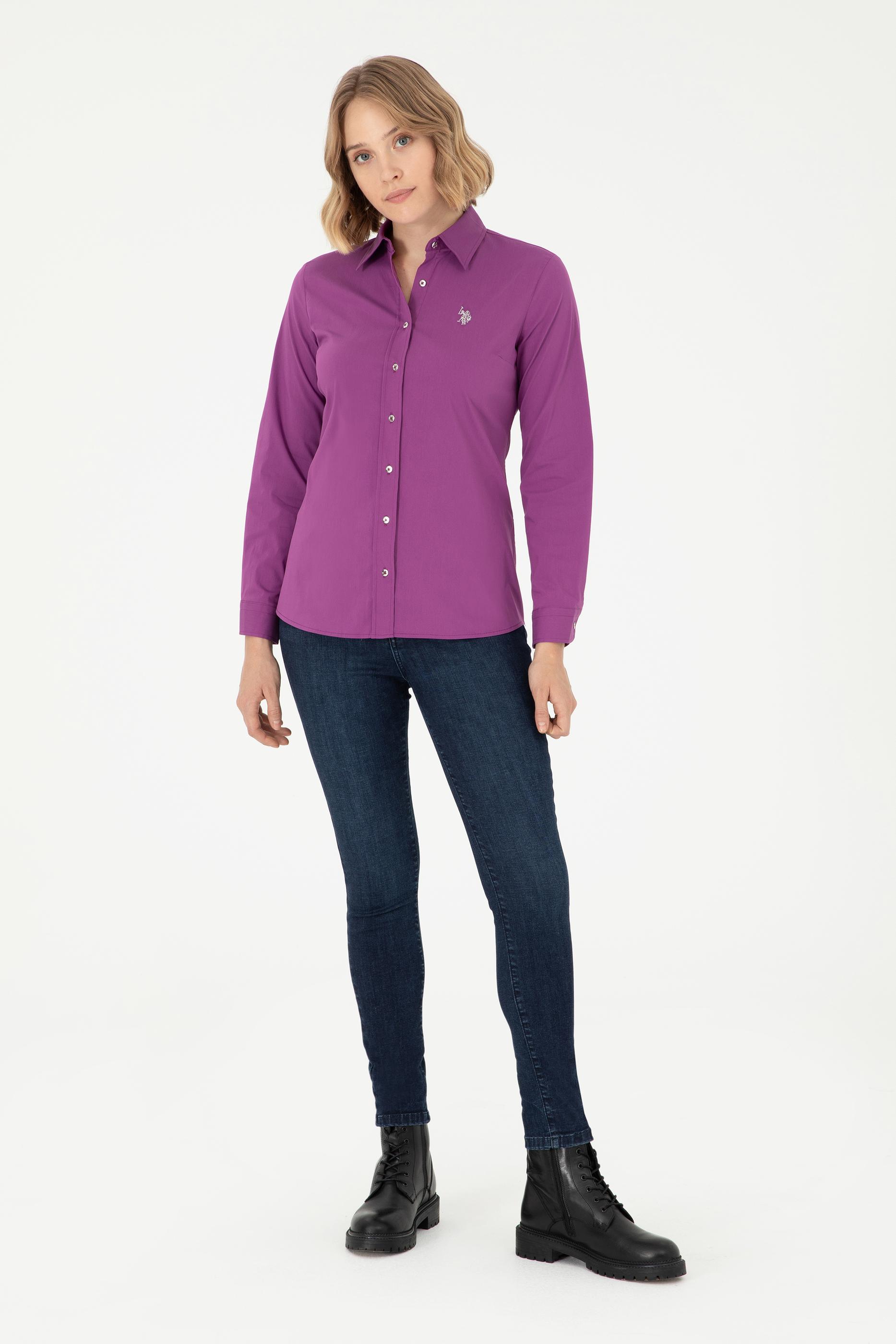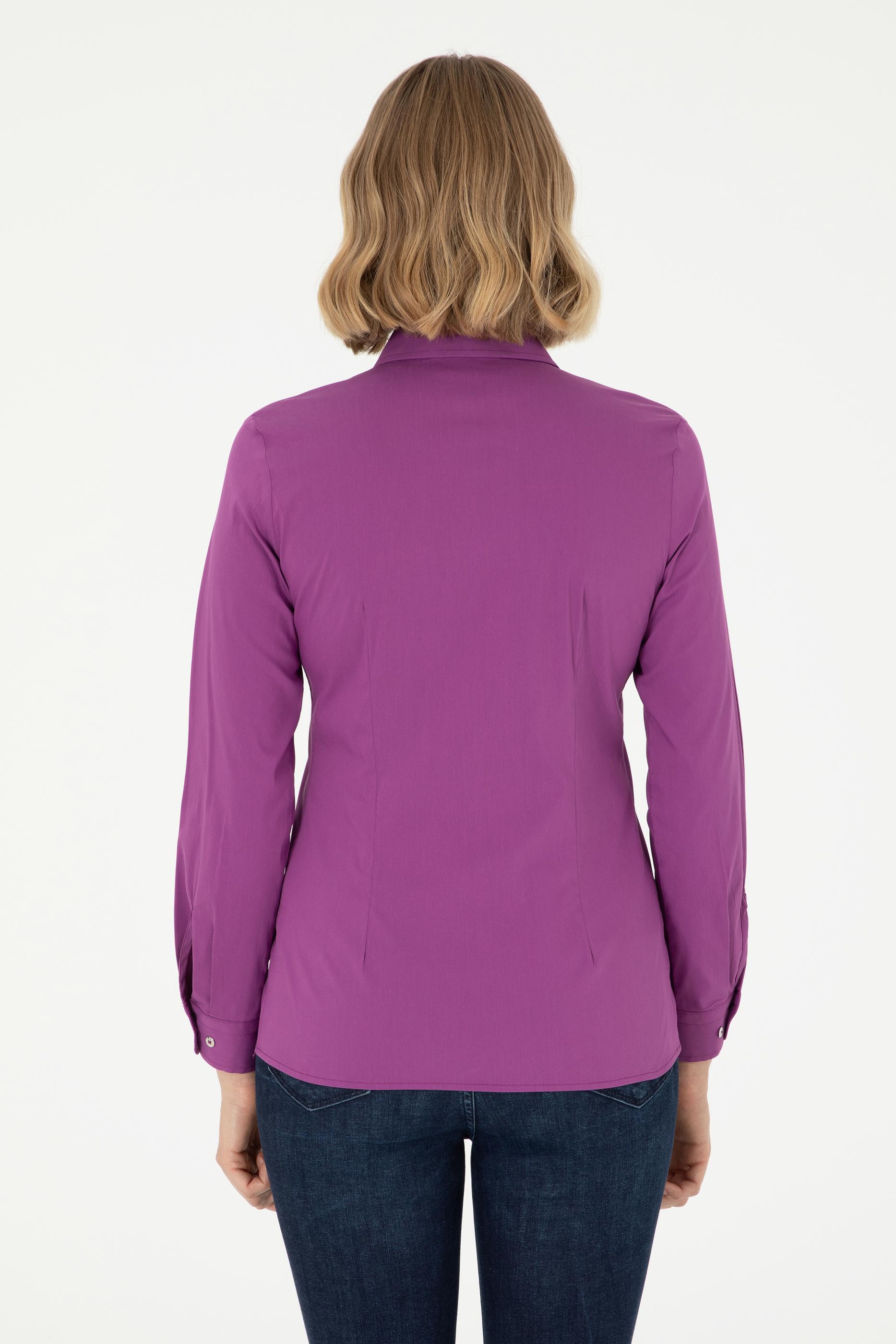 Kadın Menekşe Uzun Kollu Basic Gömlek