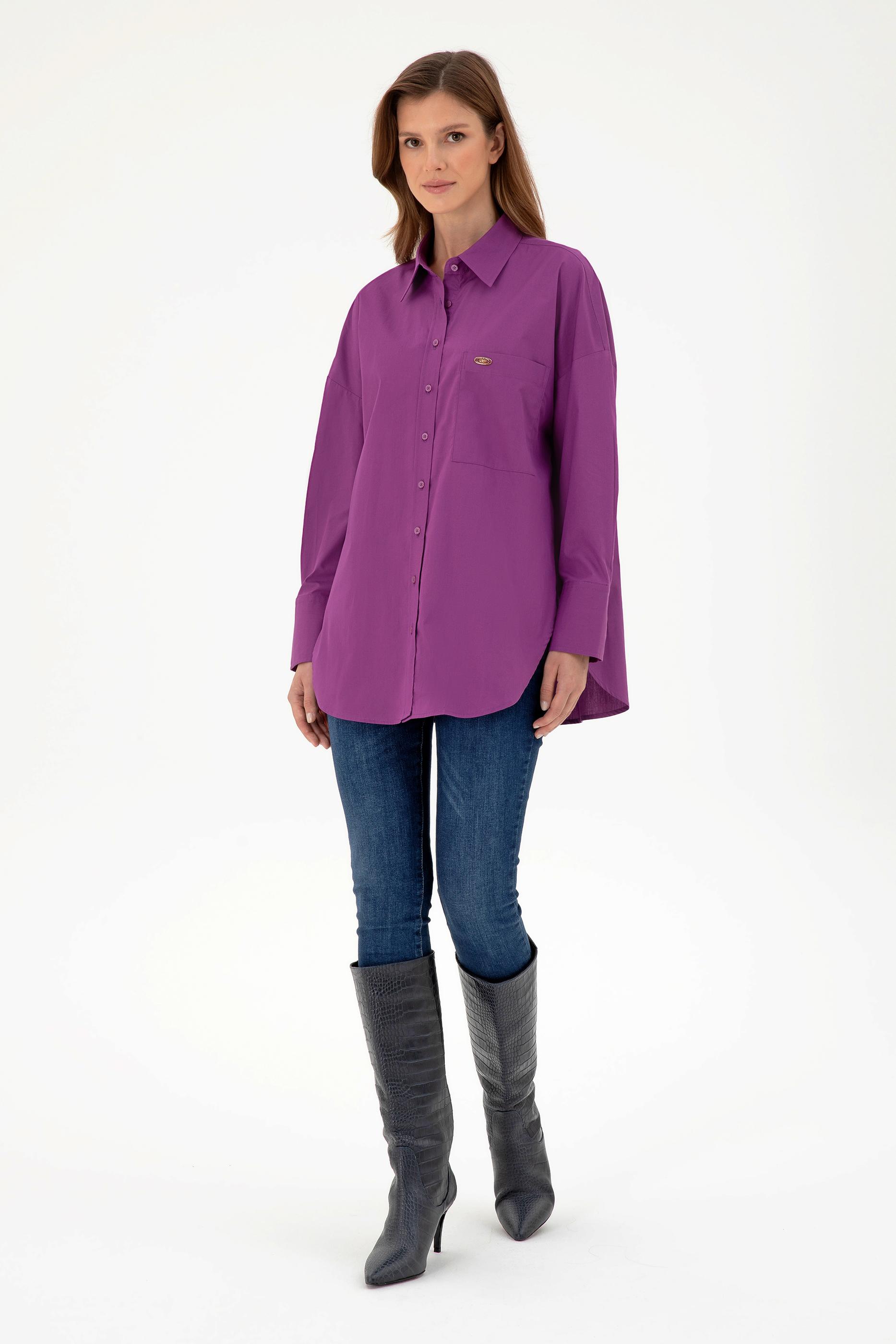 Kadın Menekşe Uzun Kollu Tunik Gömlek