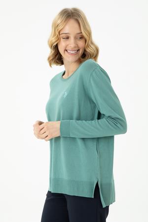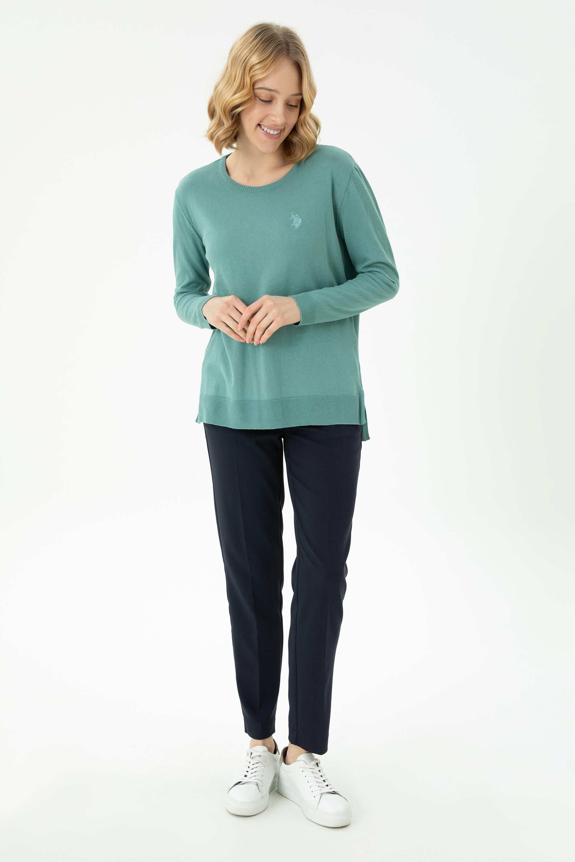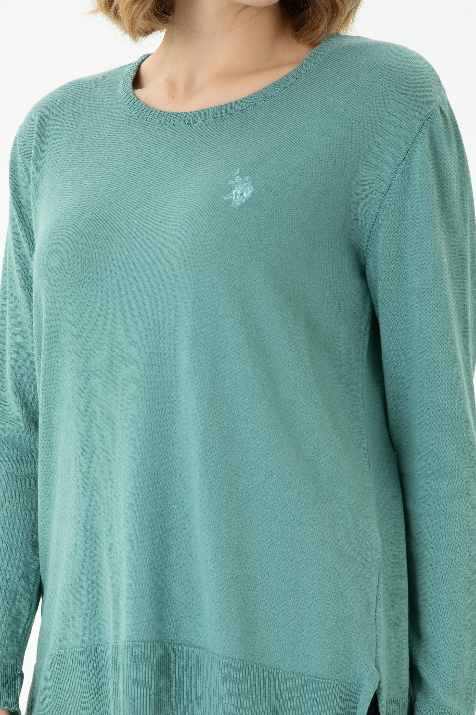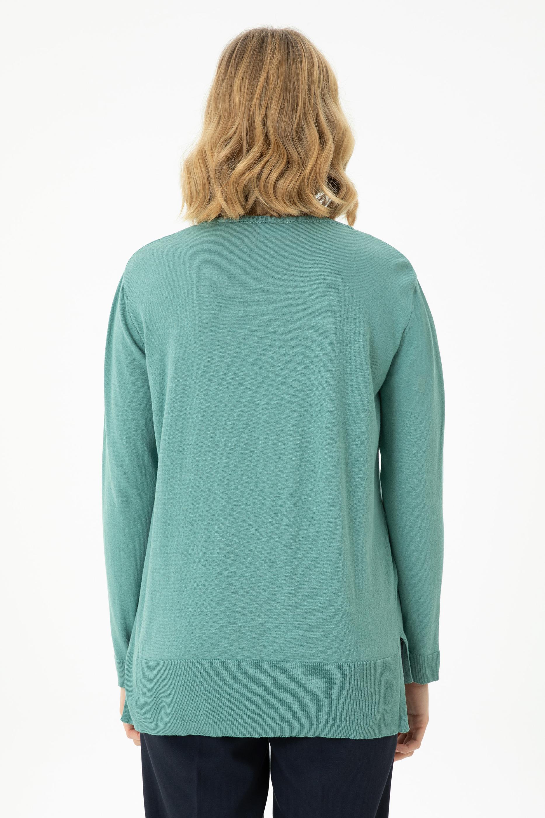 Kadın Mint Bisiklet Yaka Basic Kazak