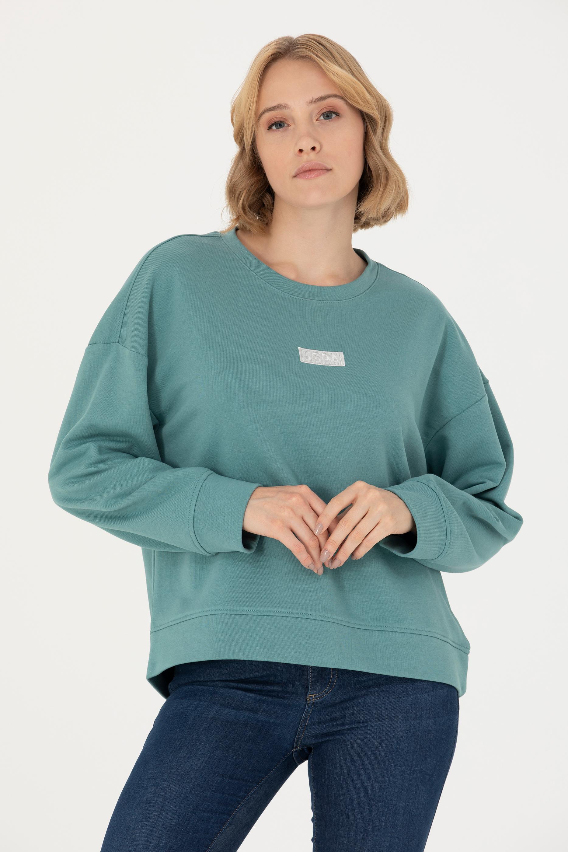 - Kadın Mint Bisiklet Yaka Basic Sweatshirt