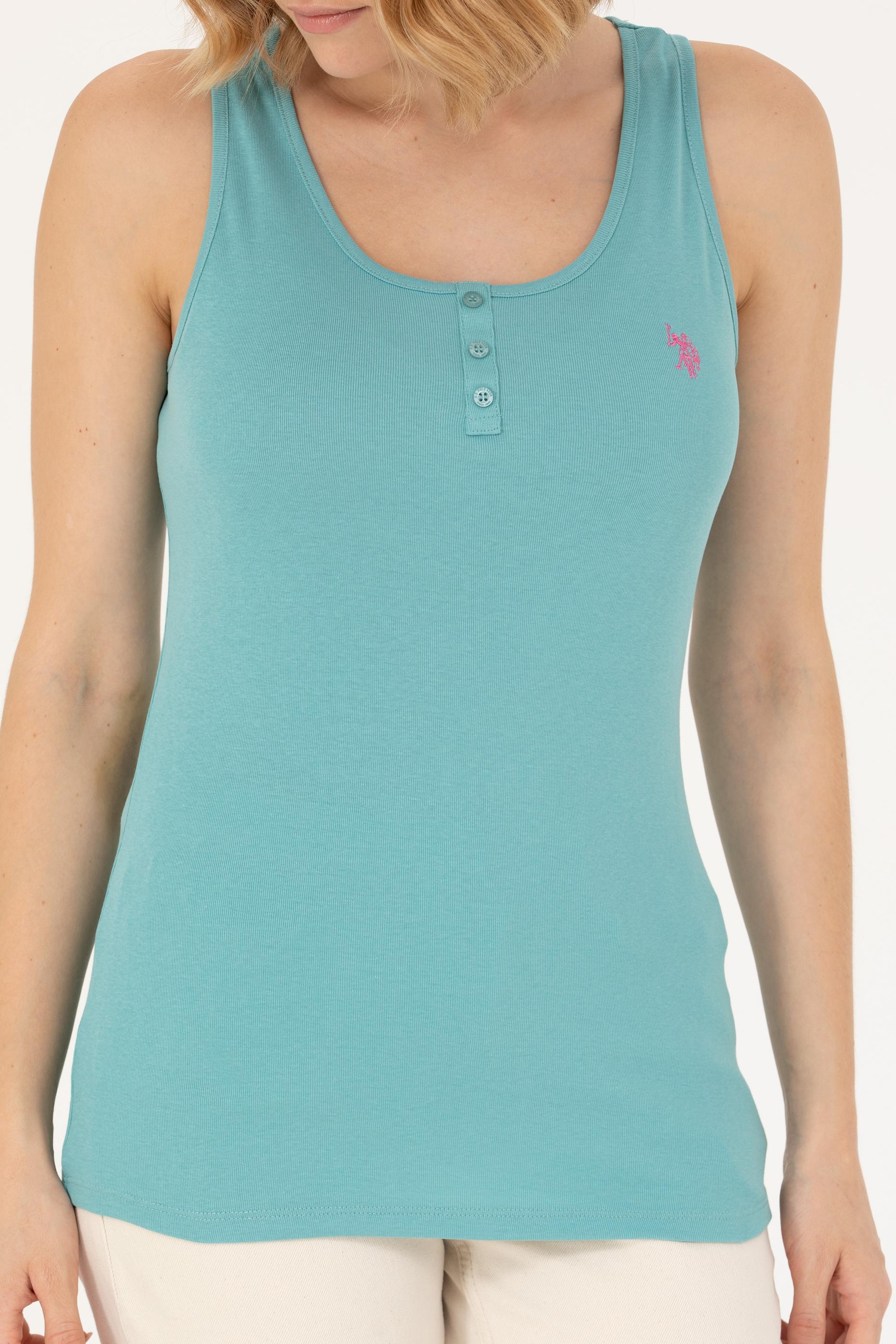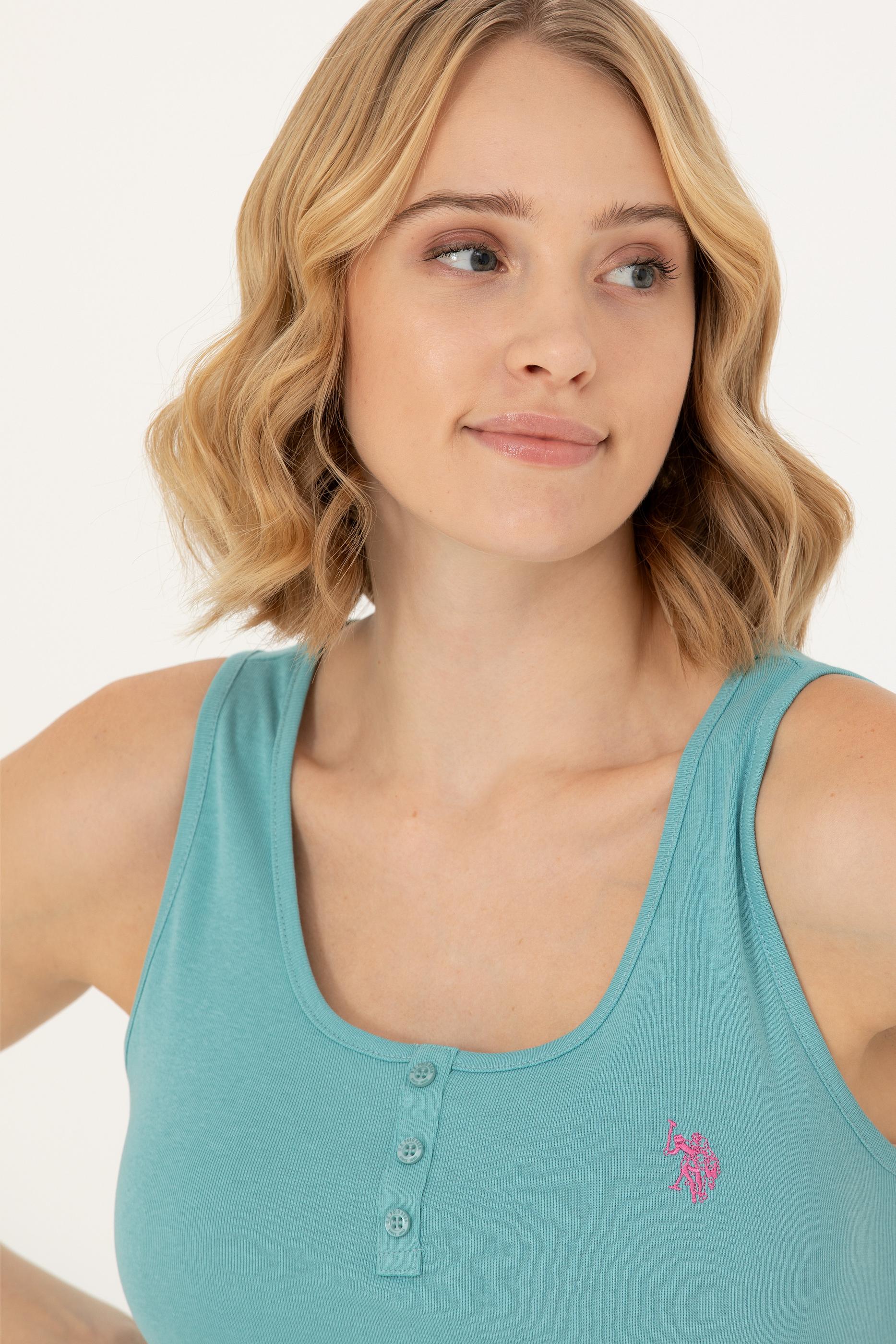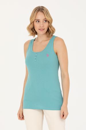 Kadın Mint Bisiklet Yaka Kolsuz Basic Tişört