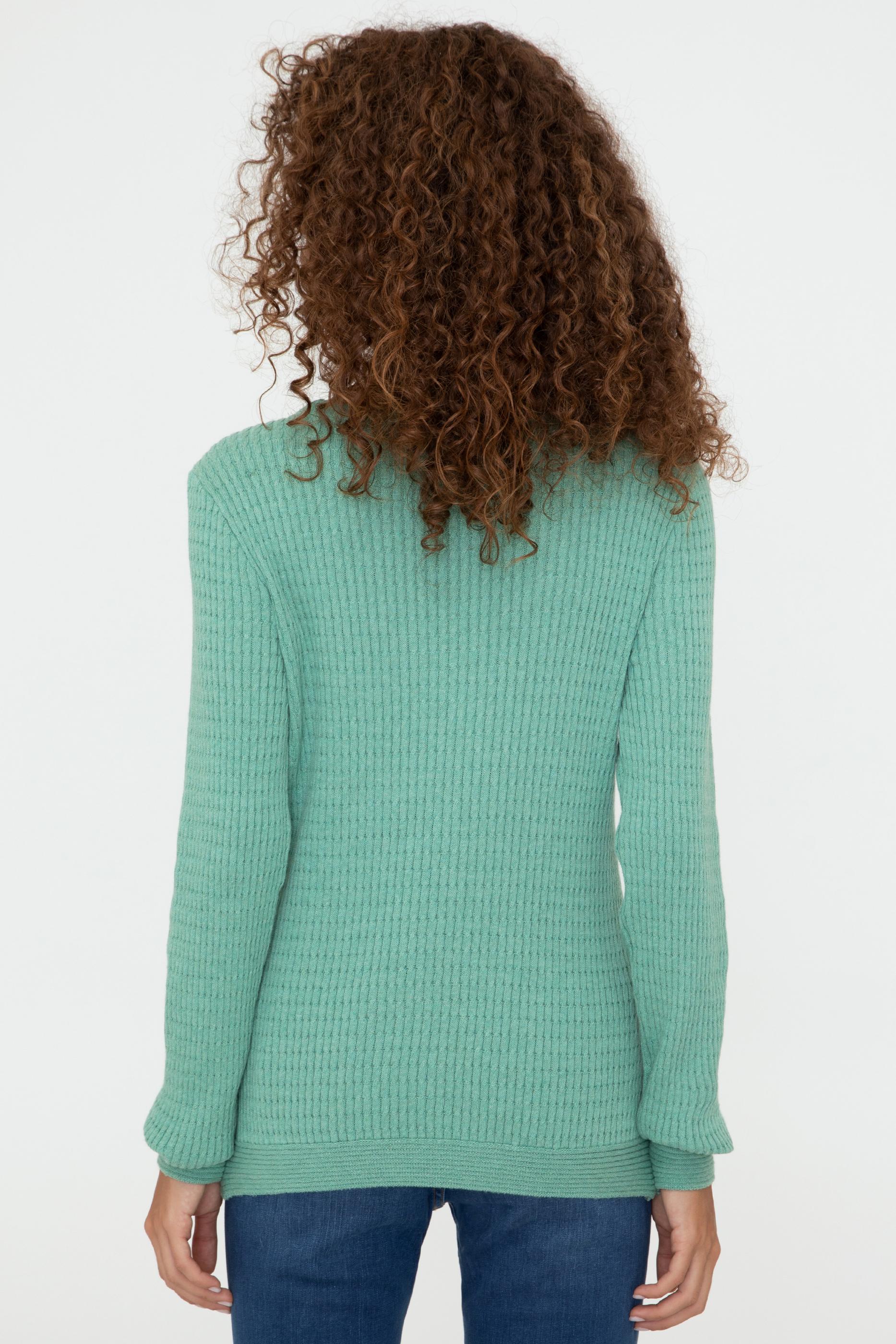 Kadın Mint Melanj Basic Bisiklet Yaka Kazak