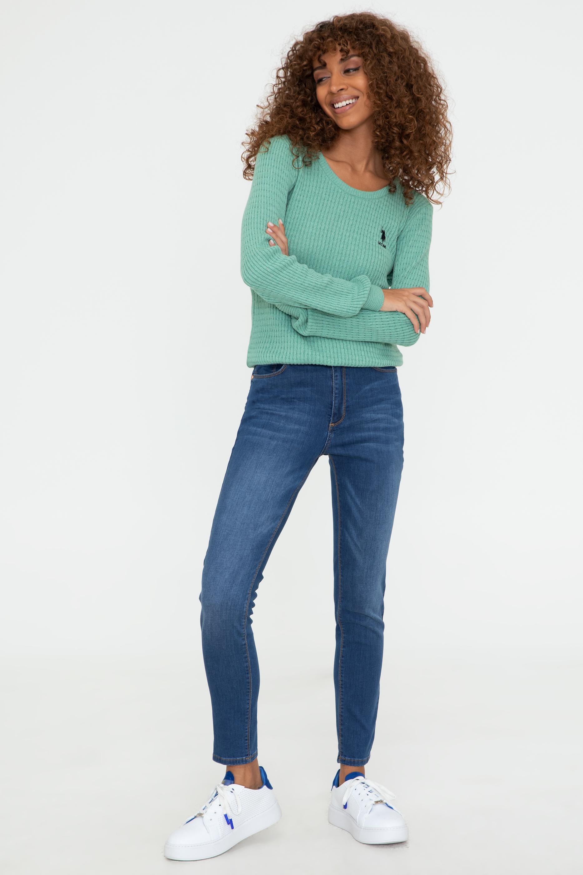 %100 pamuk karışımlı yapısı sayesinde terlemeyi kontrol altına alan kadın triko kazak modelimiz sağlıklı bir kıyafet deneyimi sunar.
