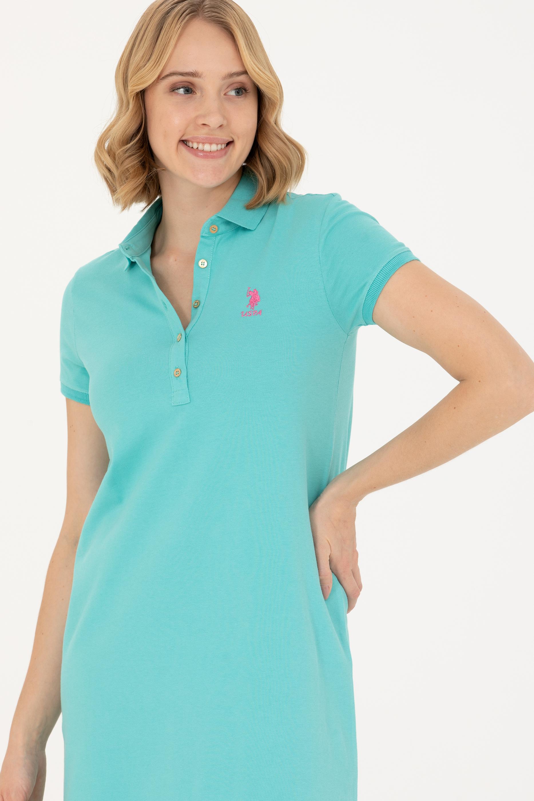 Kadın Mint Polo Yaka Mini Boy Örme Elbise