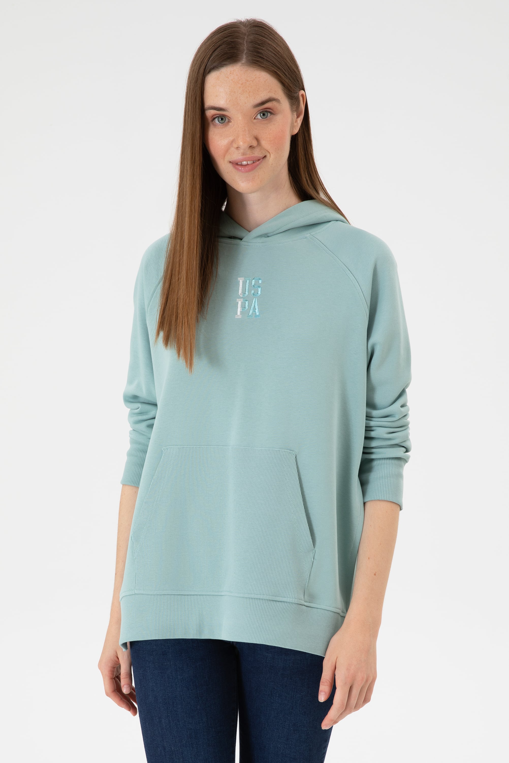 - Kadın Mint Yırtmaçlı Kapüşonlu Sweatshırt