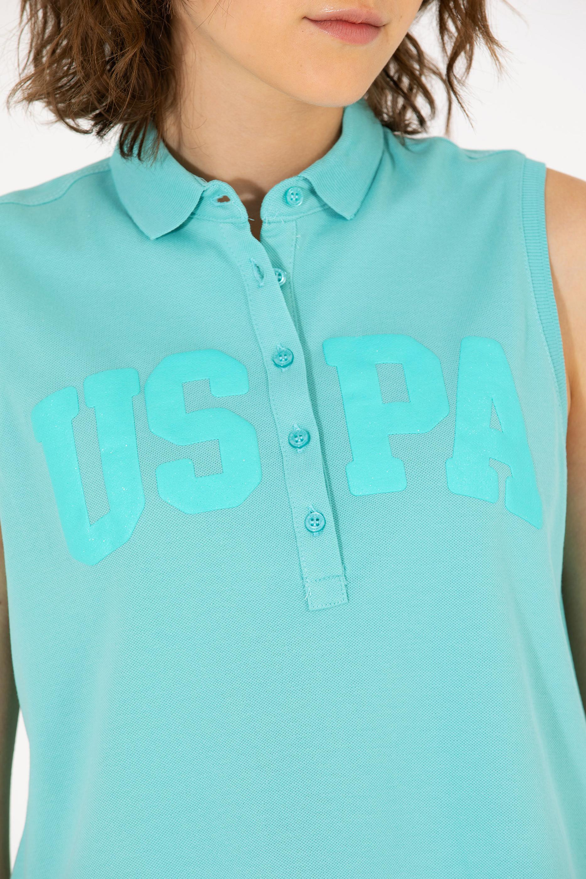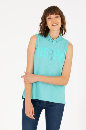 Kadın Mint Kolsuz Polo Yaka Tişört