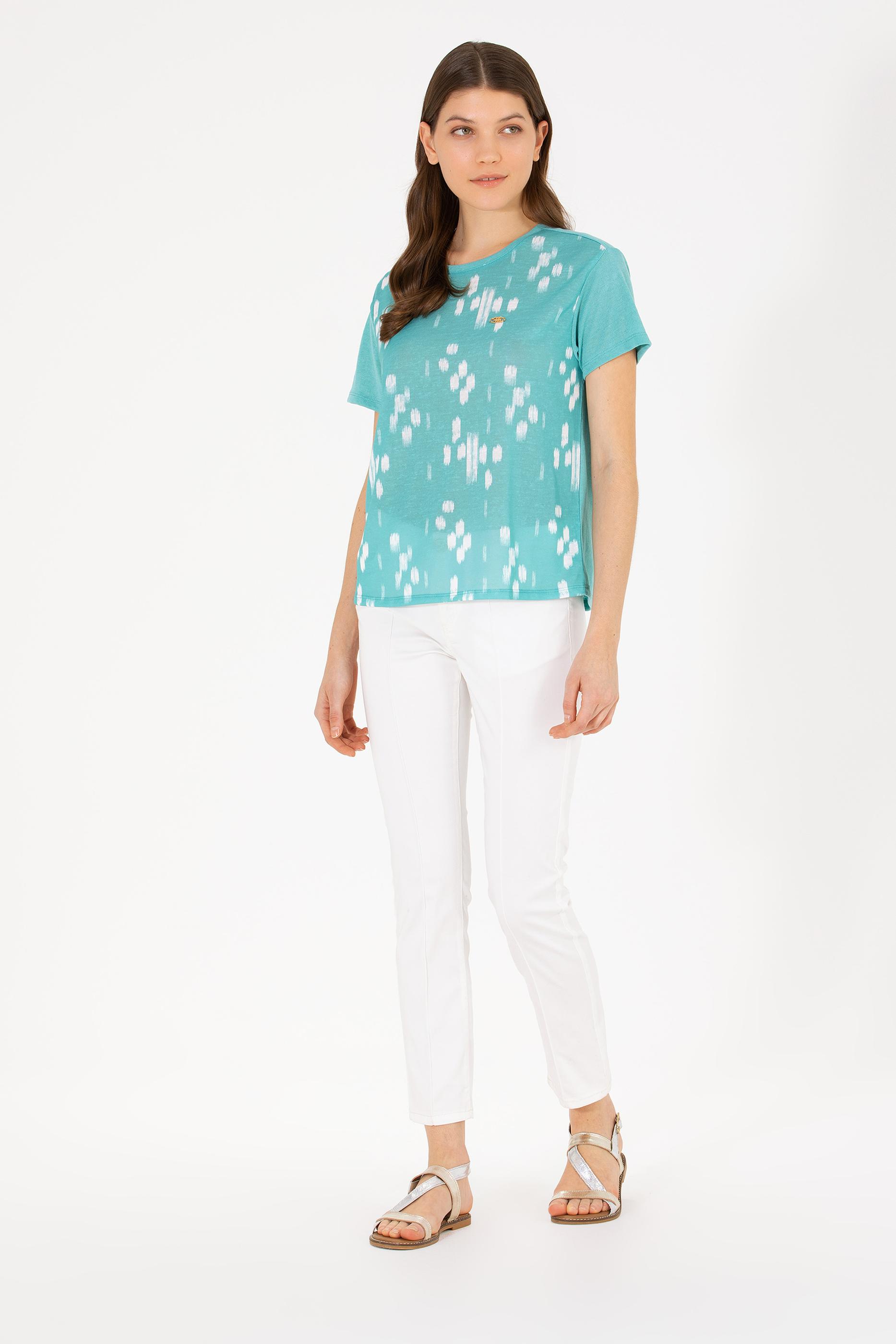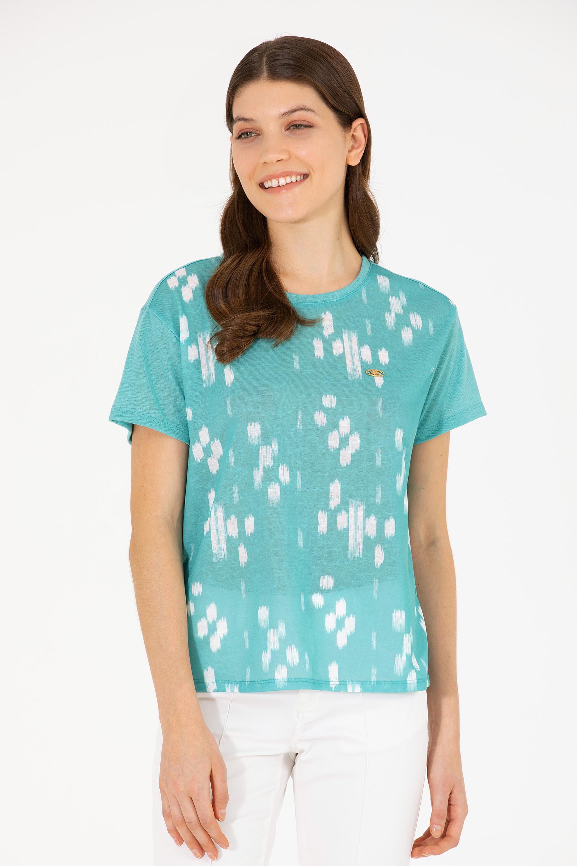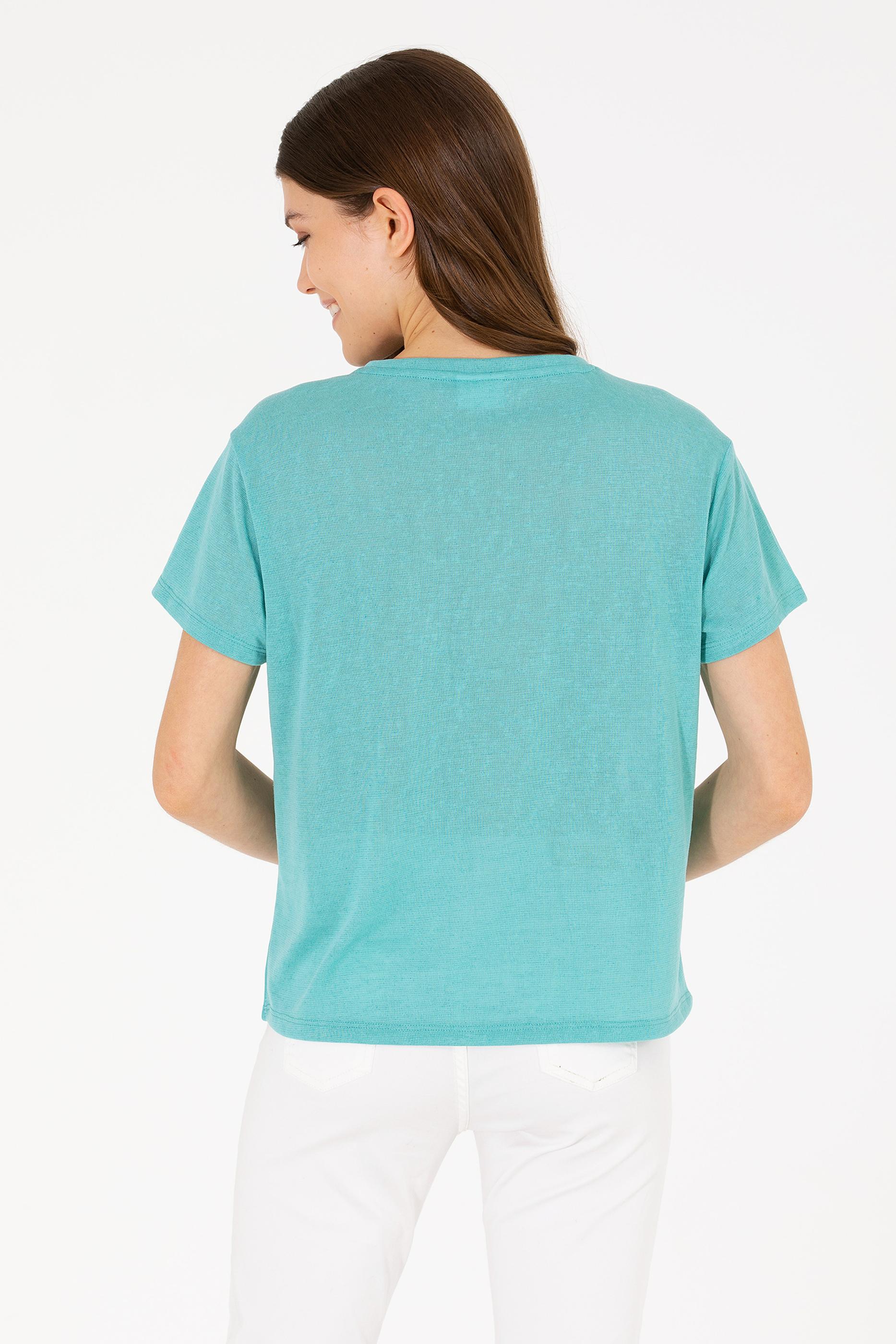 Kadın Mint Bisiklet Yaka Tişört