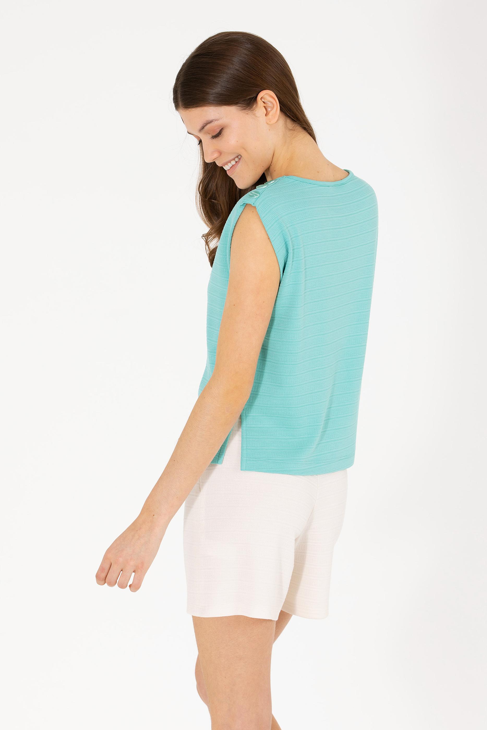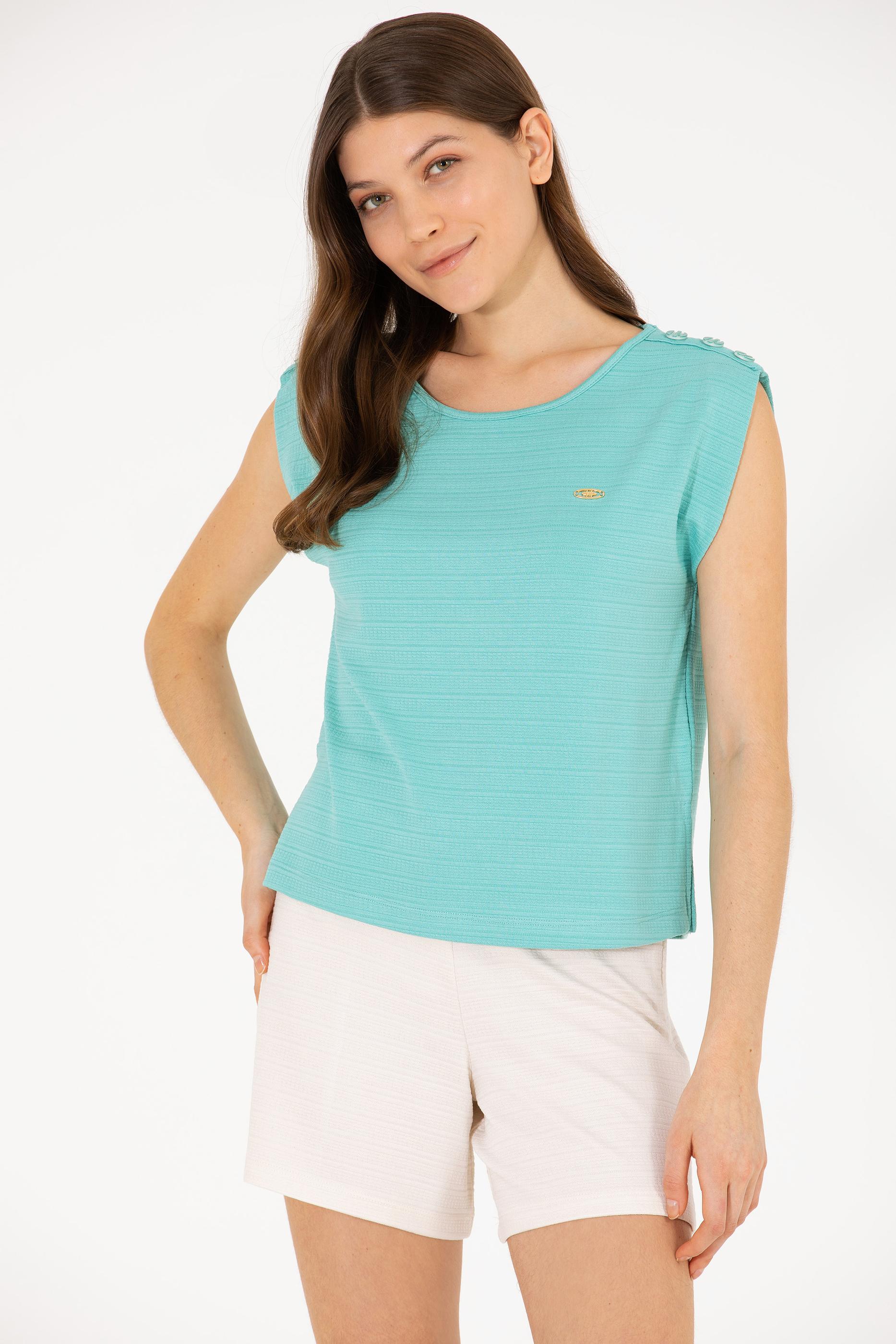 Kadın Mint Bisiklet Yaka Kolsuz Tişört