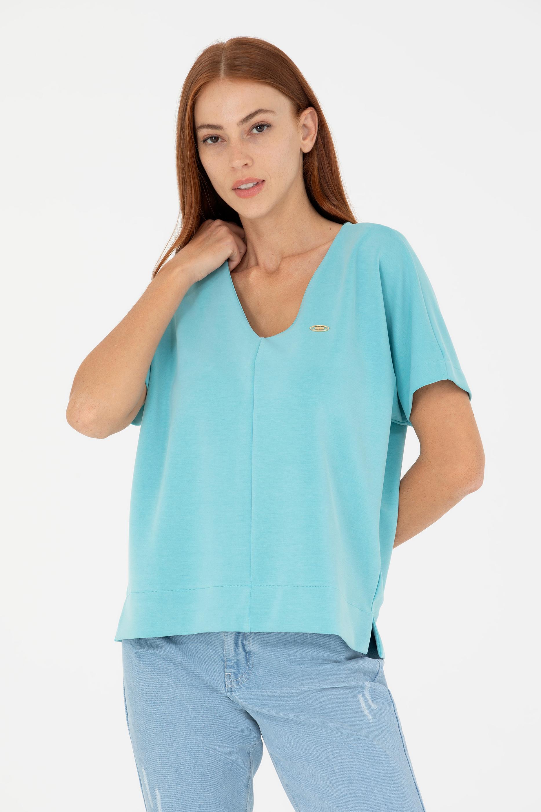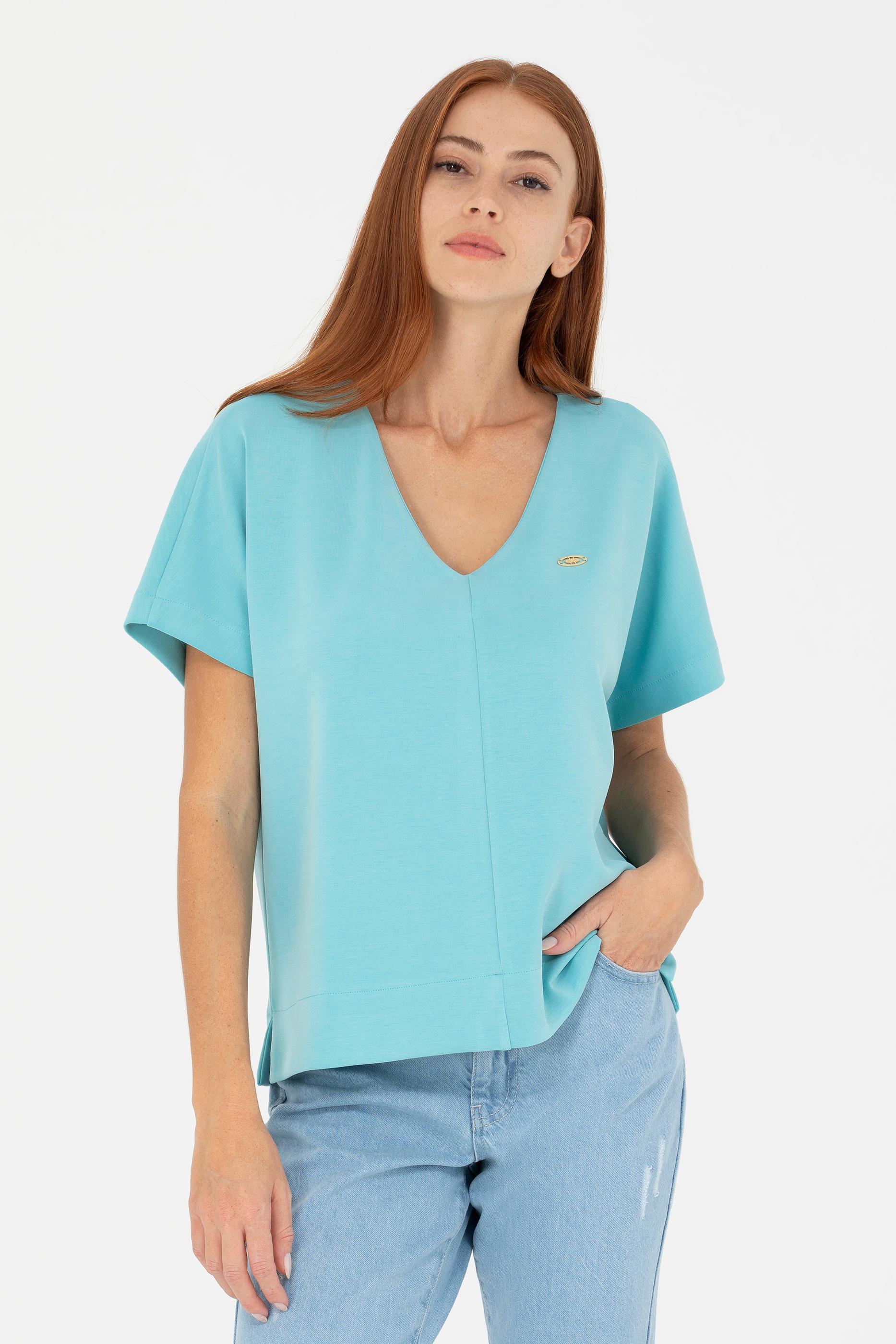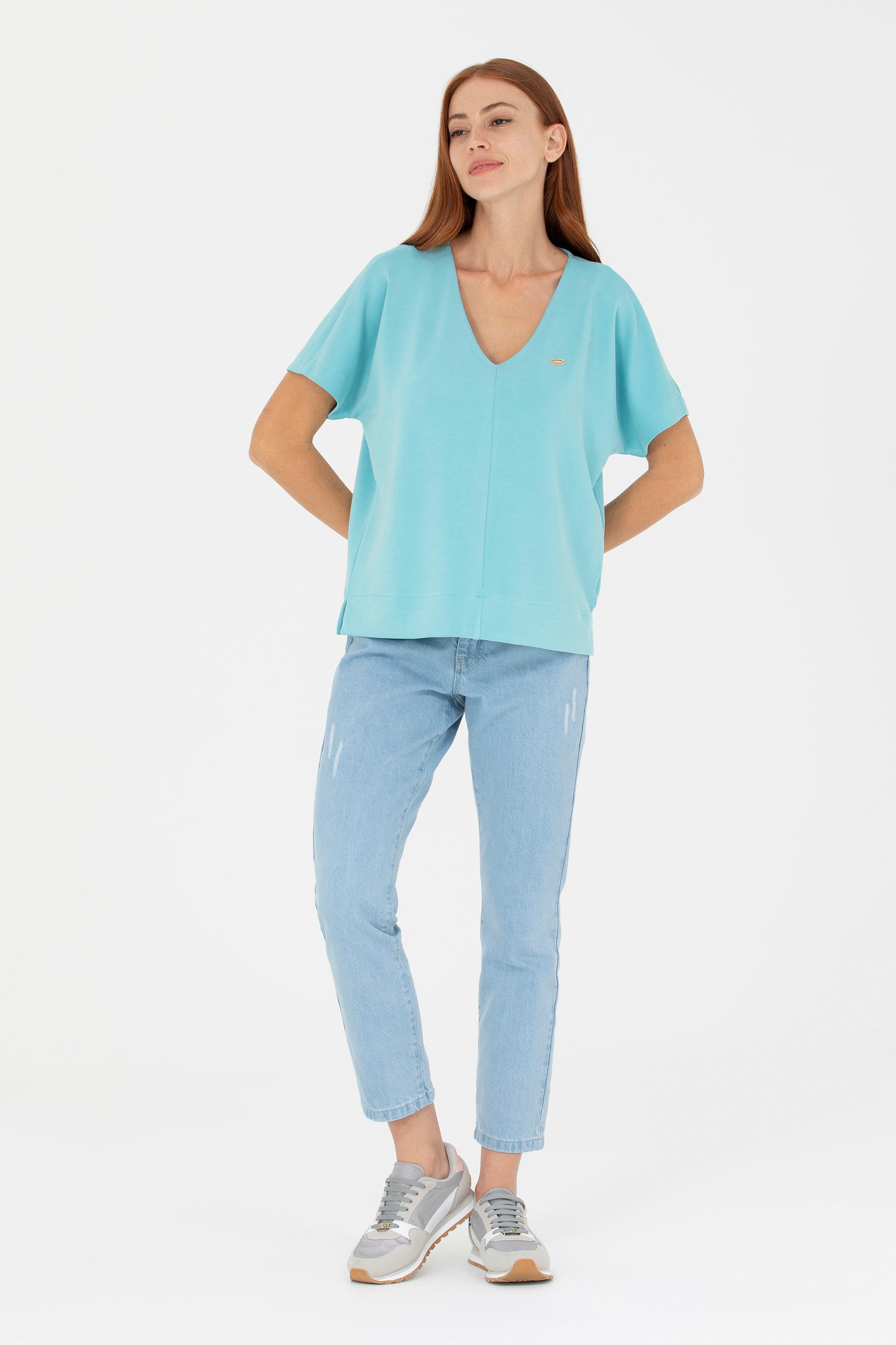 Kadın Mint V Yaka Tişört - 50267523012