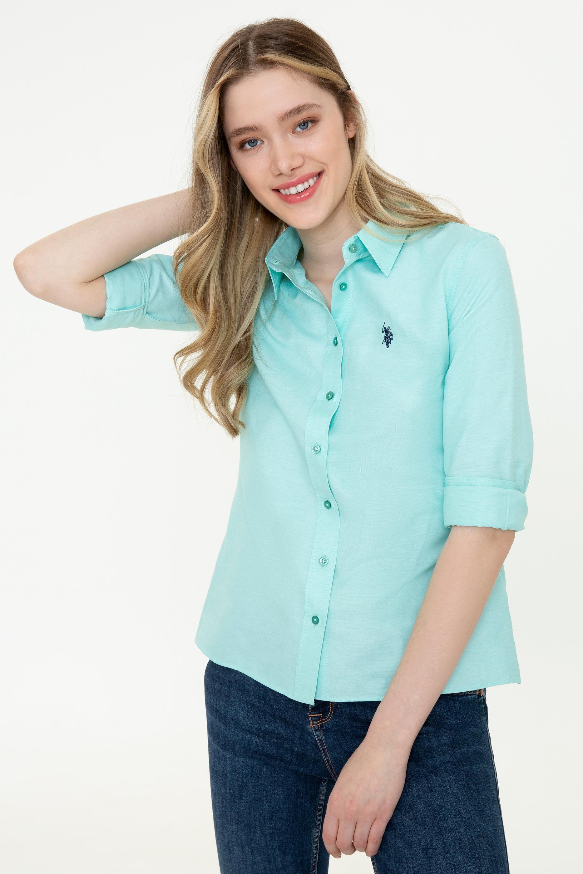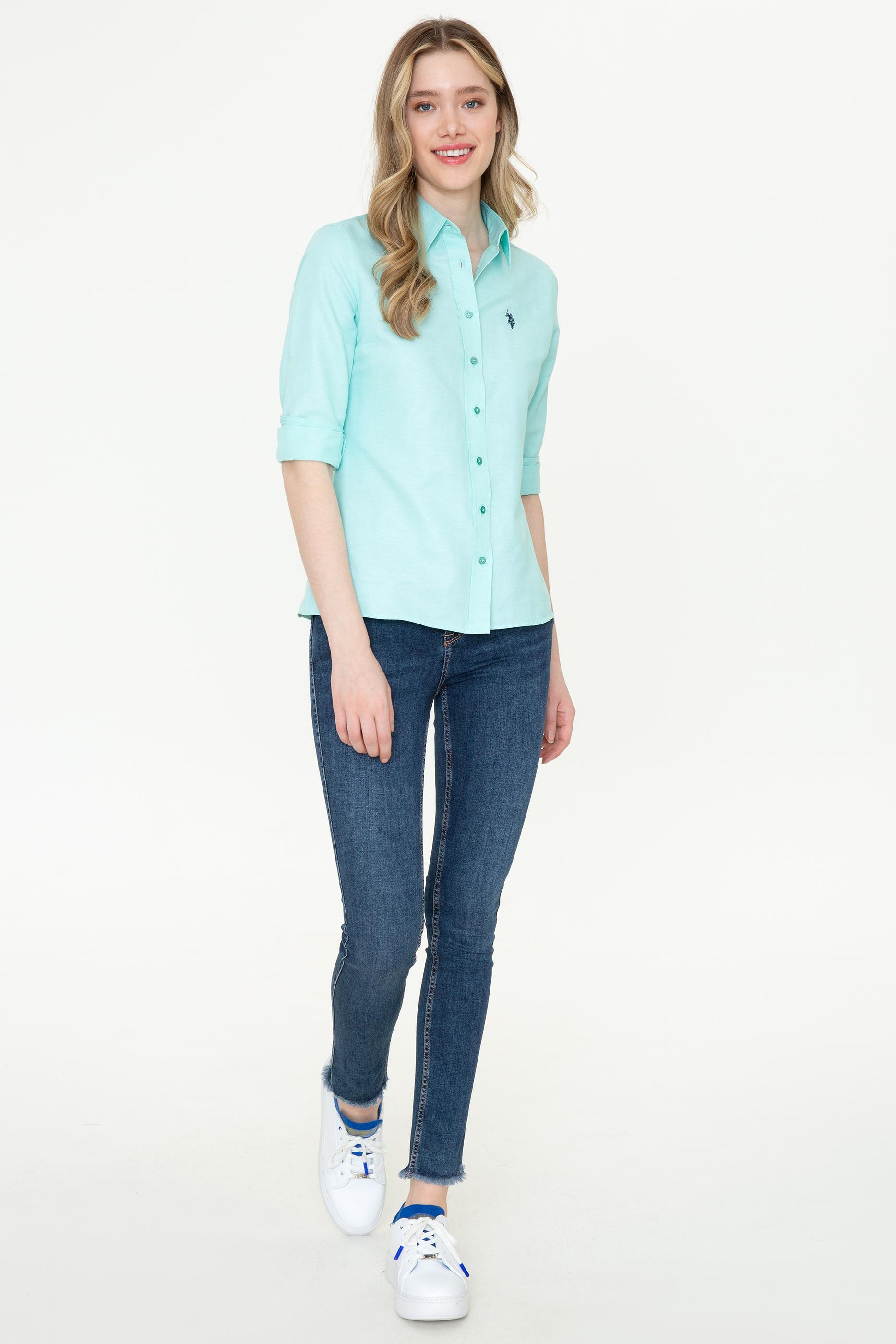 - Kadın Mint Uzun Kollu Basic Gömlek