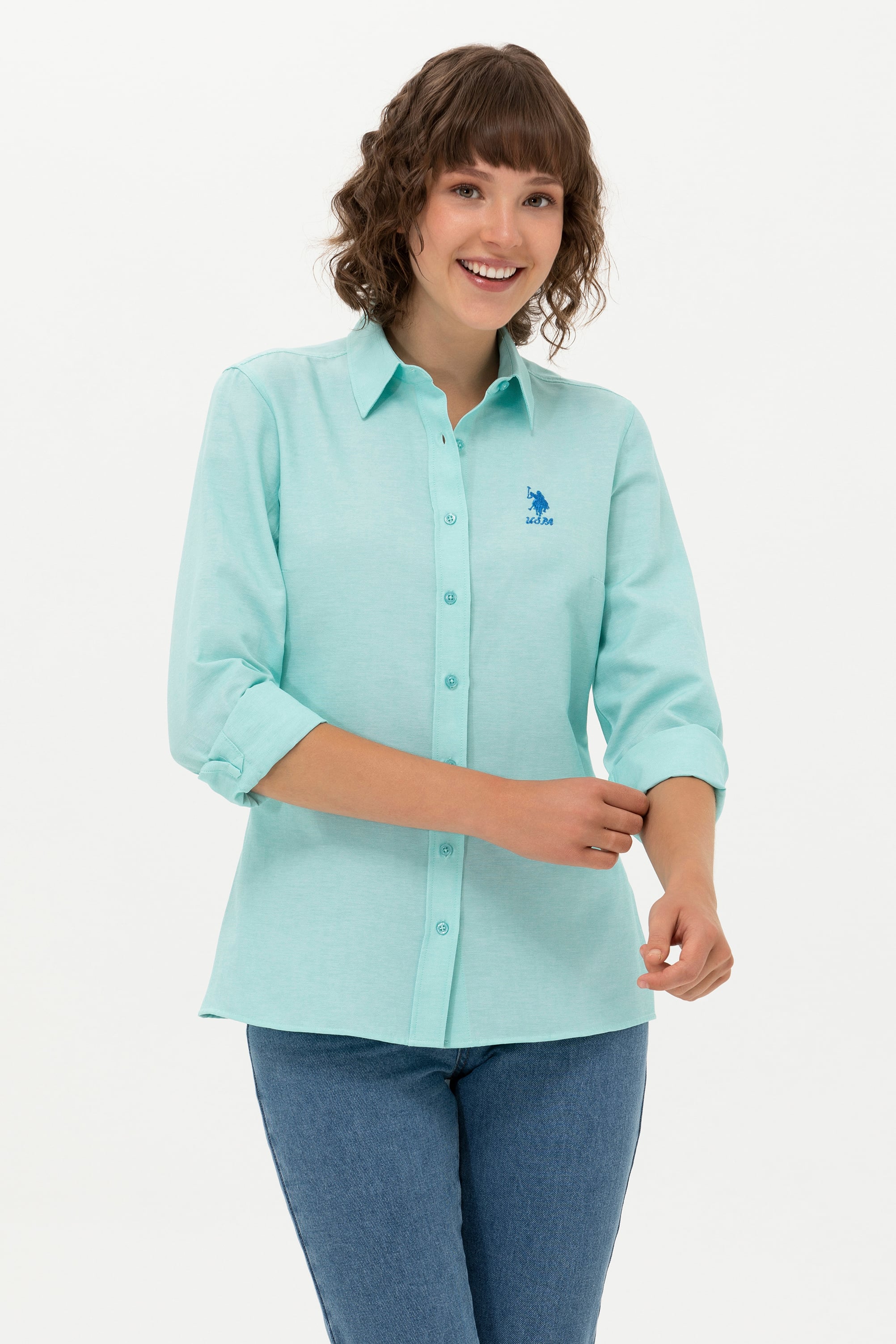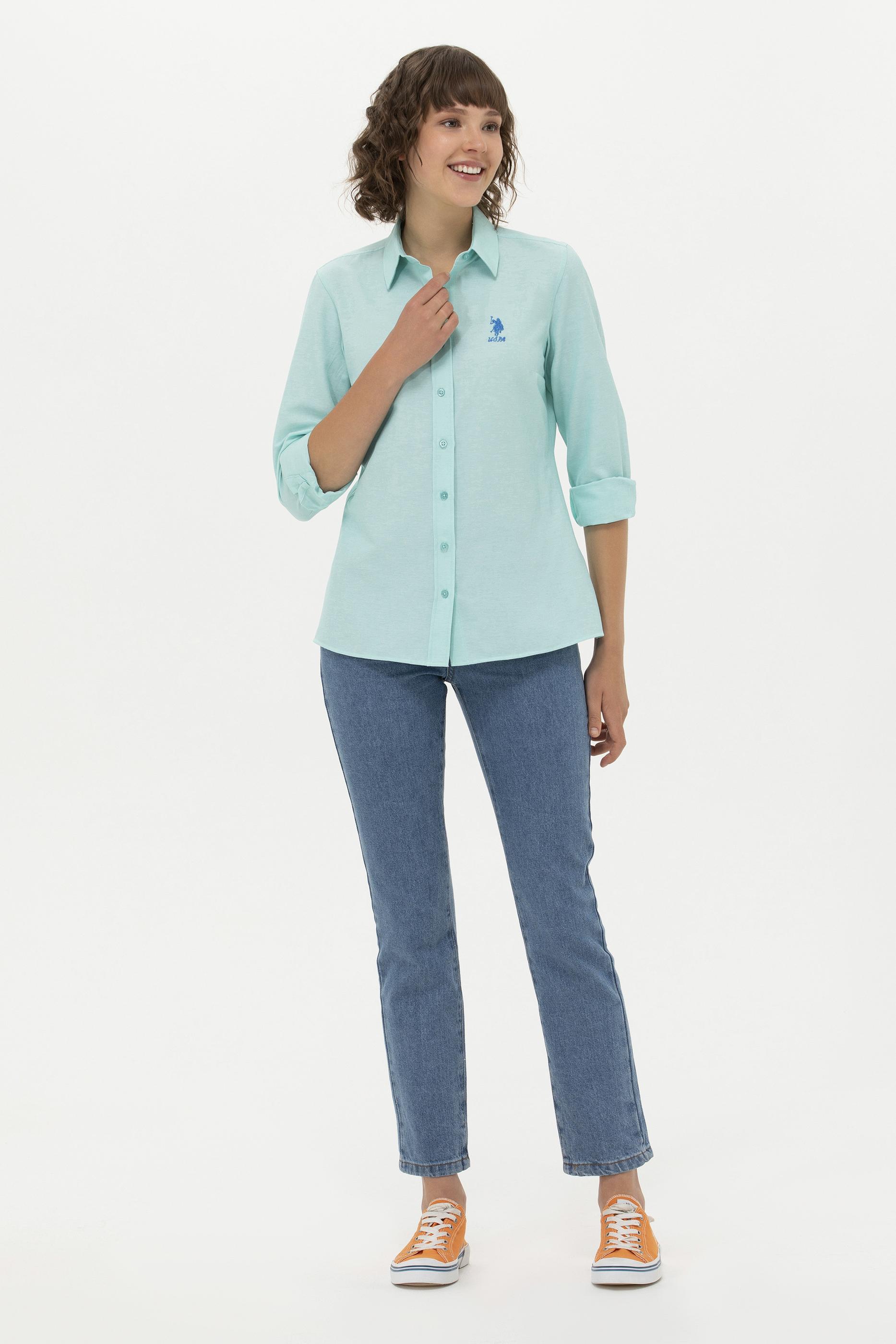 - Kadın Mint Uzun Kollu Basic Gömlek