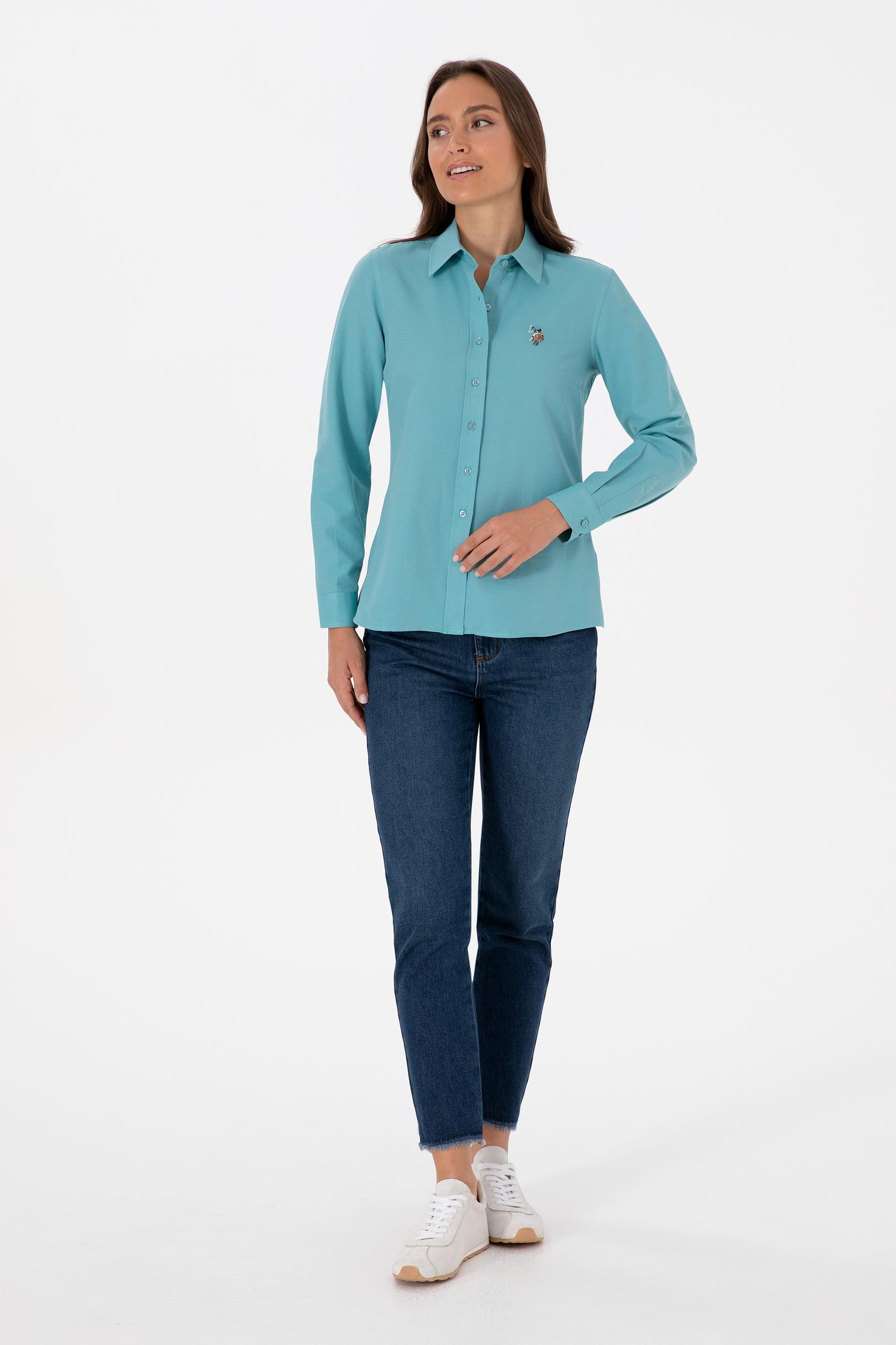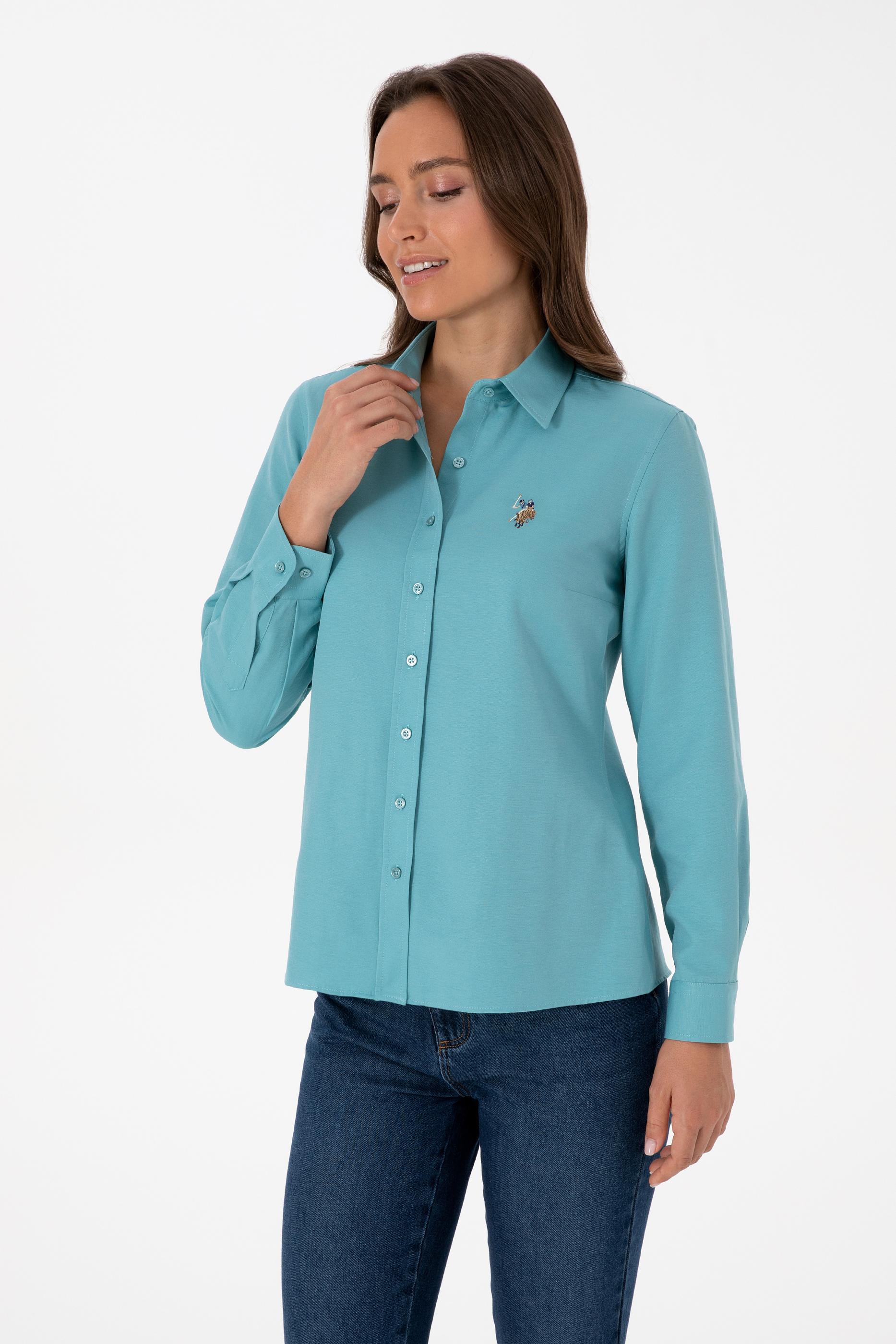 - Kadın Mint Uzun Kollu Basic Gömlek