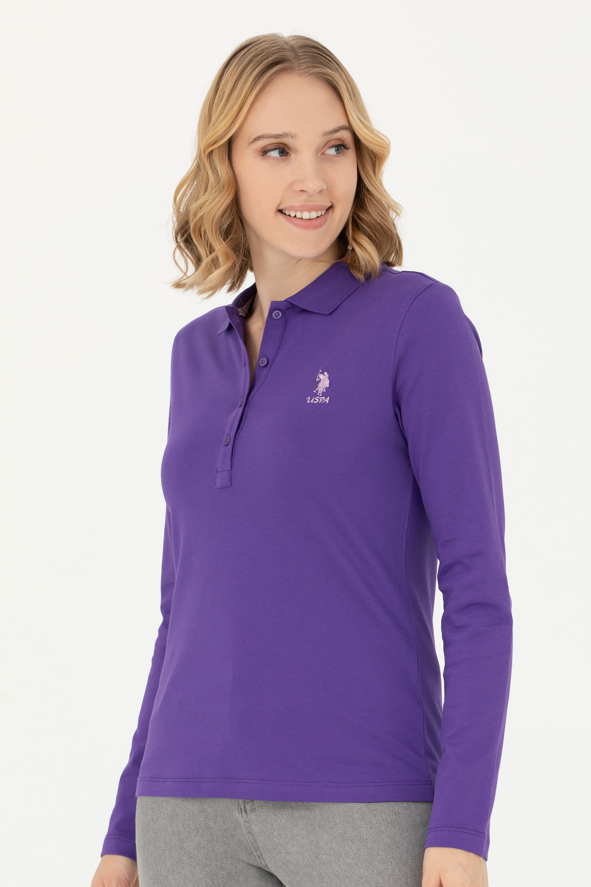 Kadın Mor Basic Polo Yaka Sweatshirt