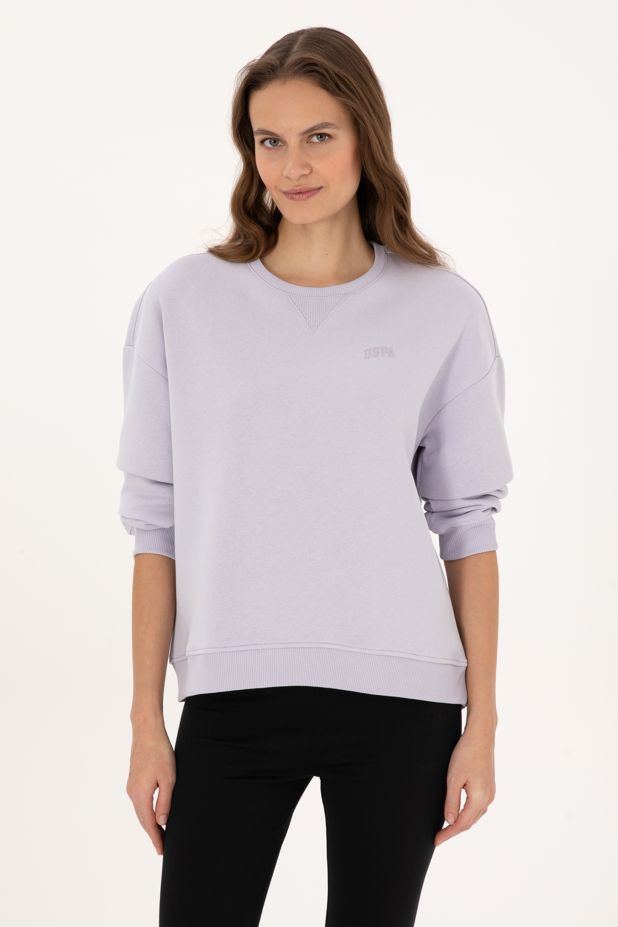Kadın Lavanta Şardonlu Bisiklet Yaka Basic Sweatshırt