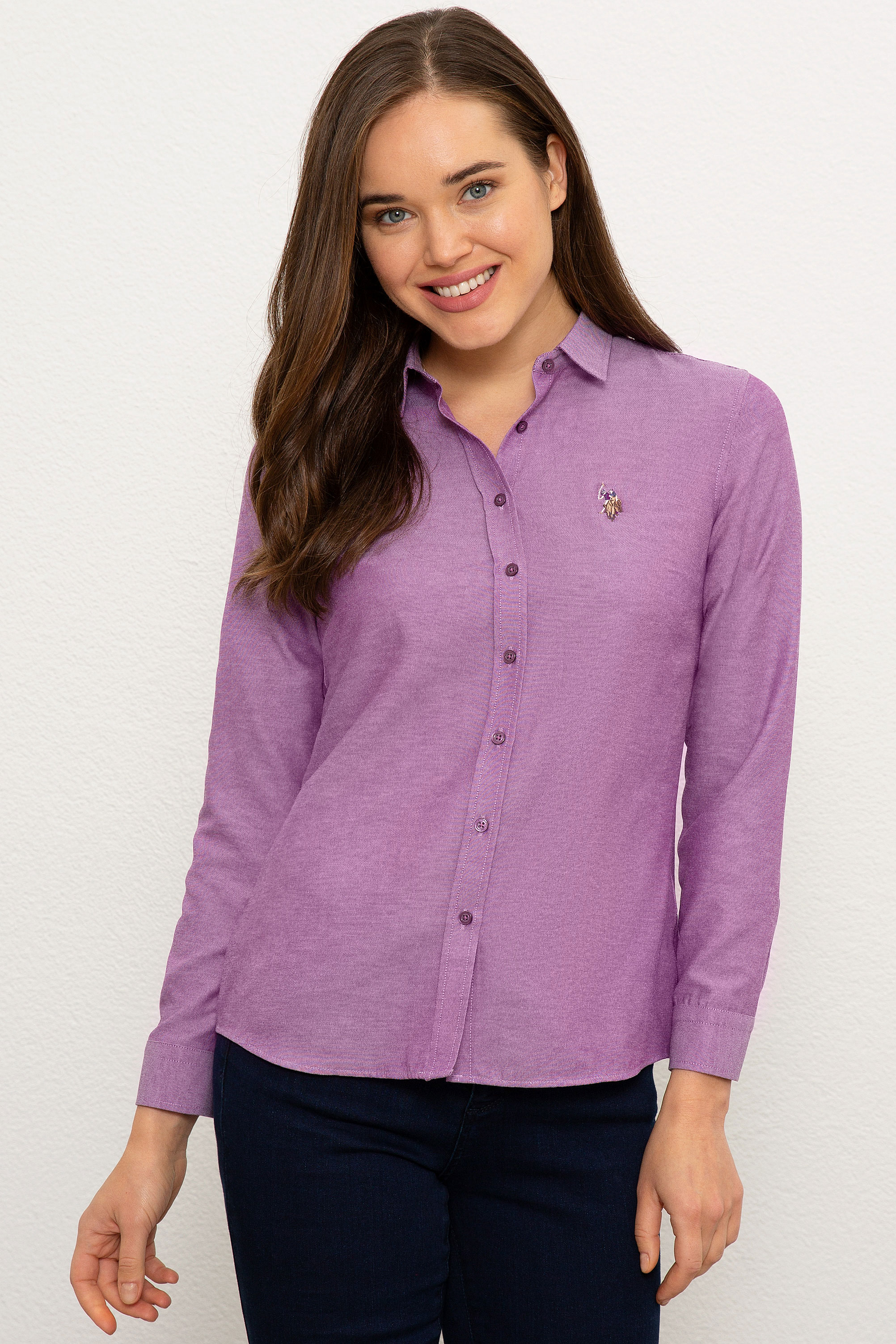 Kadın Mor Gömlek Uzunkol Basic