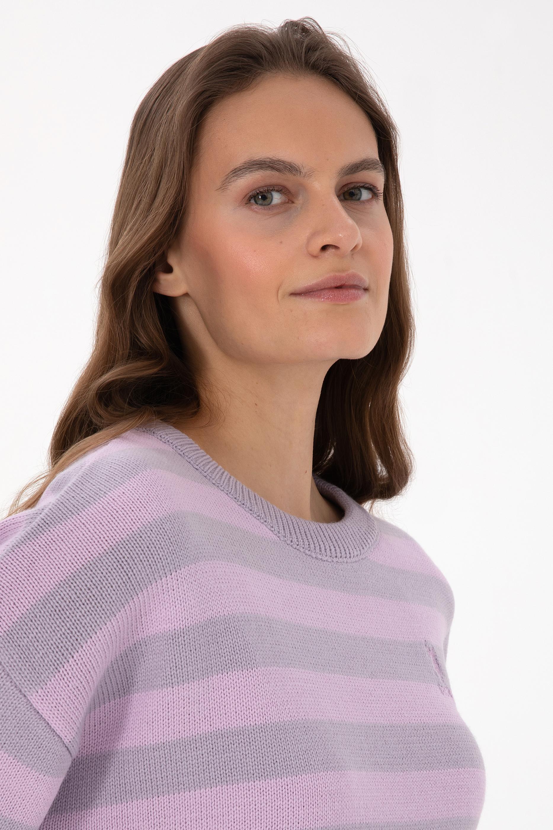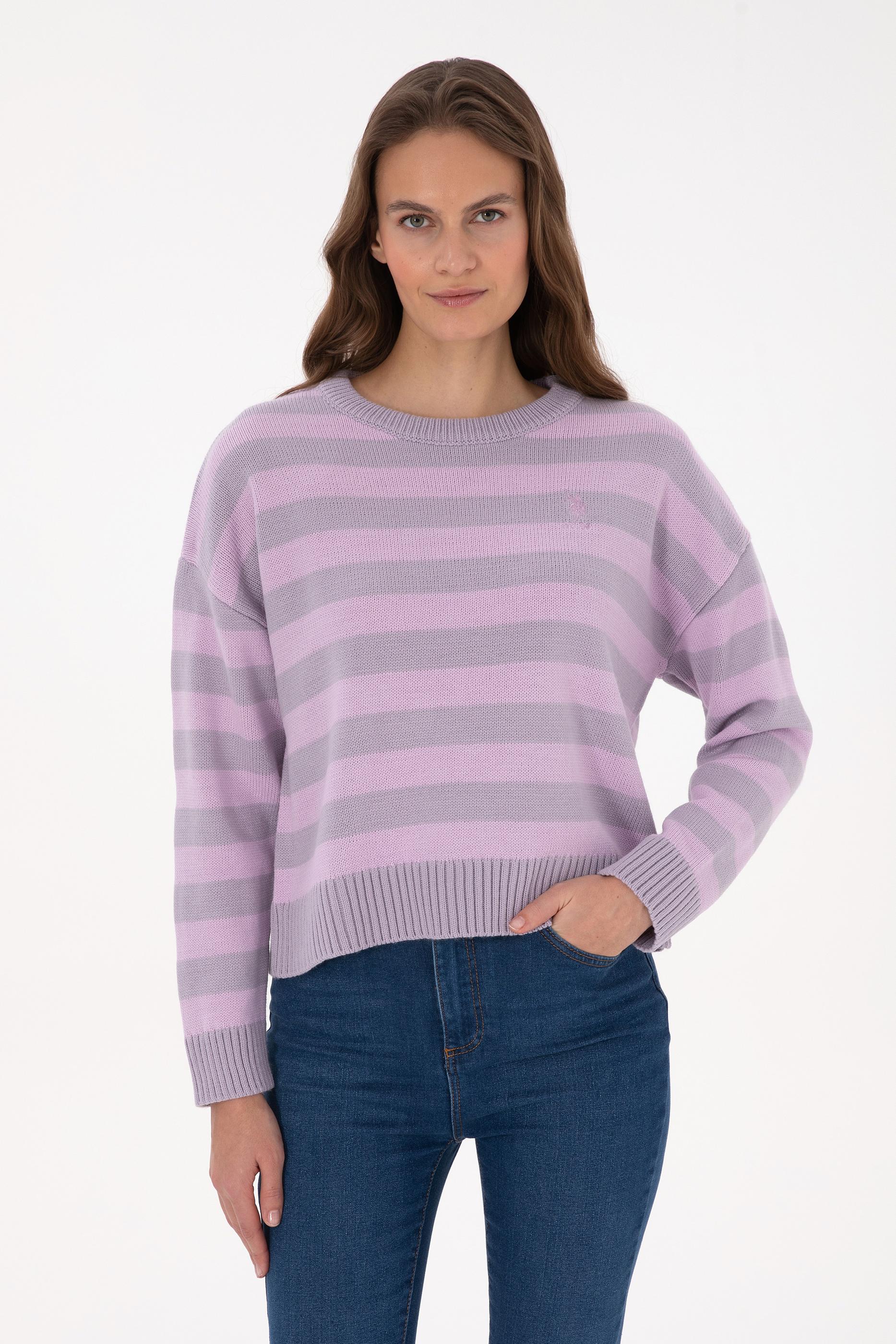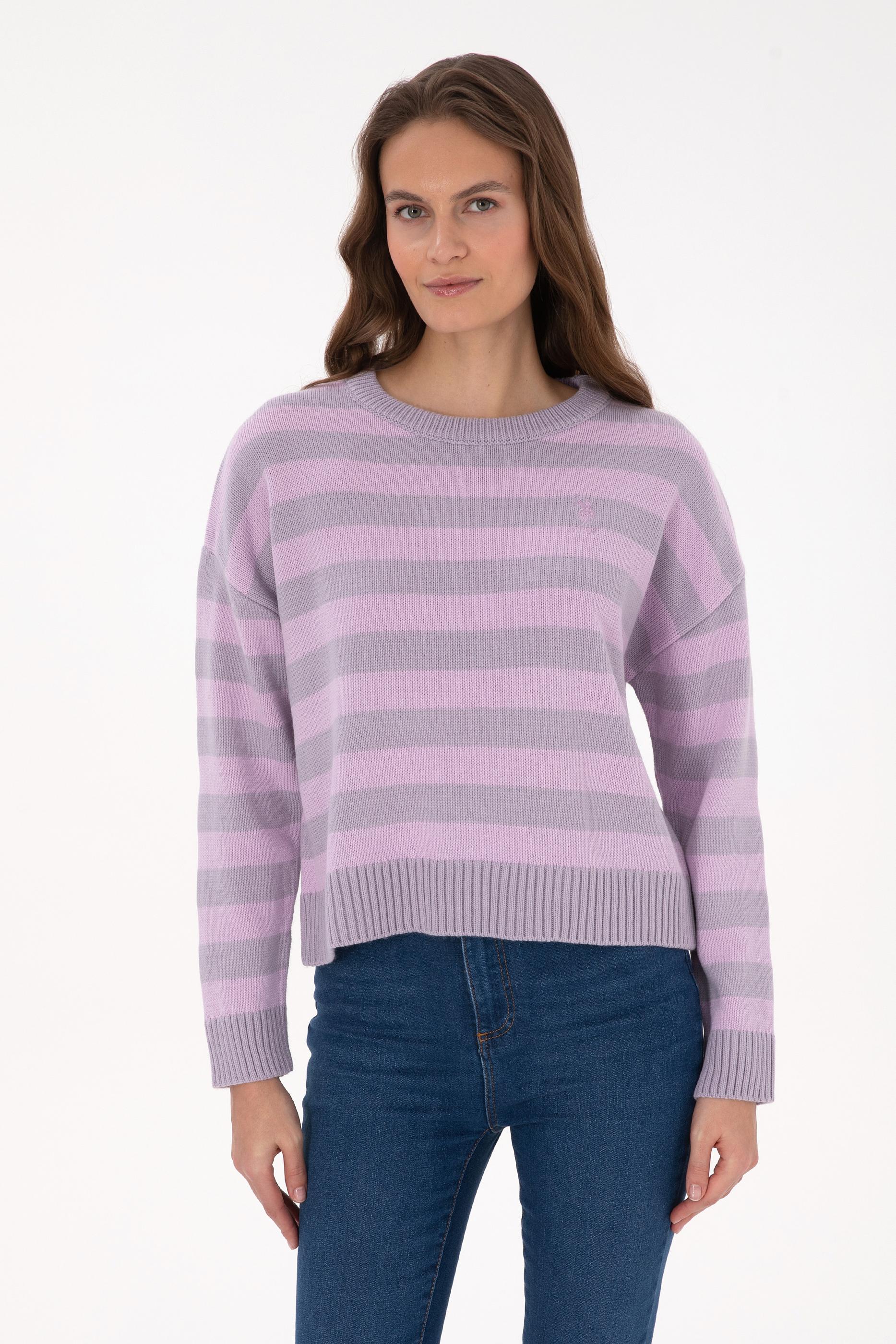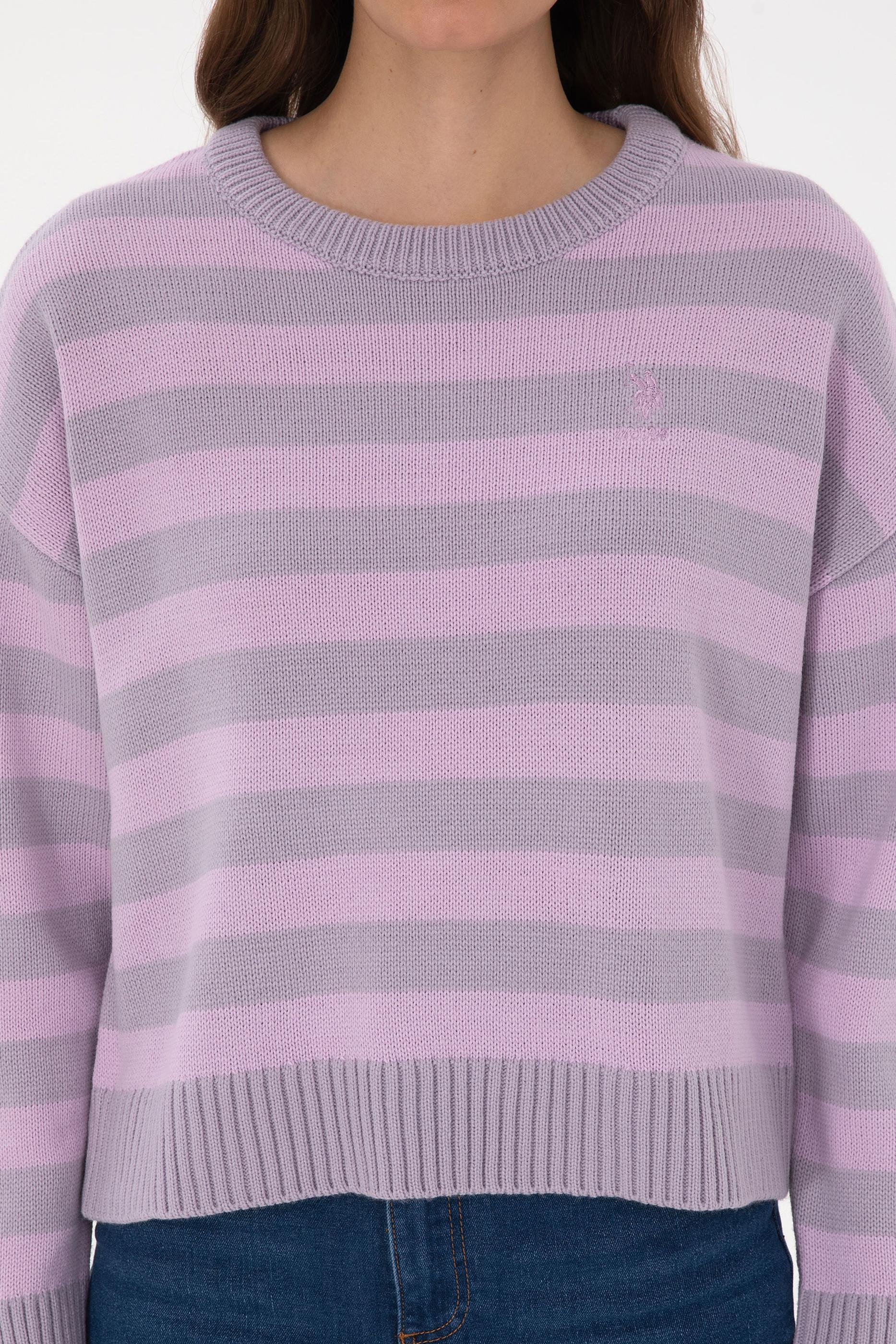 Kadın Mor Çizgili Bisiklet Yaka Kazak